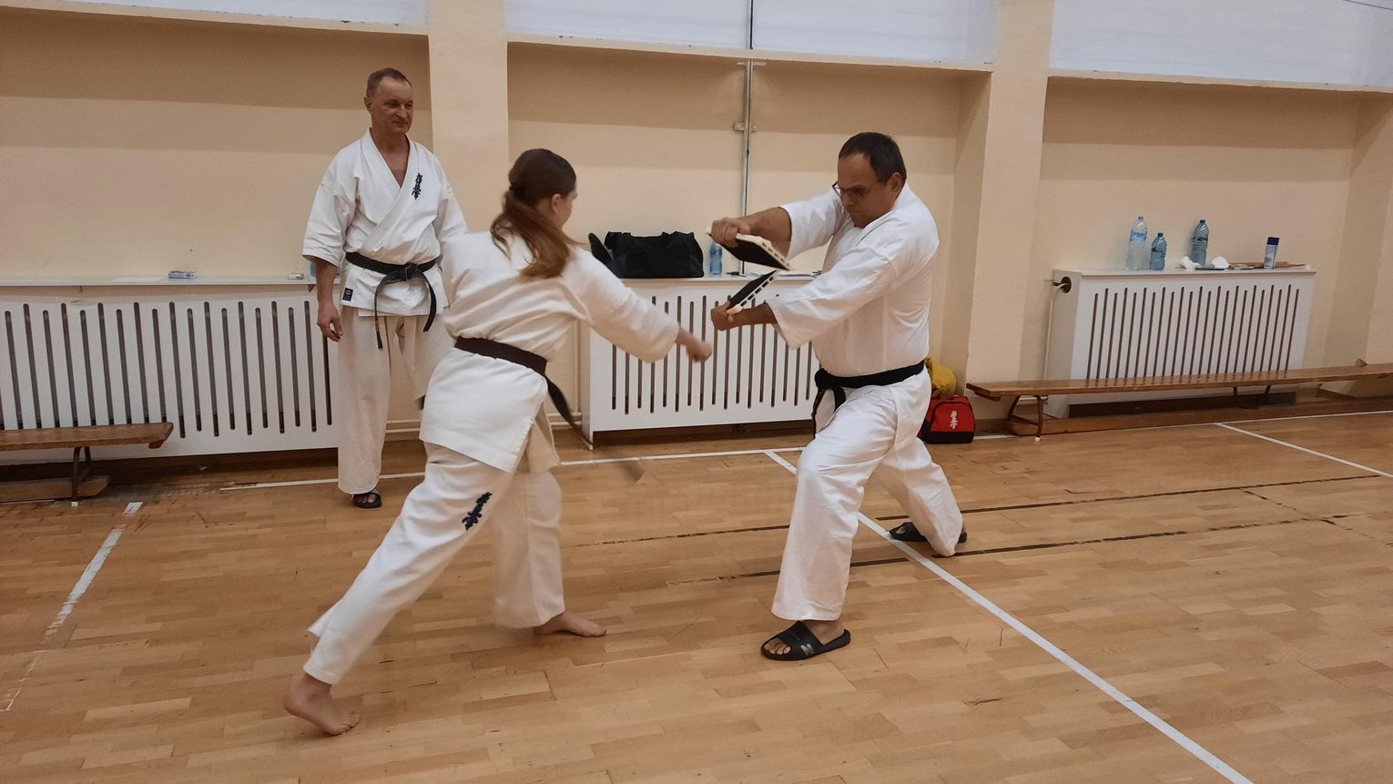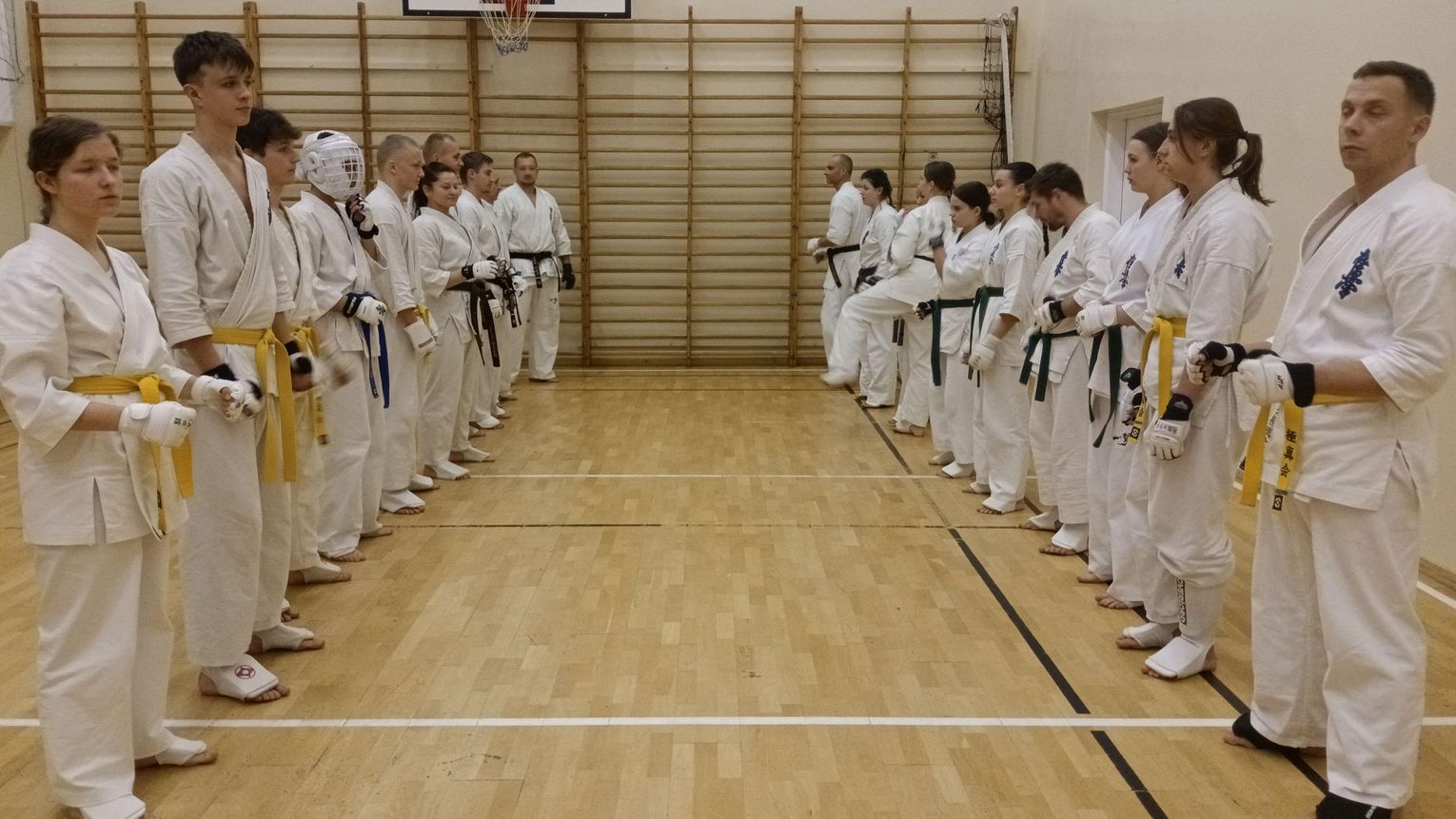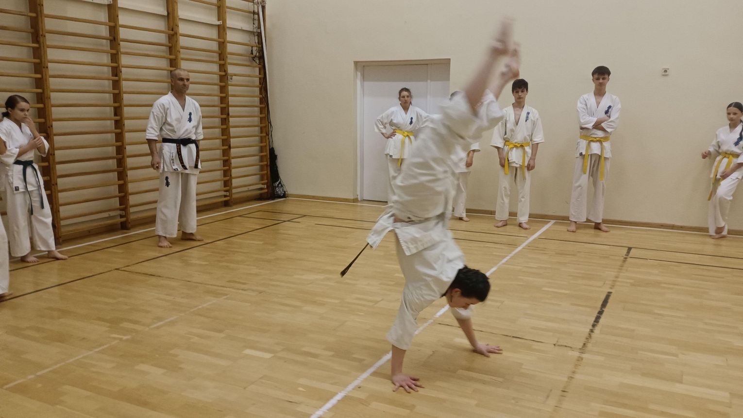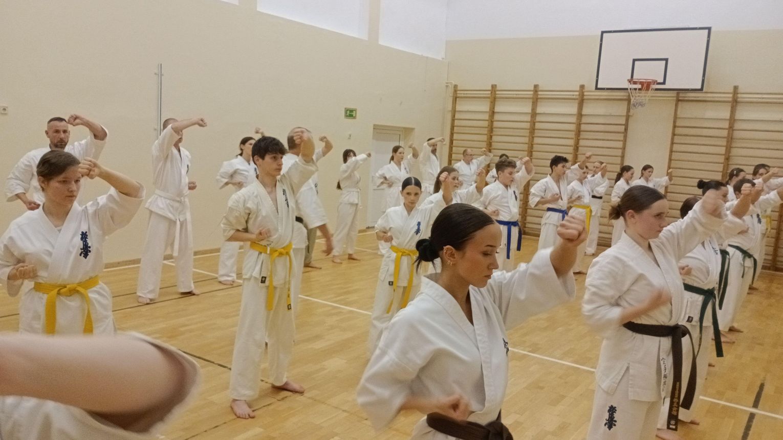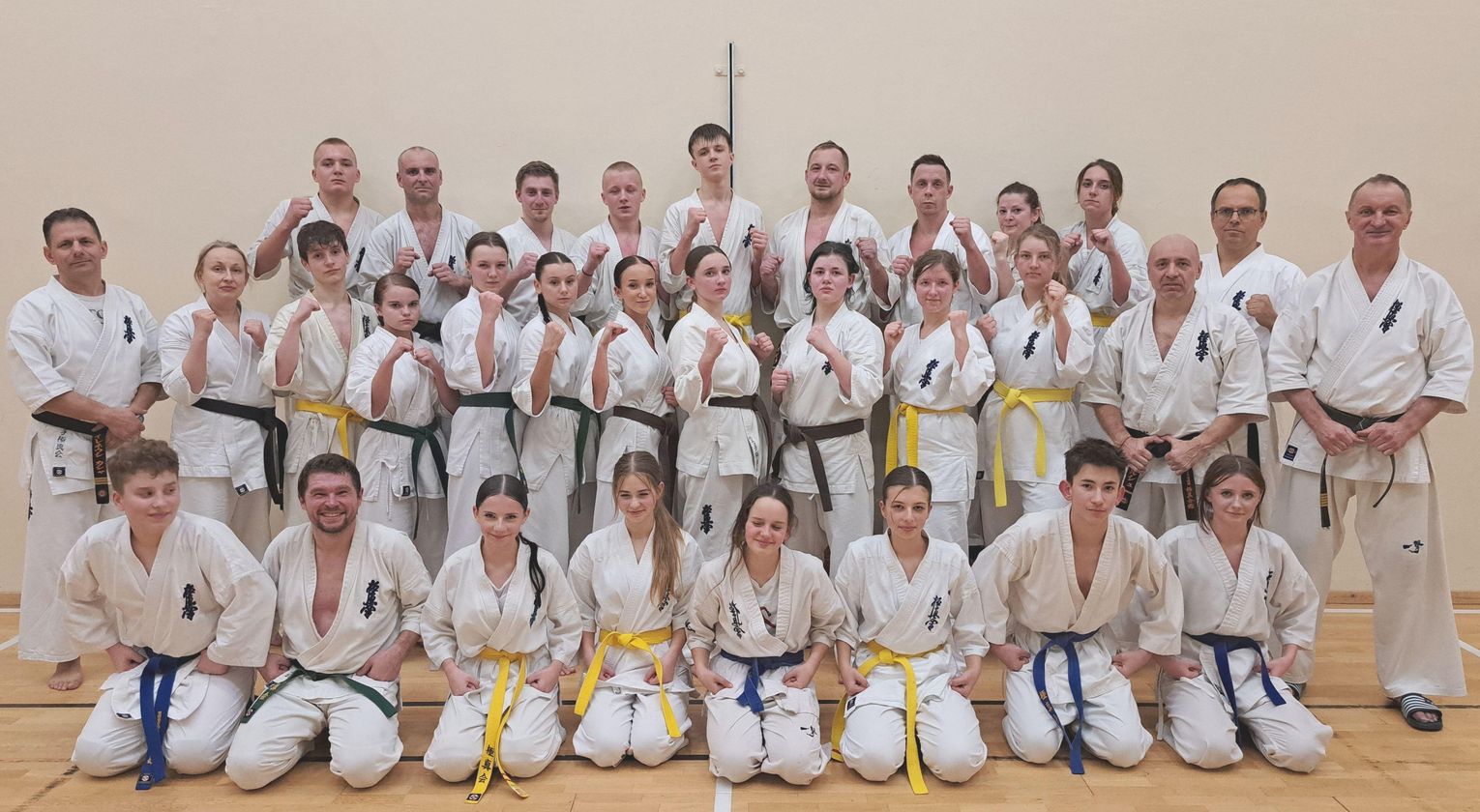 Egzamin trwał blisko 4,5 godziny i obejmował niezwykle intensywny program. Kandydaci musieli wykazać się nie tylko doskonałym przygotowaniem technicznym, ale również wytrzymałością i hartem ducha. Wśród zadań znalazły się m.in. pompki, brzuszki, „krokodylki”, chodzenie na rękach, ćwiczenia na drabinkach oraz skoki przez pas lub kij. Następnie zdający prezentowali kihon, ido geiko i kata, a także podejmowali udane próby tamashiwari różnymi technikami. Zwieńczeniem egzaminu były bardzo wymagające walki, do których – z ogromnym zaangażowaniem i pasją – stanęli zarówno zdający, jak i ich klubowi koledzy.