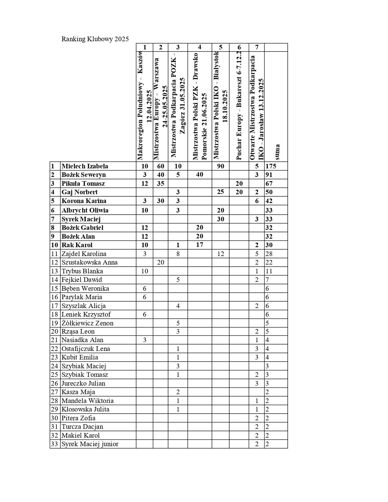Podczas uroczystego podsumowania egzaminu shihan Roman Woźniak pogratulował wszystkim zdającym oraz przedstawił najlepszą dziesiątkę zawodników Klubowego Rankingu 2025, obejmującego siedem najważniejszych zawodów sezonu. Pierwszą trójkę wyróżniono kartami podarunkowymi Vivo. Zwyciężczynią rankingu została Izabela Mielech, przed Sewerynem Bożkiem i Tomaszem Pikułą. Dodatkowo Izabela Mielech otrzymała roczne stypendium z Urzędu Miasta Krosna.