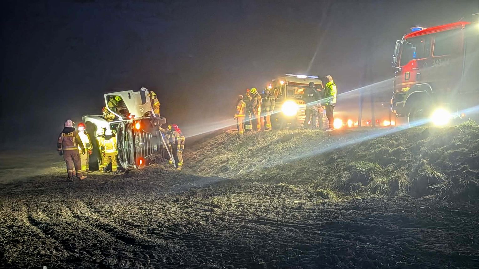 Kierujący pojazdem sam go opuścił - potrzebował pomocy medyków, ale na szczęście obrażenia, których doznał, nie zagrażają jego życiu.