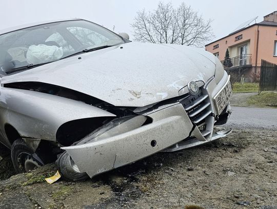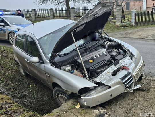 Kierujący samochodem Alfa Romeo stracił panowanie nad nim, zjechał z jezdni i wjechał w przydrożny przepust. Pojazdem podróżowało w sumie trzy osoby. Na szczęście nikt nie doznał poważniejszych obrażeń.