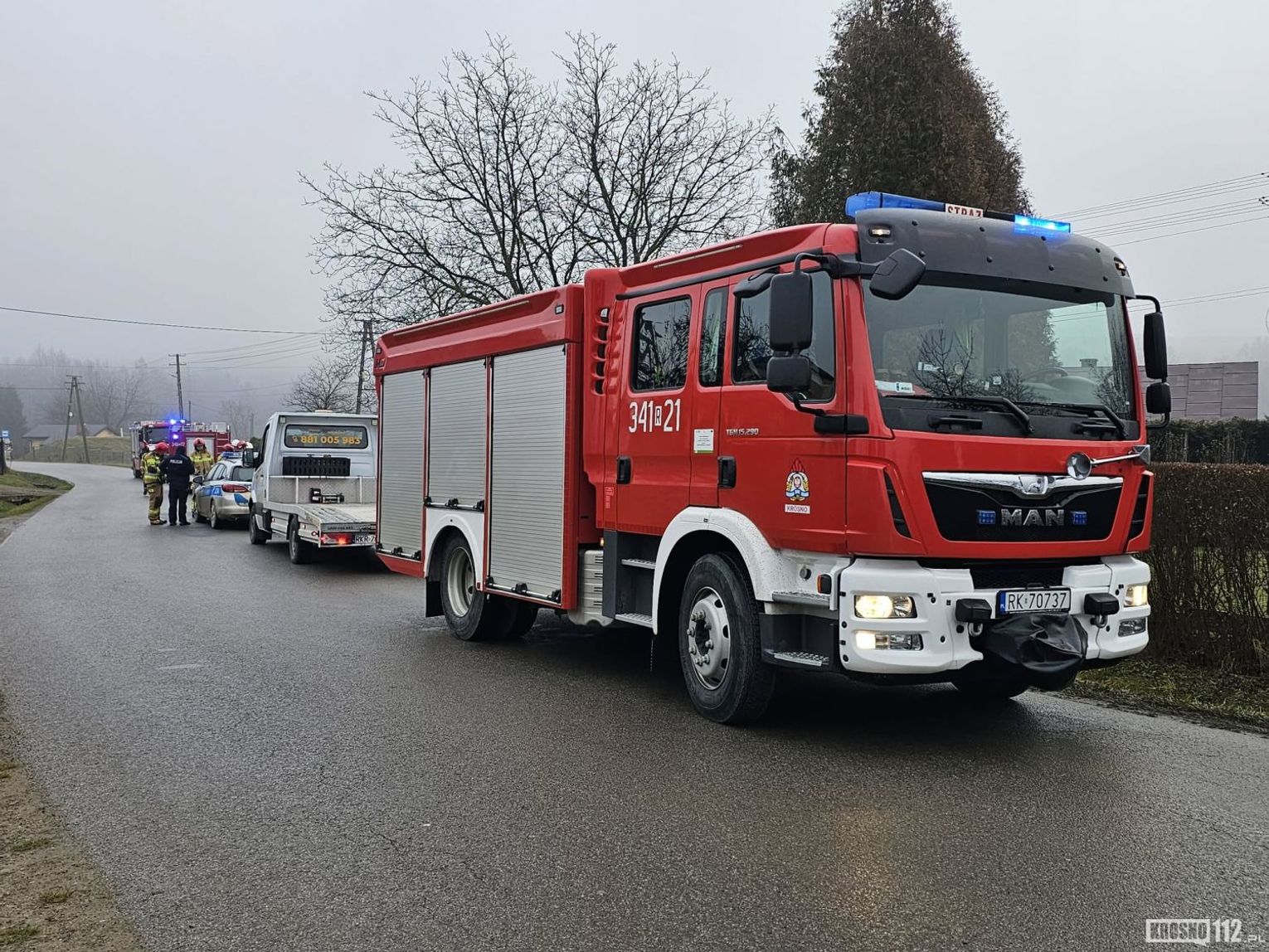 Na miejscu interweniuje policja oraz strażacy z OSP KSRG Kobylany i JRG Krosno - z pojazdu wydobywa się paliwo. Na trasie Kobylany - Chorkówka nie ma większych utrudnień.