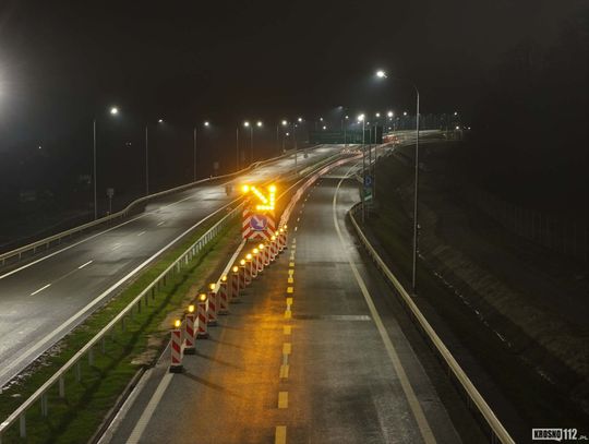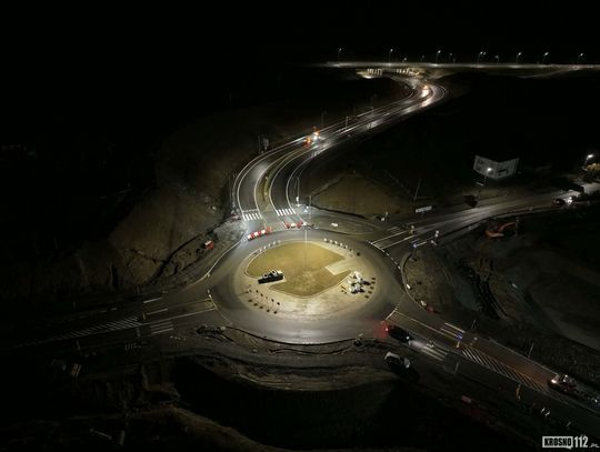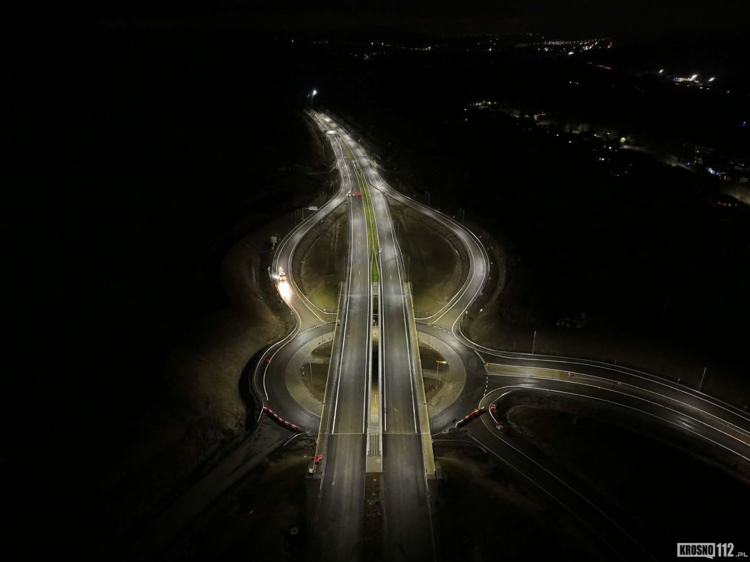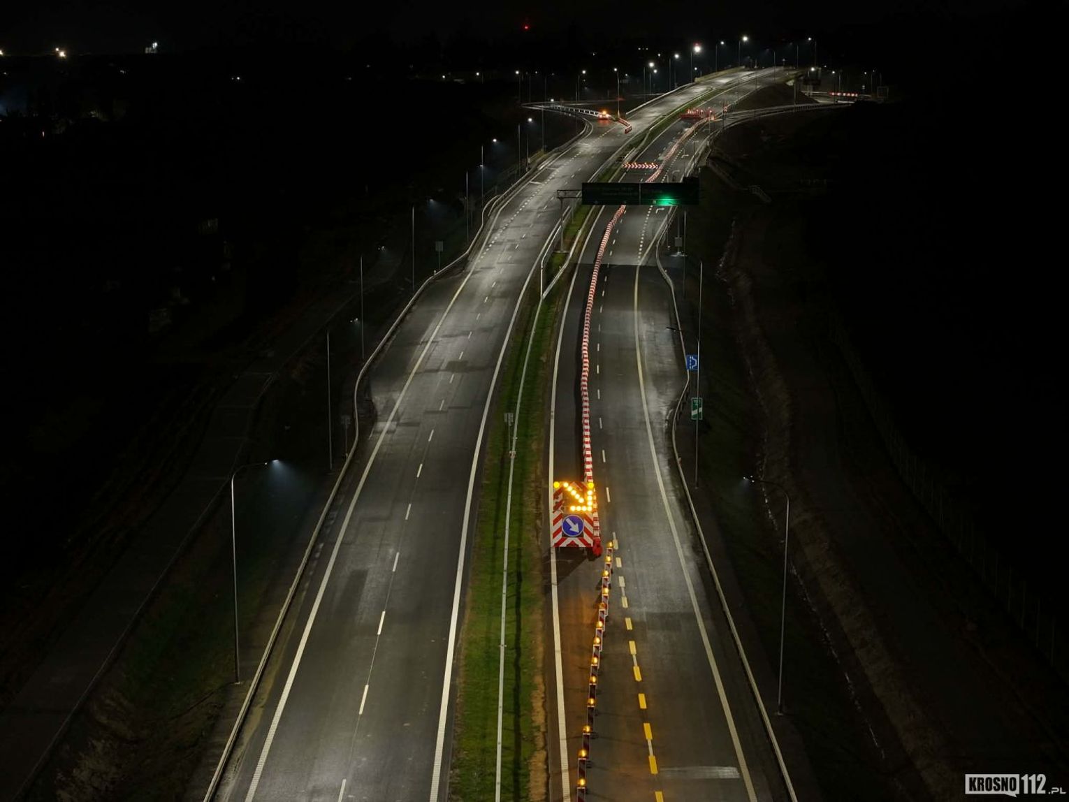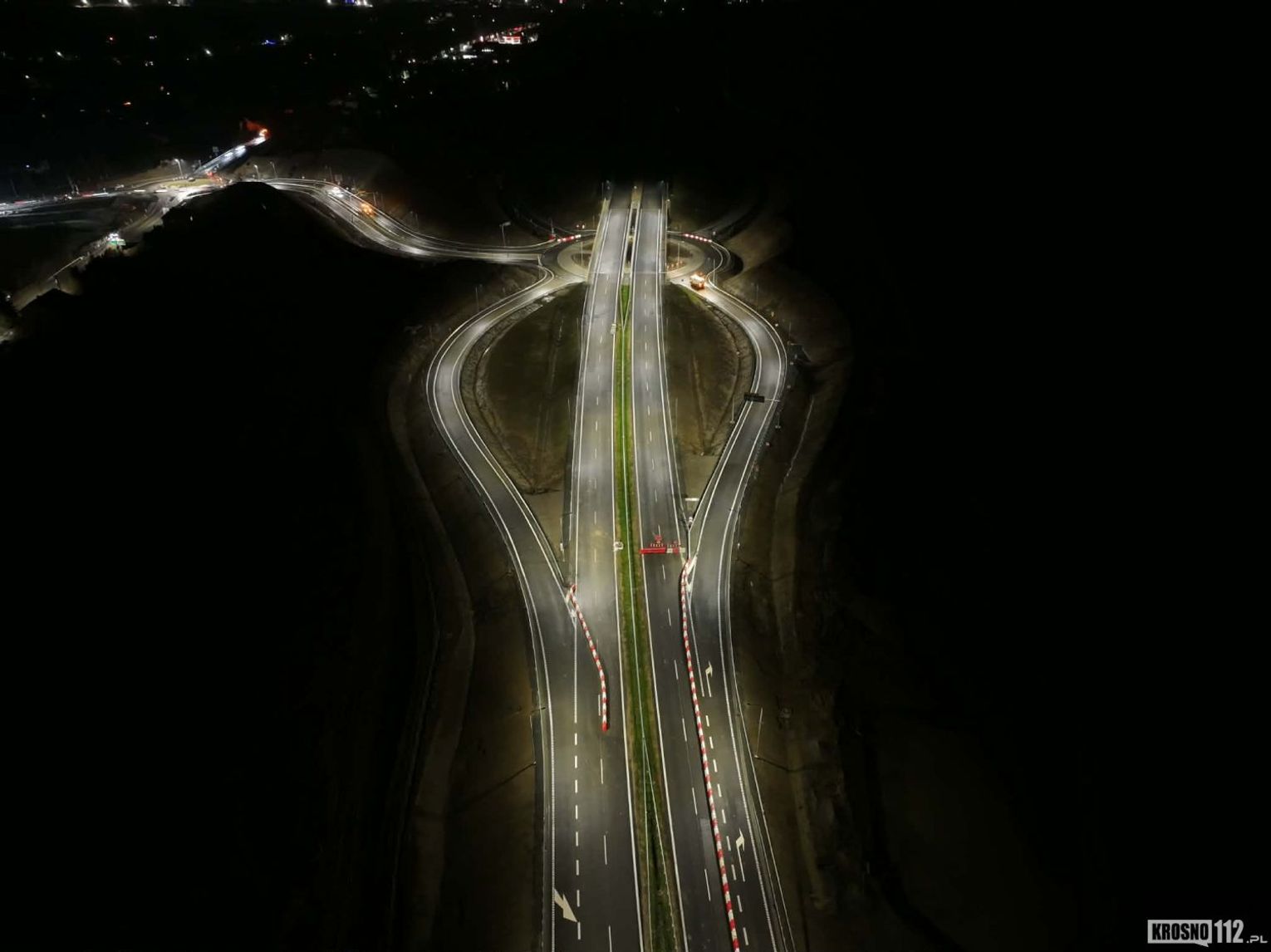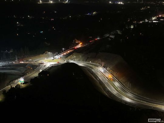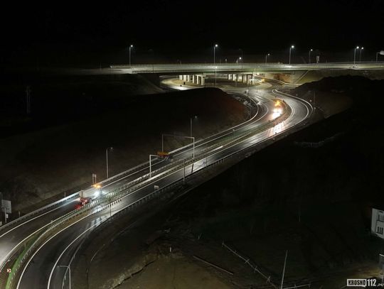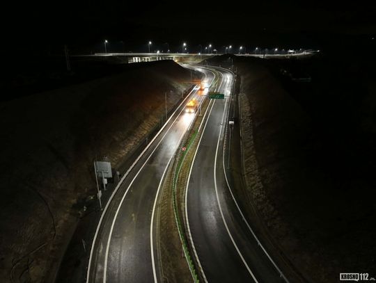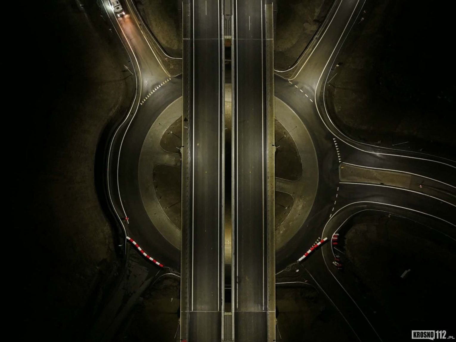 Dzisiaj prezentujemy węzeł "Dukla" nocą. Jak widać, oznakowanie pionowe i poziome jest już gotowe na przyjęcie ruchu pojazdów. Trwa czyszczenie nawierzchni.