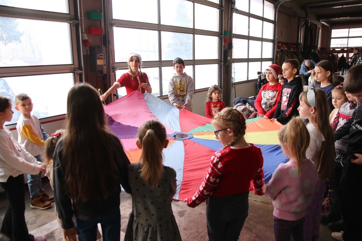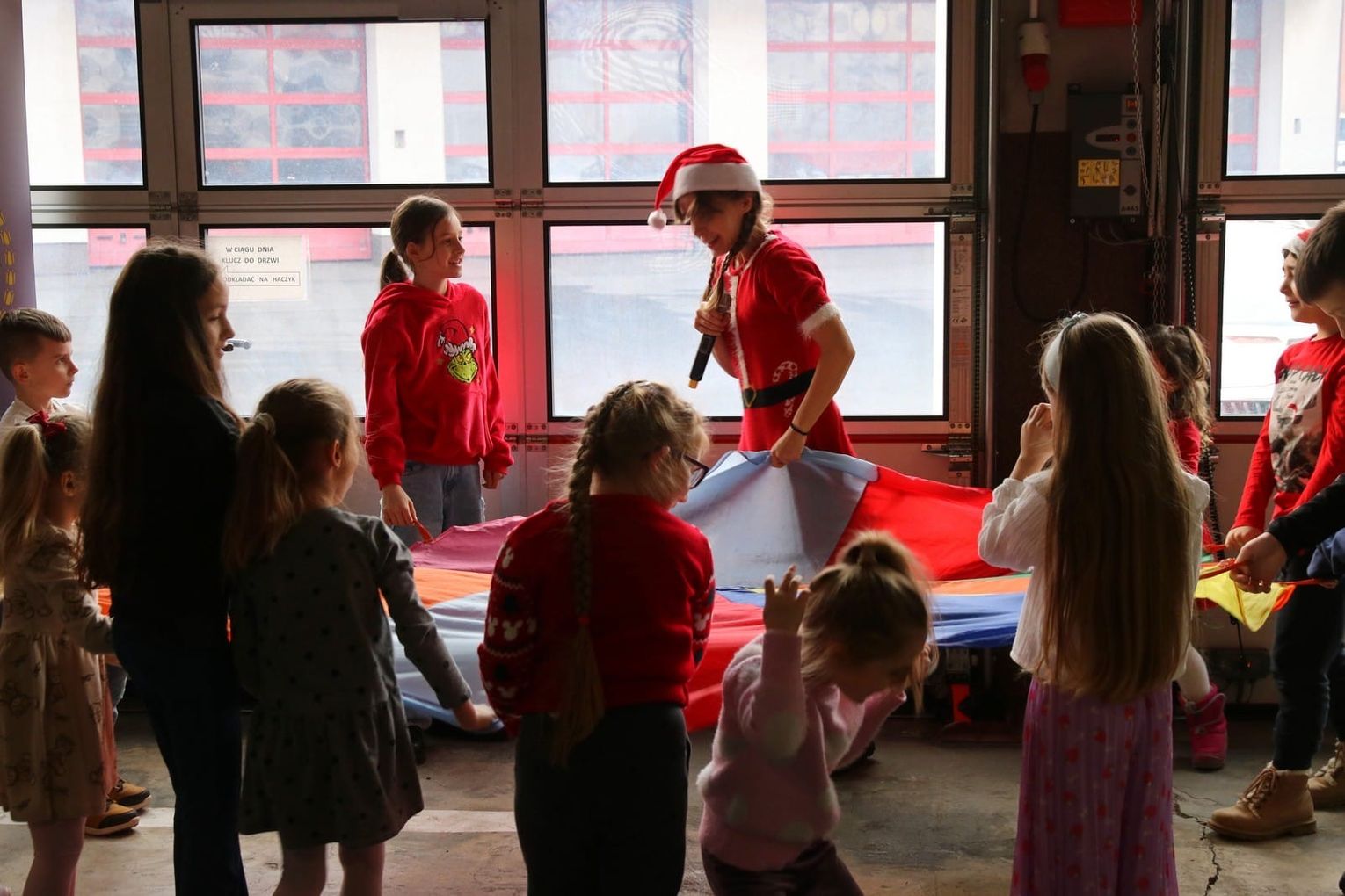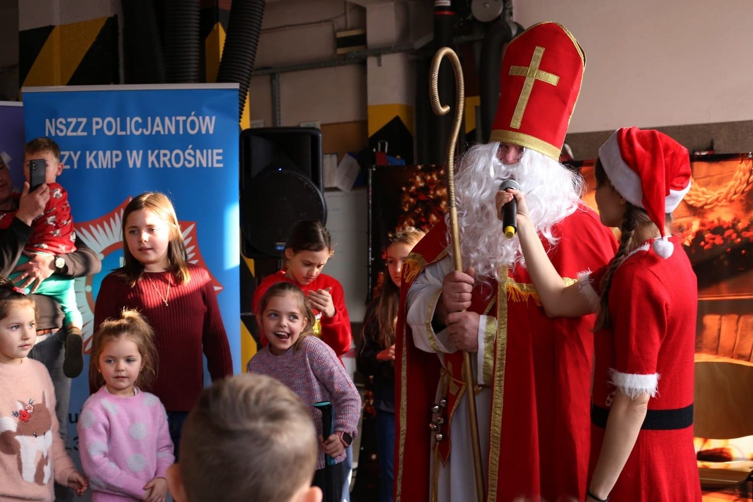 Na dzieci czekało wiele atrakcji – pokazy służb, możliwość obejrzenia z bliska sprzętu strażackiego i policyjnego, animacje, zabawy oraz słodki poczęstunek. Kulminacyjnym momentem wydarzenia była wizyta św. Mikołaja, który obdarował wszystkie dzieci prezentami, wywołując ogromną radość i entuzjazm.