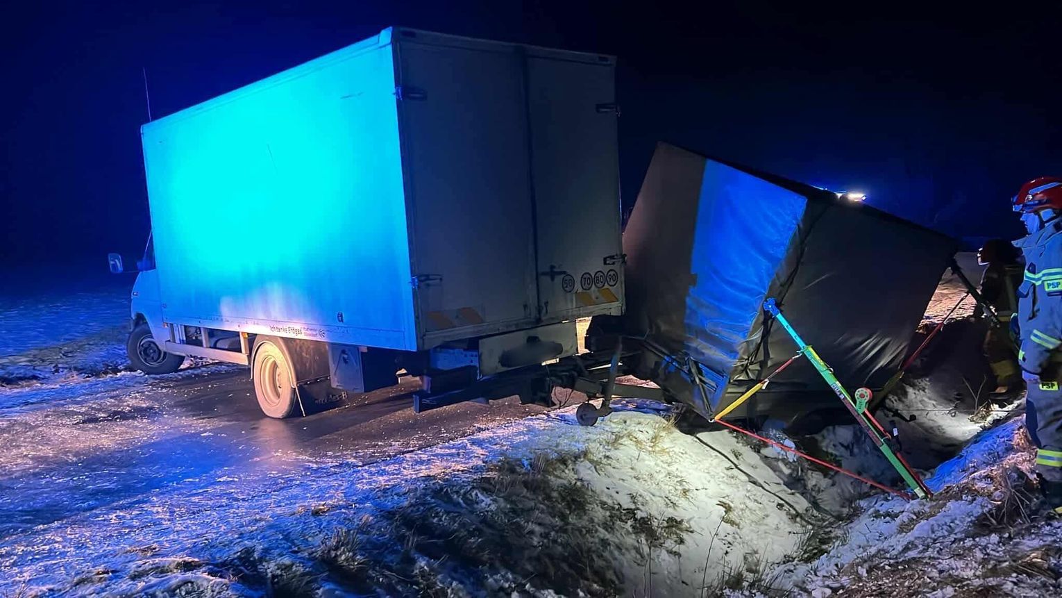 Wstępnie ustalono, że kierujący samochodem dostawczym z przyczepą stracił panowanie nad pojazdem i zablokował drogę, przy czym przyczepa zawisła nad rowem. Na skutek zdarzenia nikt nie odniósł obrażeń. Na drodze pomiędzy Chyrową, a Mszaną występują utrudnienia w ruchu.