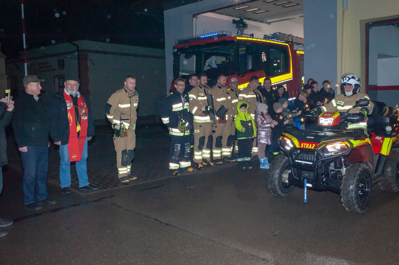 Poświęcenia nowego sprzętu dokonał kapelan strażaków z gminy Wojaszówka, ksiądz Janusz Bury. Następnie kluczyki do quada, z rąk Wójta Gminy Wojaszówka Rafała Bobali, odebrał druh Mariusz Nabożny. Zakup pojazdu był możliwy dzięki dofinansowaniu z Fundacji Orlen oraz wsparciu finansowemu Gminy Wojaszówka.