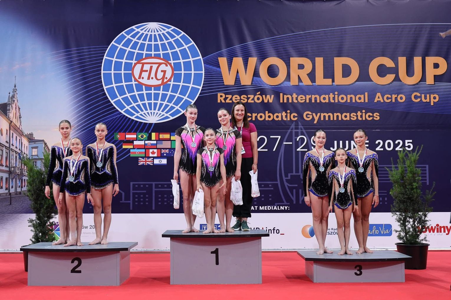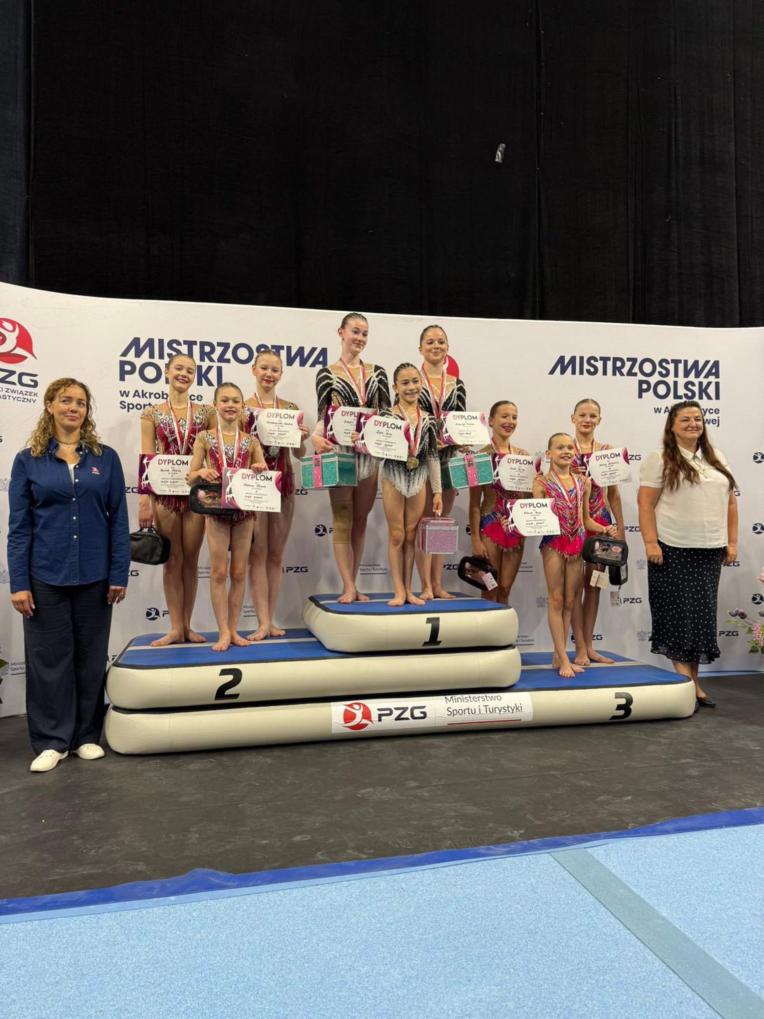Szczególnym sukcesem był czerwiec 2025 roku, kiedy to zawodniczki zdobyły złoty medal Mistrzostw Polski, pokonując w swojej klasie zespoły z całego kraju. Po wakacyjnej przerwie, wypełnionej intensywnymi treningami, akrobatki zaprezentowały się w wyższej kategorii wiekowej Pre-Youth (11–16 lat). Również tam udowodniły, że systematyczna praca i determinacja przynoszą efekty. Z 15. Międzynarodowego Turnieju w Akrobatyce Sportowej Wars & Sawa oraz XVII Grand Prix Polski im. Stanisława Gieronia wróciły z kolejnymi złotymi medalami i cennymi punktami do klasyfikacji kadrowej.