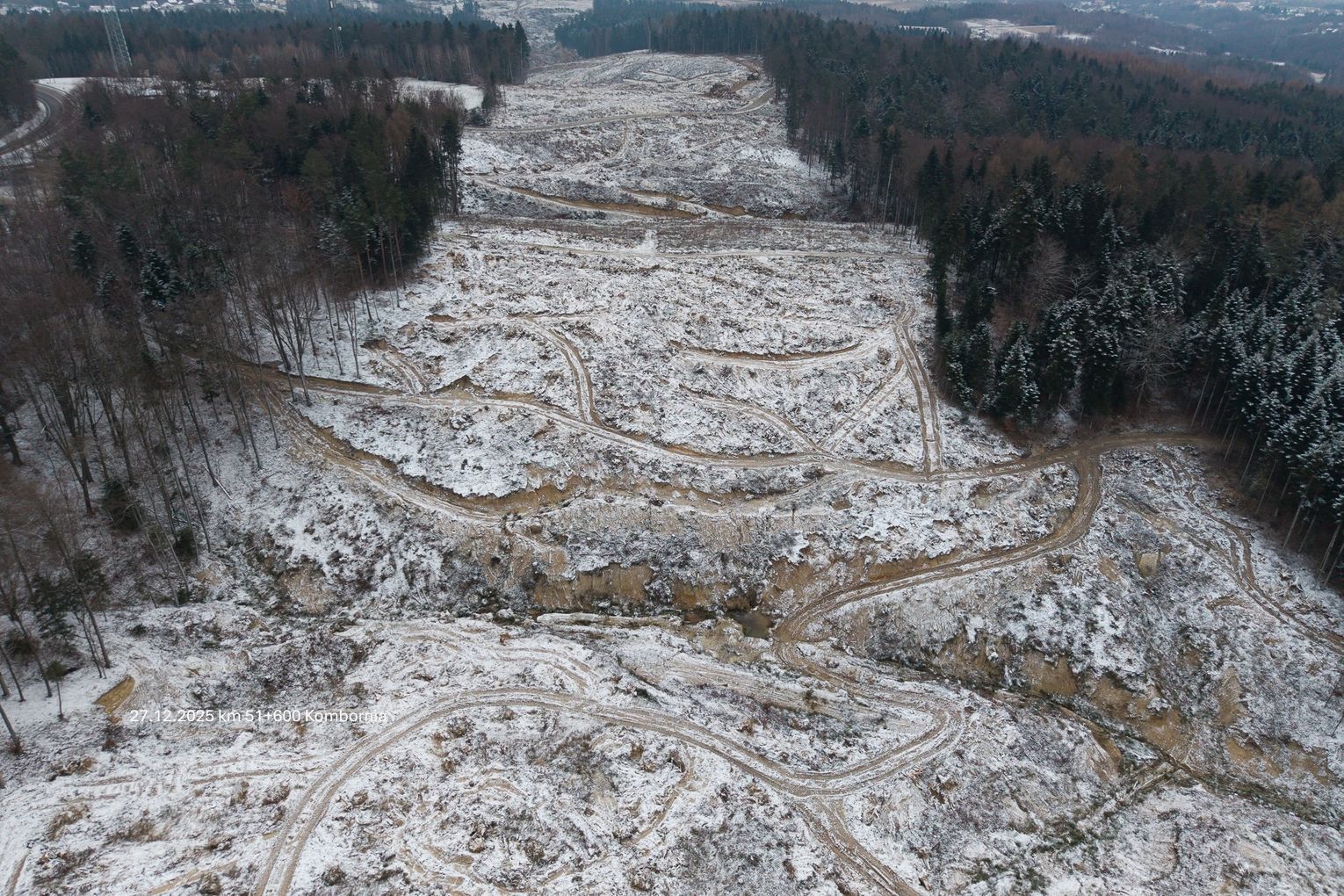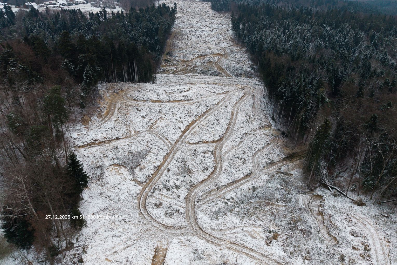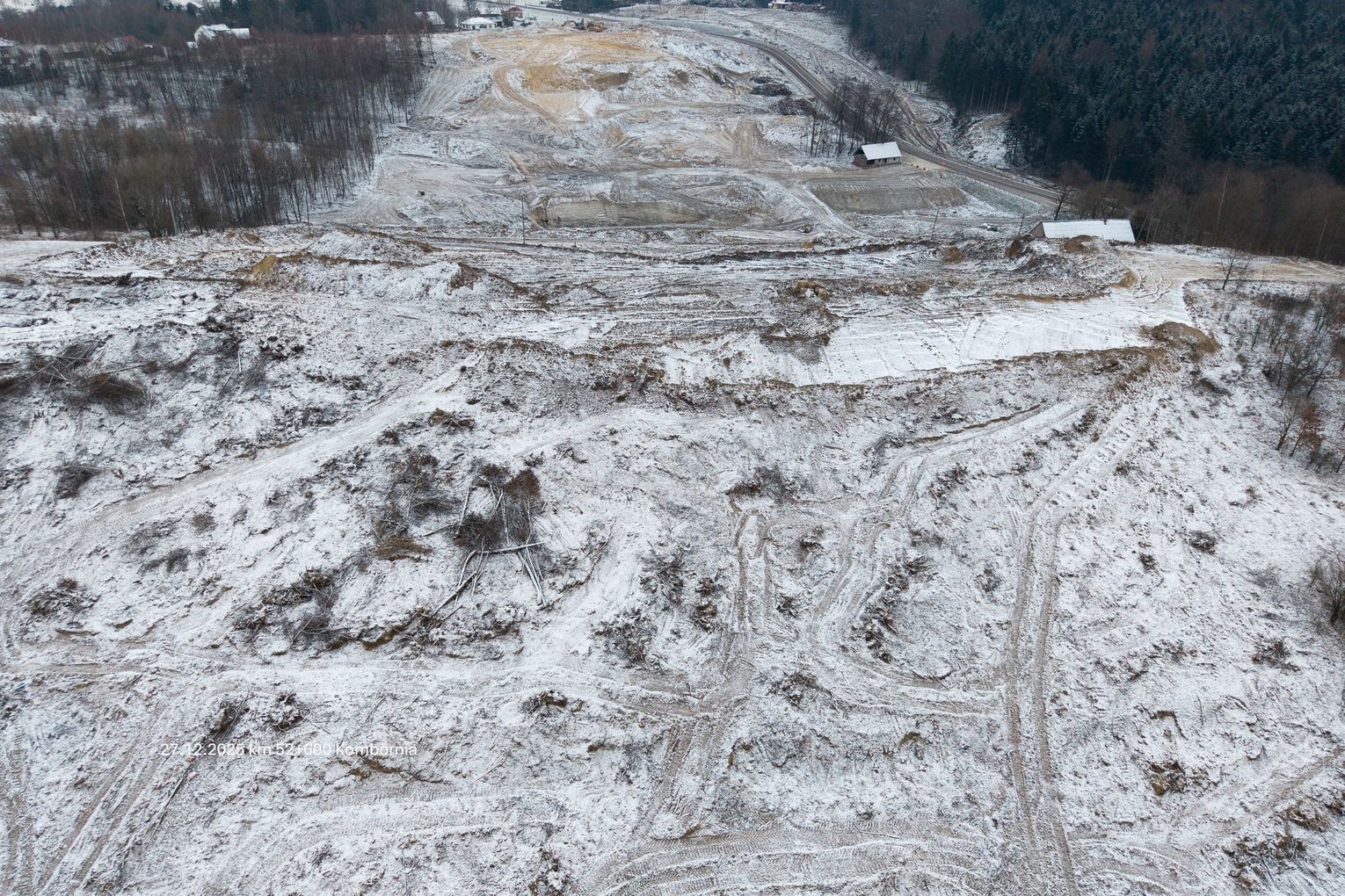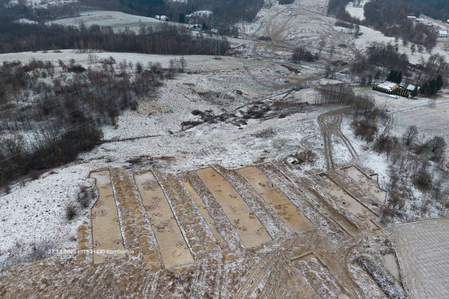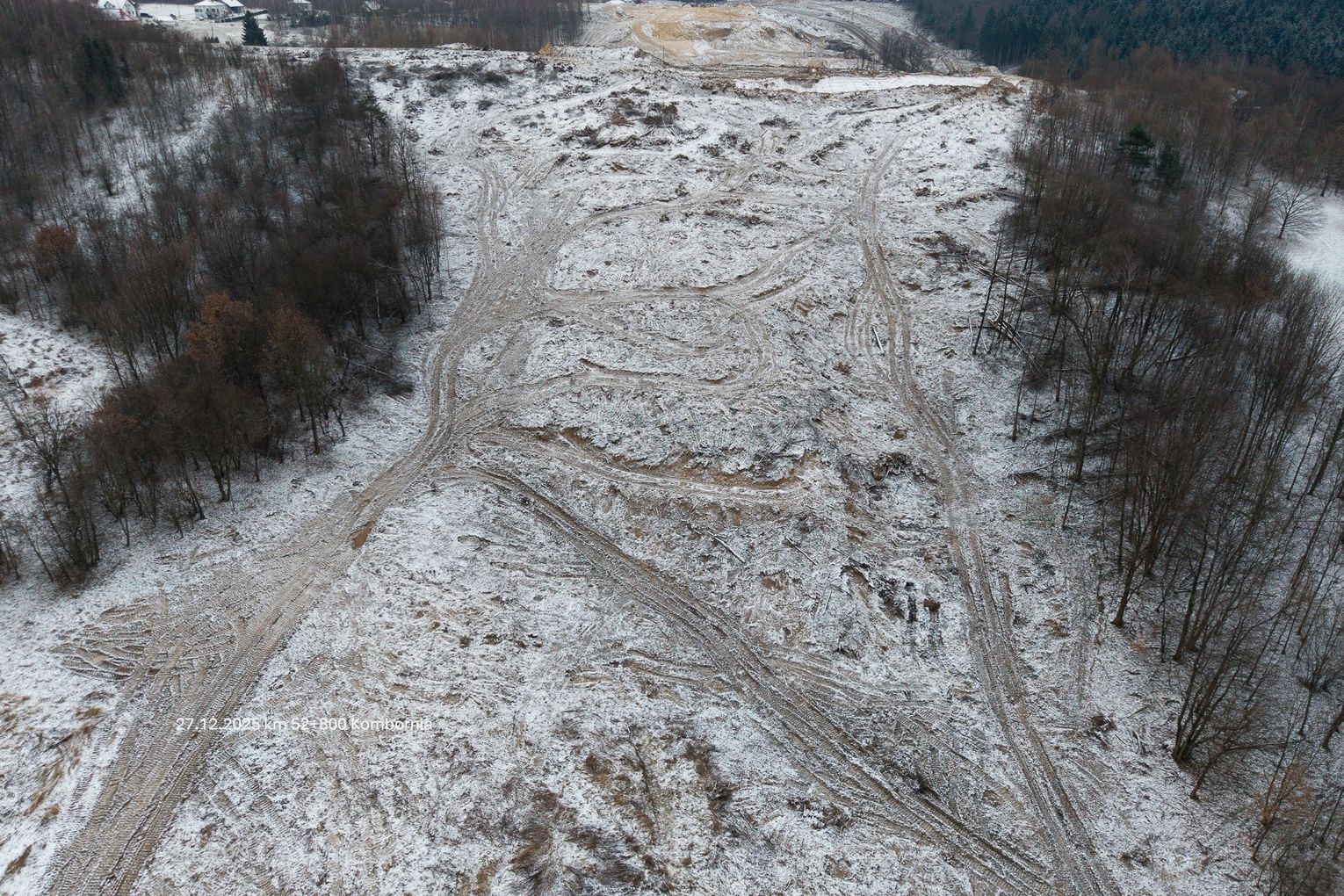 W ostatnim tygodniu przed końcem roku, 22-28 grudnia 2025 r., roboty miały charakter uzupełniający i zabezpieczający. Skupiono się na usuwaniu oraz składowaniu karpin na terenach Lasów Państwowych, a także na pracach porządkowych związanych z przerwą świąteczną. Jednocześnie kontynuowano wybrane prace konstrukcyjne, w tym zbrojenie elementów obiektu PS-1-5 oraz wykonywanie pali prefabrykowanych pod podpory tymczasowe na obiektach MS-1-8 i ES-1-26.