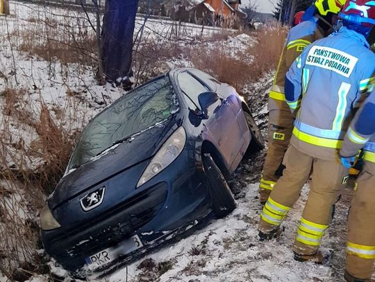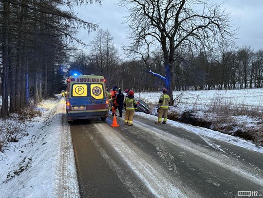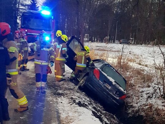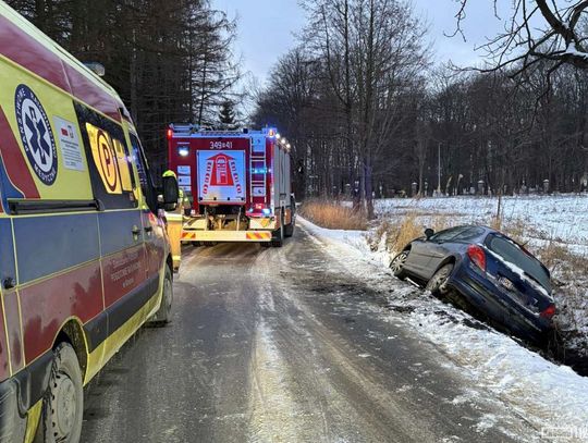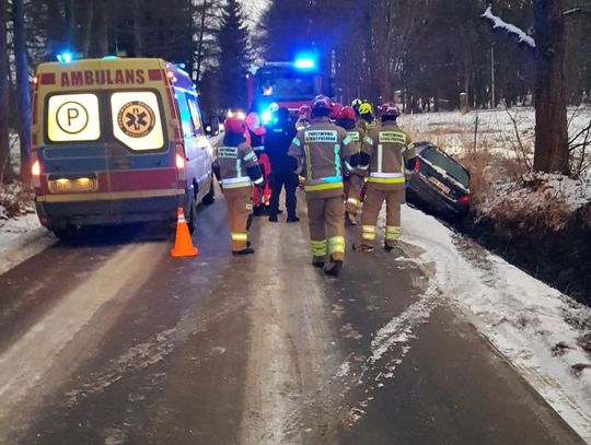 Kierujący samochodem stracił panowanie nad pojazdem i wjechał do rowu. Jedna osoba wymagała pomocy medycznej.