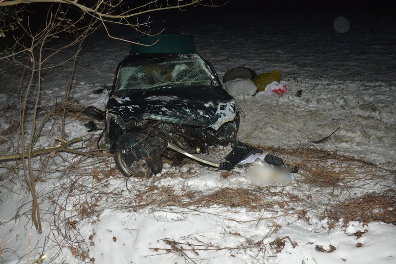 - Tuż przed godziną 16:00 dyżurny KMP w Krośnie otrzymał zgłoszenie o wypadku na drodze wojewódzkiej 864 w miejscowości Równe (gmina Dukla). Kierujący Mercedesem jadąc w kierunku granicy państwa z nieustalonych jeszcze przyczyn z bardzo dużą prędkością (licznik zatrzymał się na 130 km/h) zjechał z jezdni, jadąc nasypem kilkadziesiąt metrów, następnie uderzył z impetem w przydrożne drzewo, pojazd dachował i ostatecznie zatrzymał się na pobliskim polu. Niestety 40-letni mieszkaniec województwa mazowieckiego zginął na miejscu - relacjonuje pierwsze ustalenia podinsp. Krzysztof Belczyk - Naczelnik Wydziału Ruchu Drogowego KMP w Krośnie, który prowadził czynności wyjaśniające na miejscu tragicznego wypadku.
