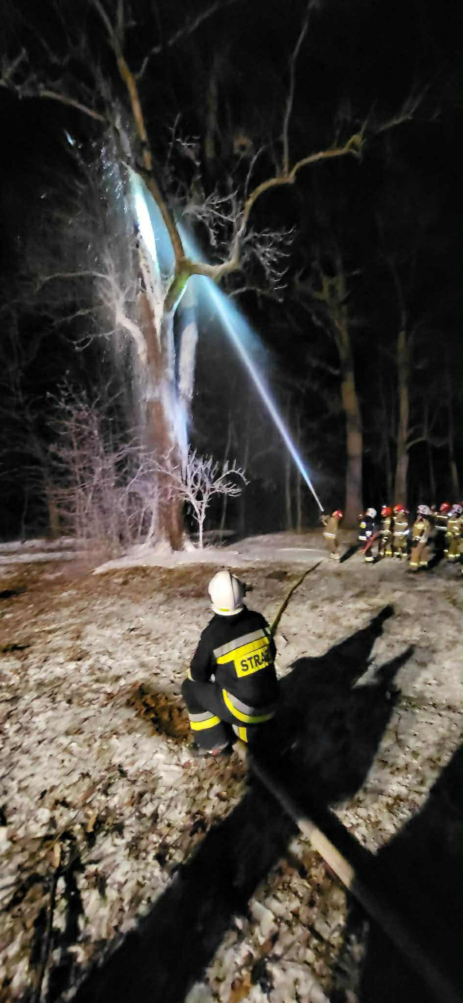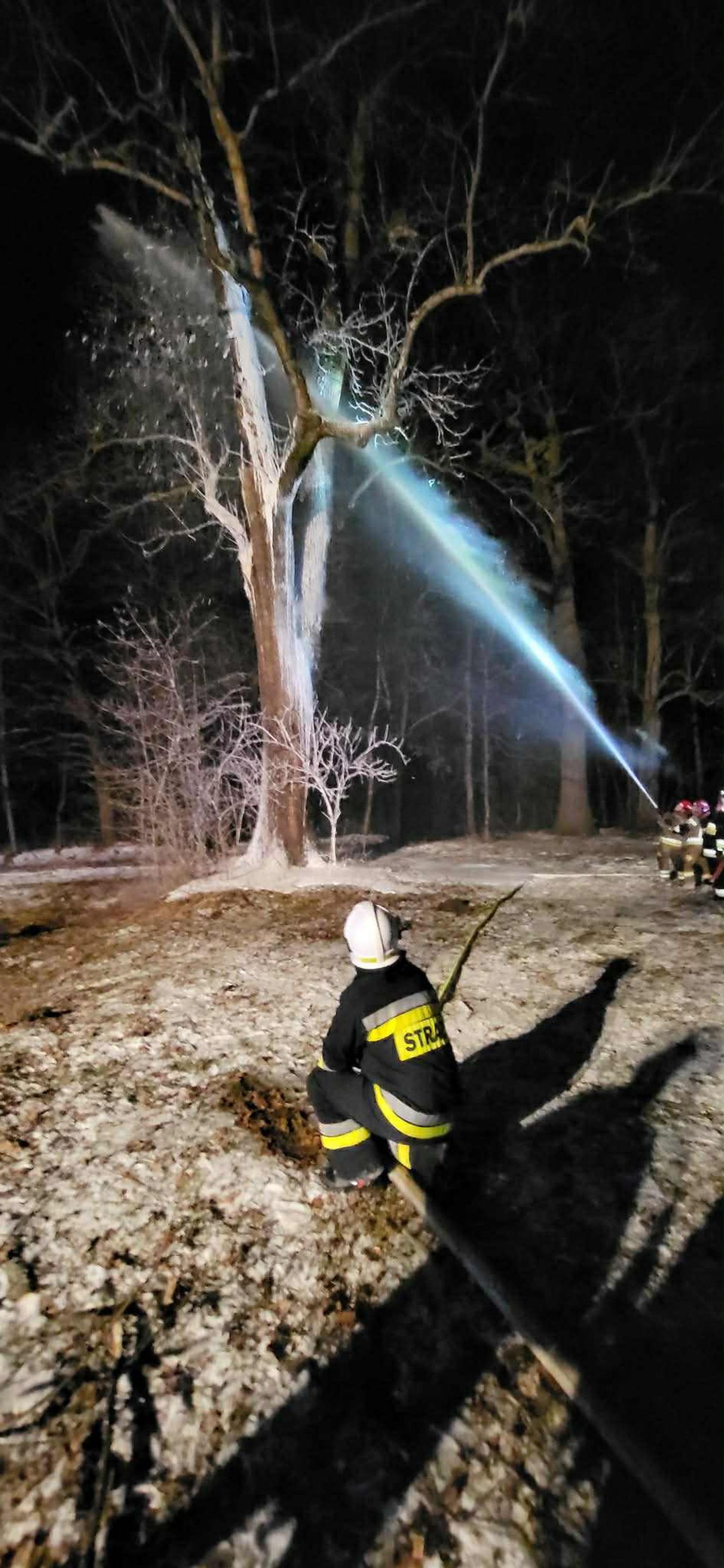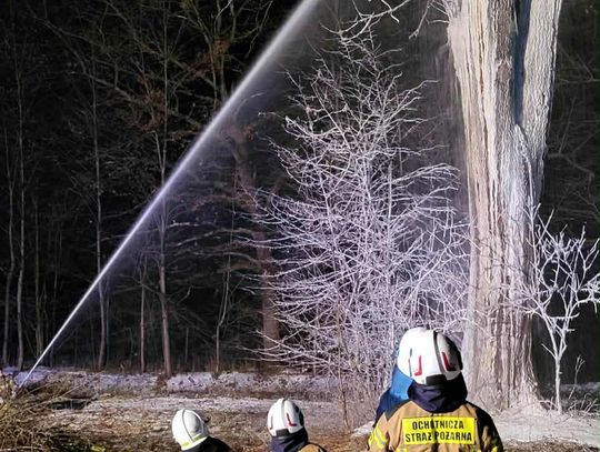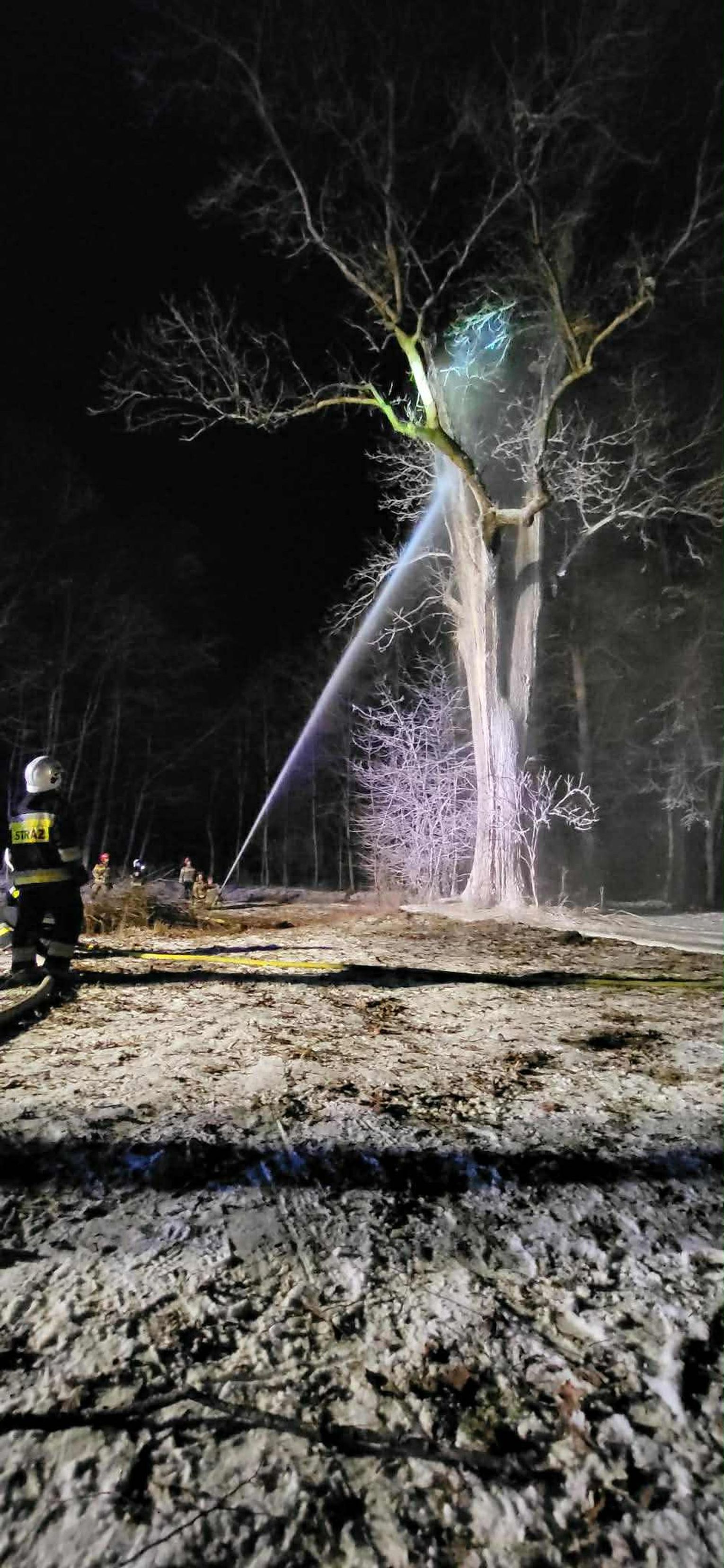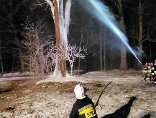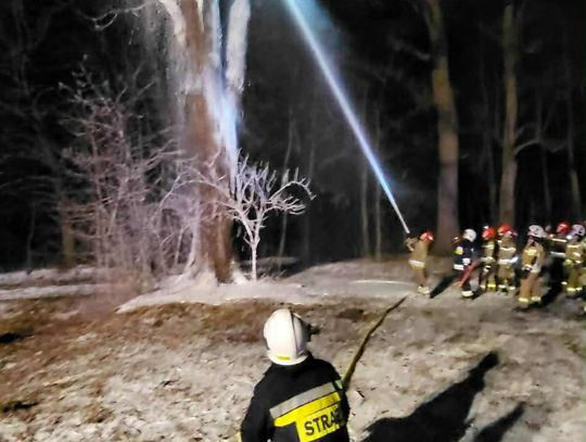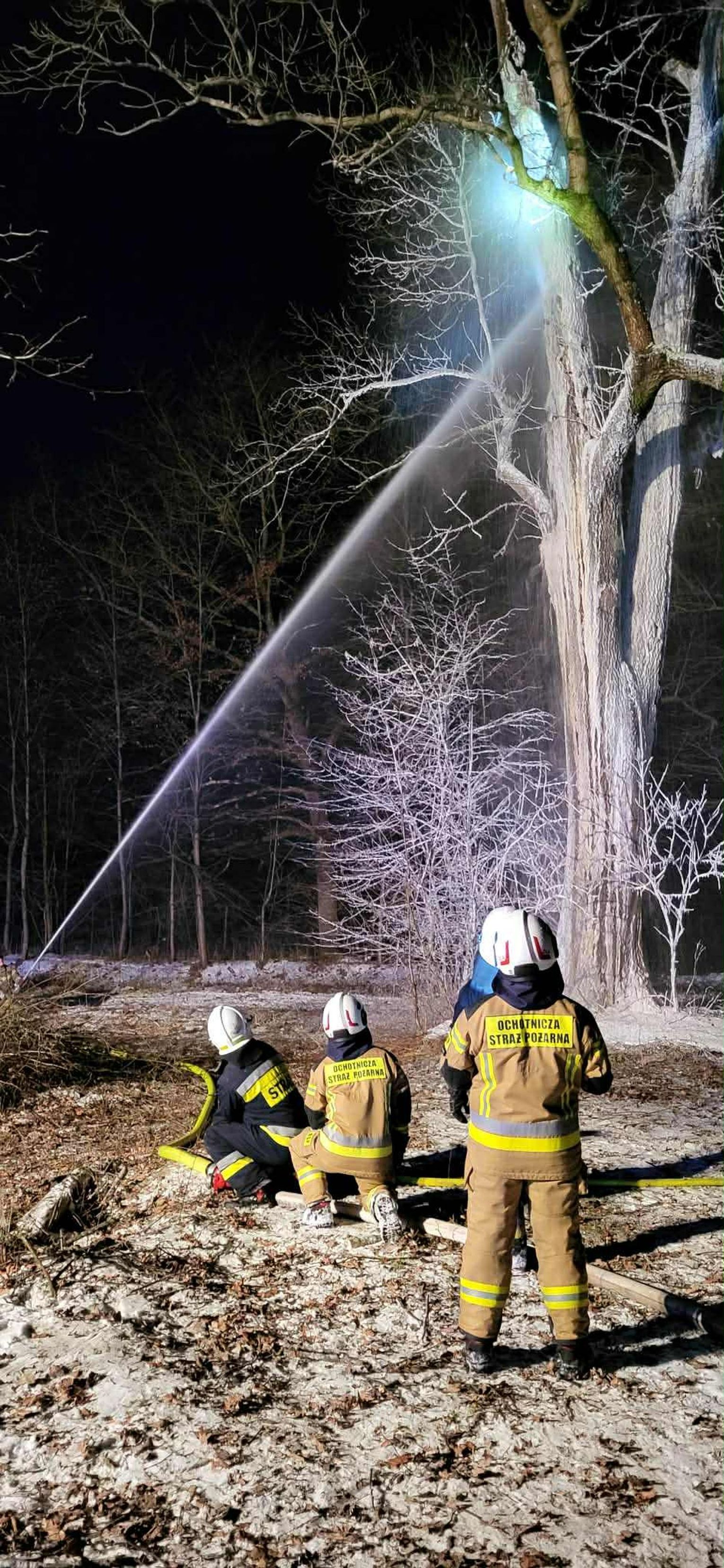 Po dojeździe na miejsce pożaru, okazało się, że pożarem objęty jest pień dębu na dużej wysokości. Pierwszy zastęp OSP KSRG Targowiska przystąpił do ugaszenia pożaru m.in. pianą gaśniczą. Jednak, aby ugasić w całości pożar, potrzebne było większe zaopatrzenie wodne. Dlatego na miejsce skierowano sekcję gaśniczą z JRG w Krośnie: dwa ciężkie samochody, dysponujące w sumie 13 tysiącami litrów wody.