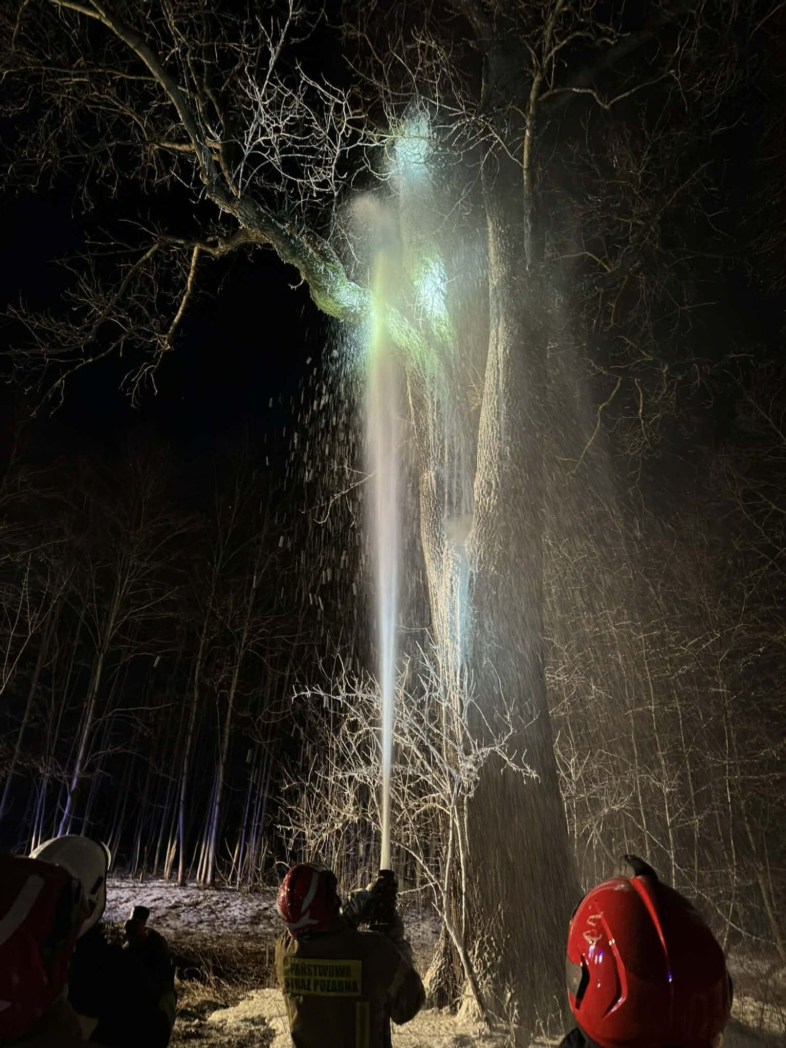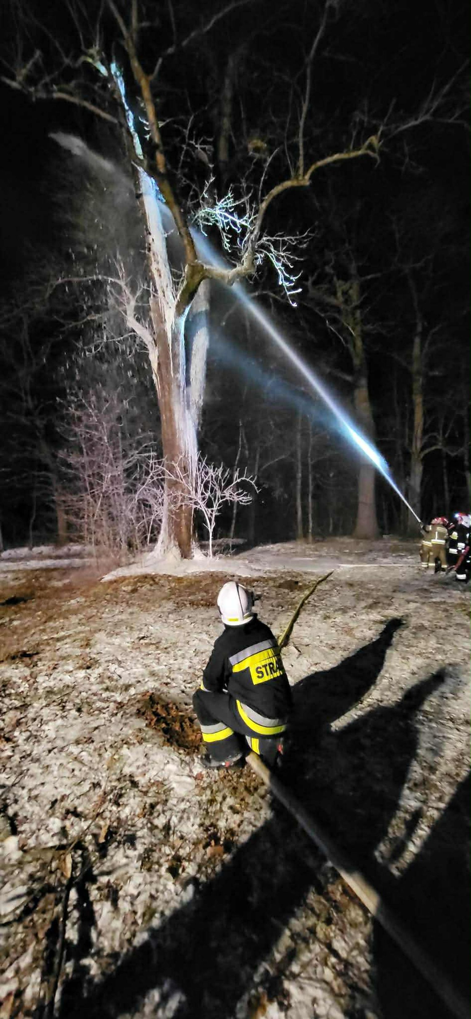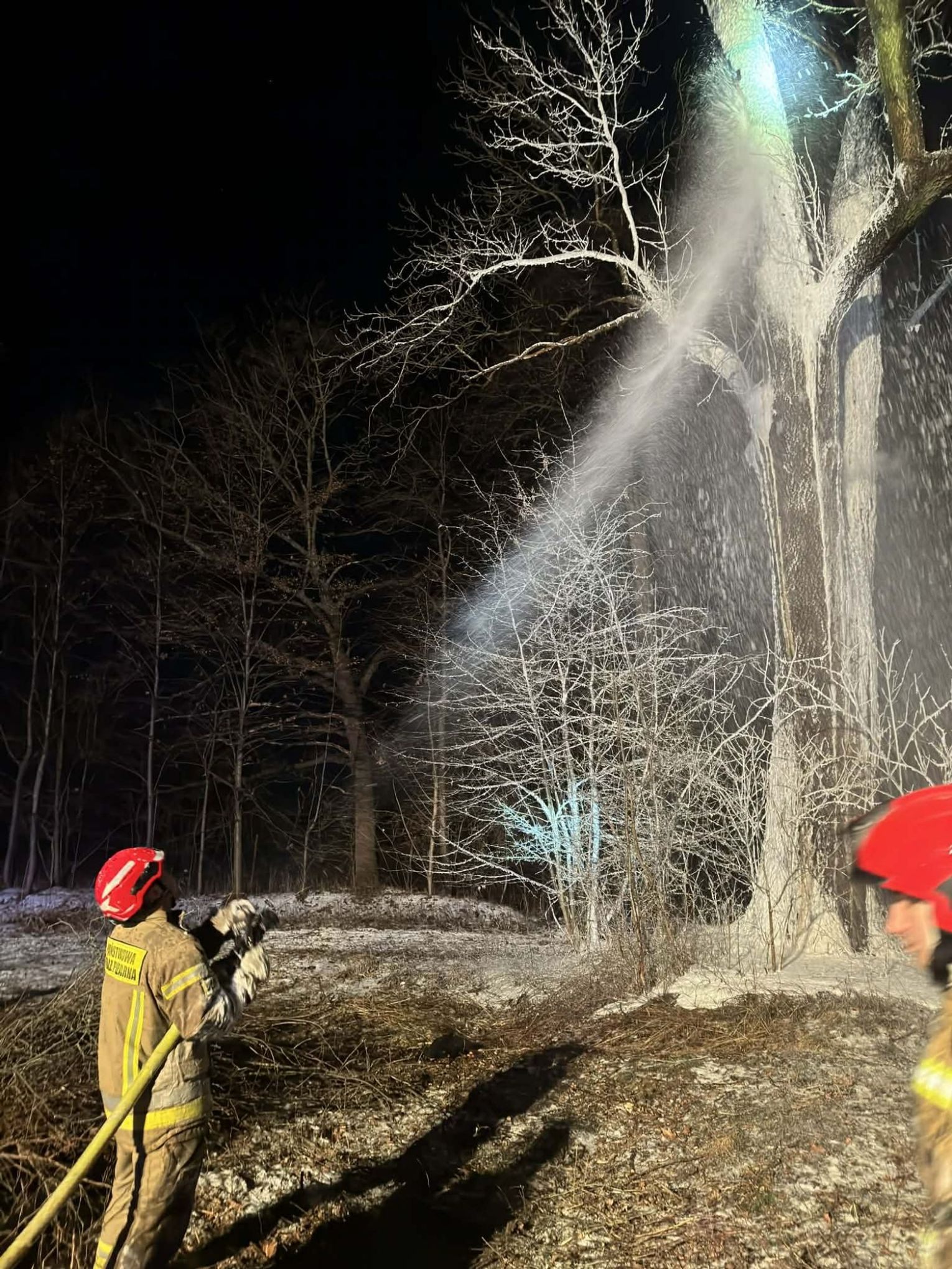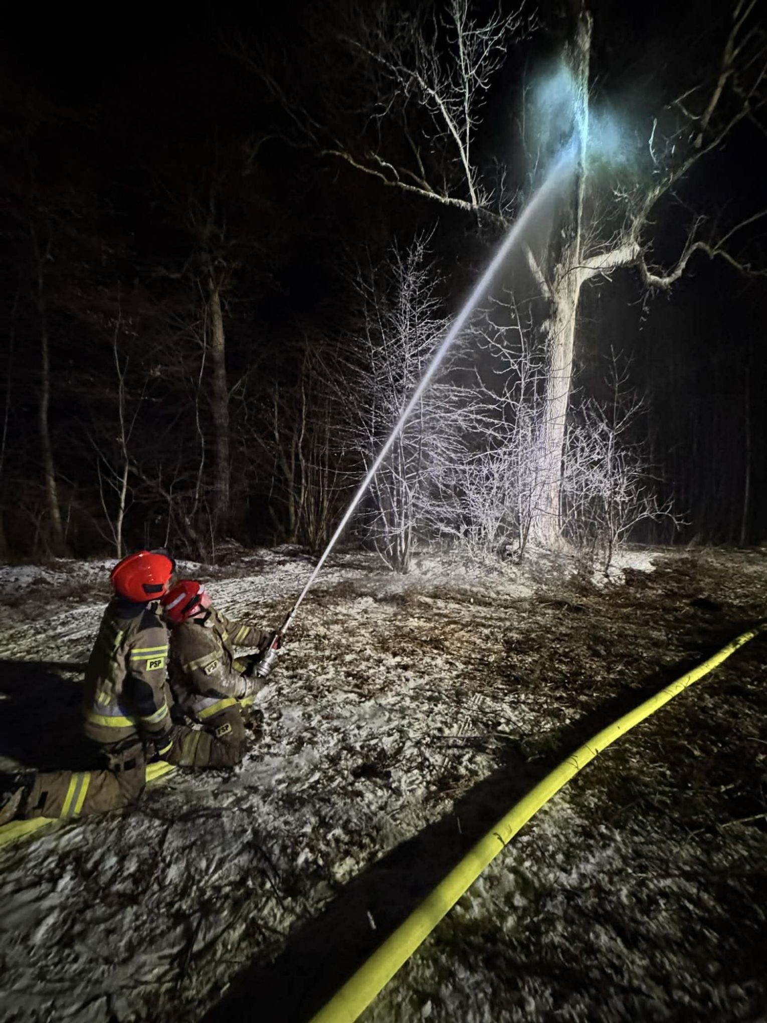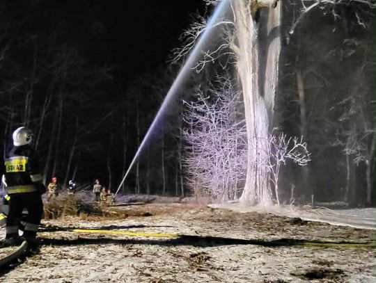 Po dojeździe na miejsce pożaru, okazało się, że pożarem objęty jest pień dębu na dużej wysokości. Pierwszy zastęp OSP KSRG Targowiska przystąpił do ugaszenia pożaru m.in. pianą gaśniczą. Jednak, aby ugasić w całości pożar, potrzebne było większe zaopatrzenie wodne. Dlatego na miejsce skierowano sekcję gaśniczą z JRG w Krośnie: dwa ciężkie samochody, dysponujące w sumie 13 tysiącami litrów wody.