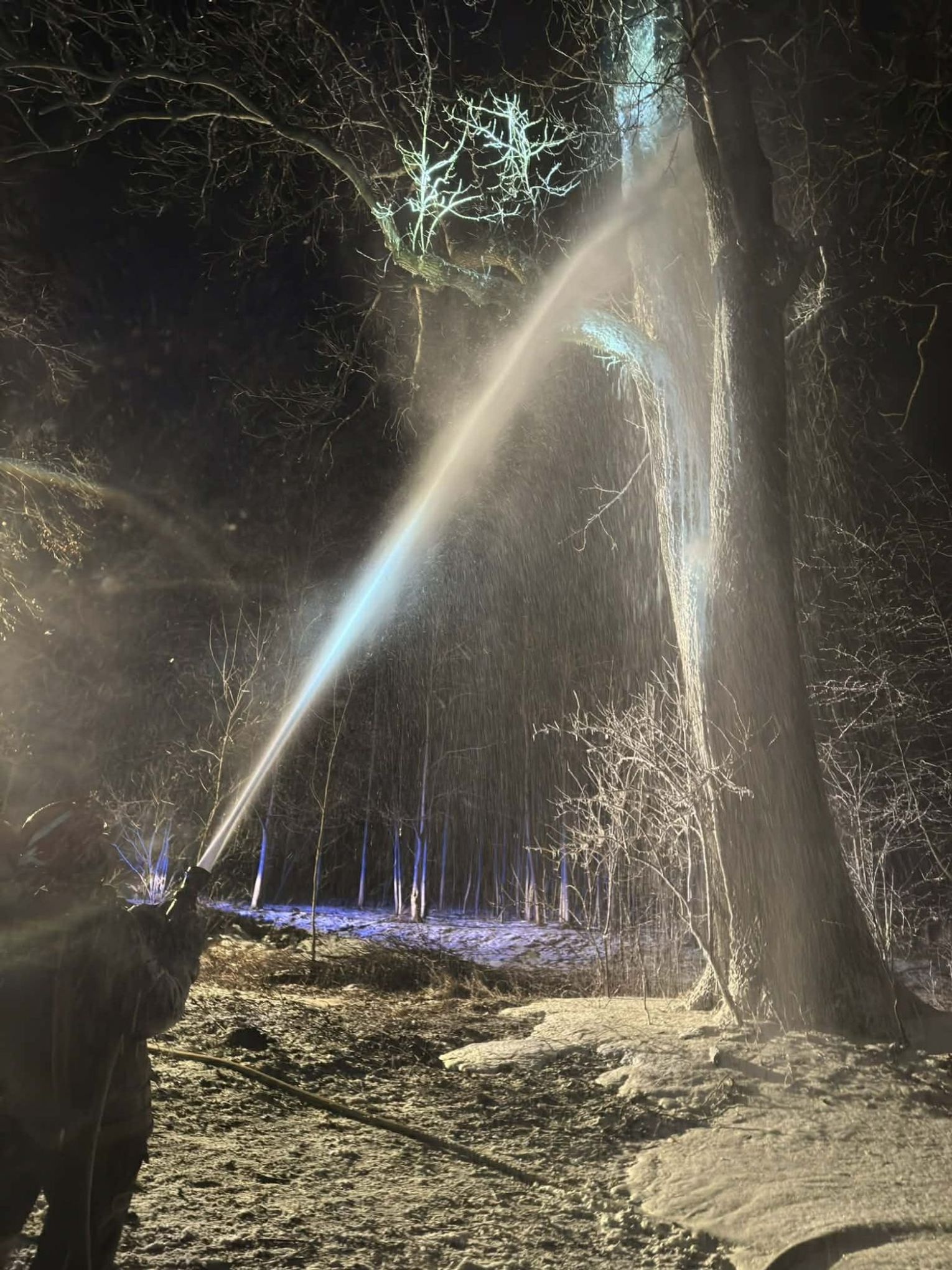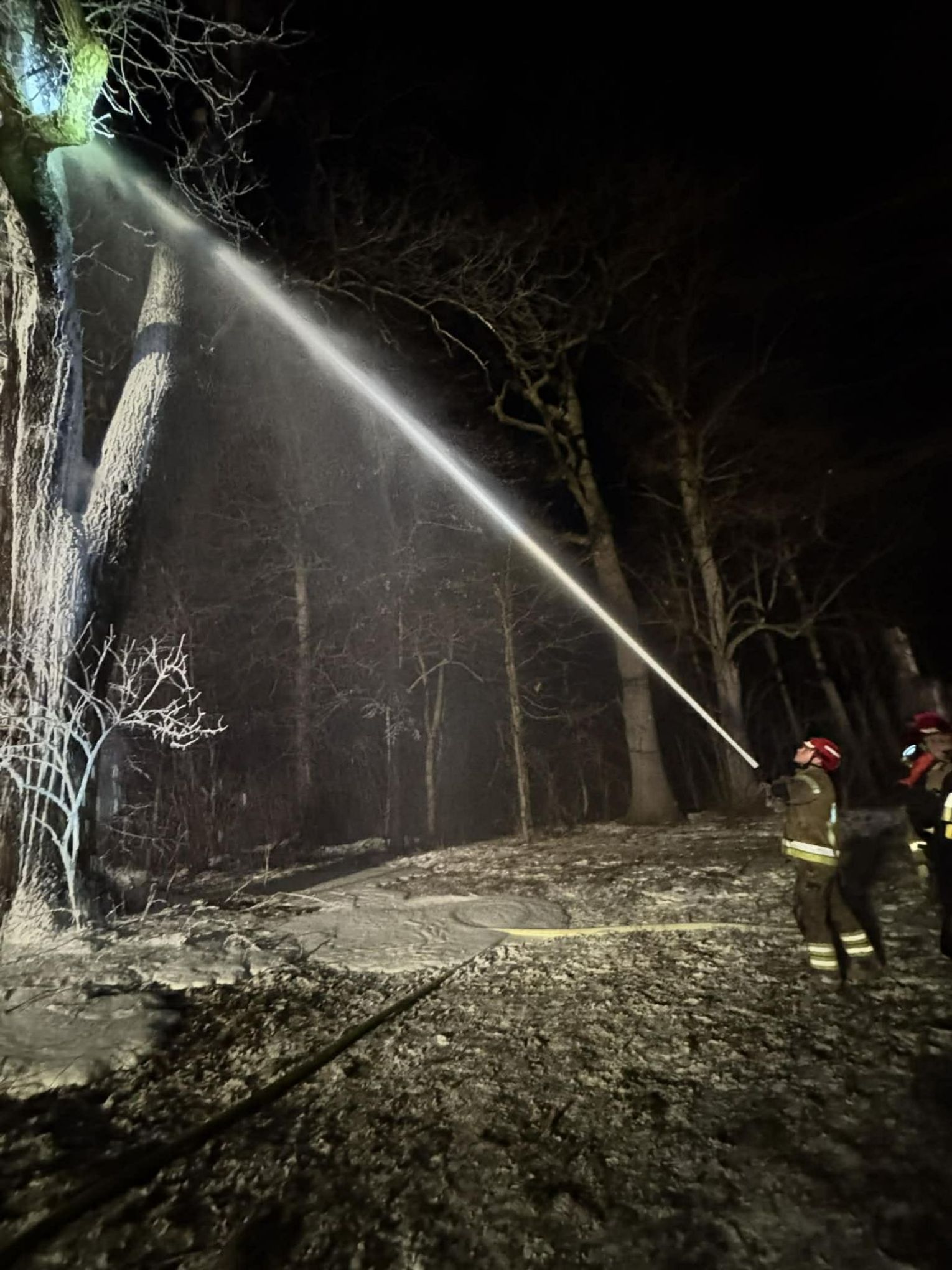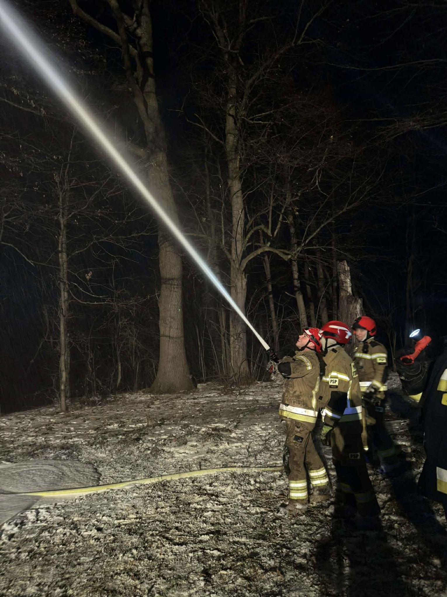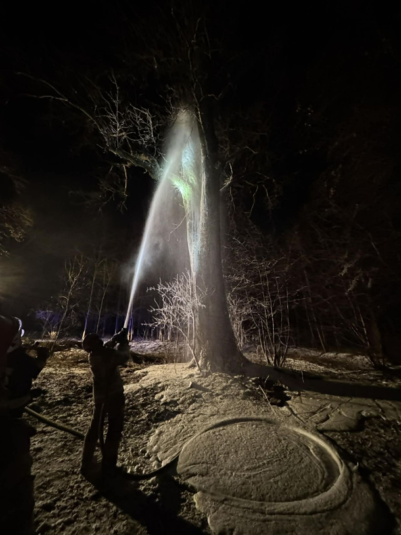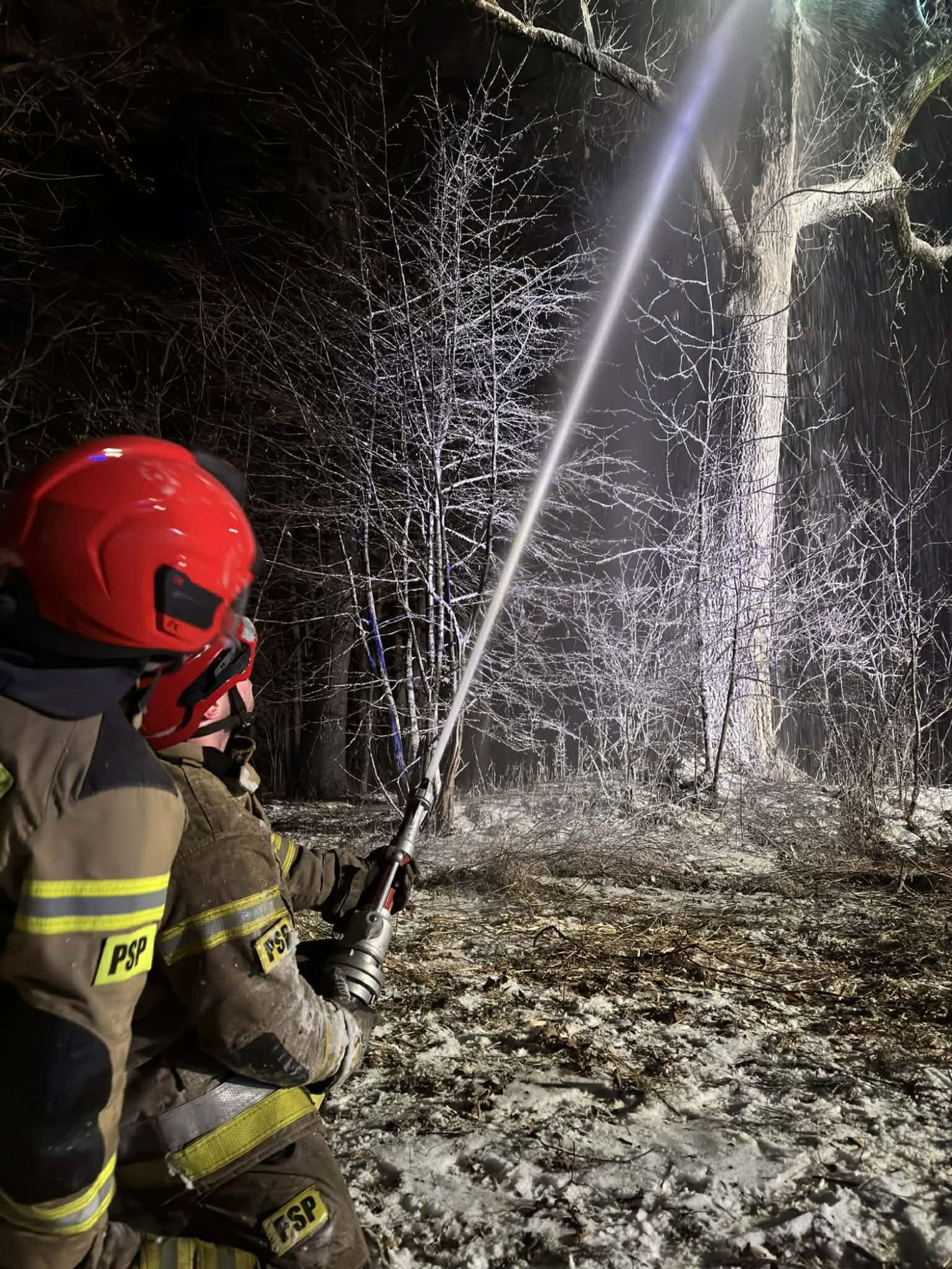Po dojeździe na miejsce pożaru, okazało się, że pożarem objęty jest pień dębu na dużej wysokości. Pierwszy zastęp OSP KSRG Targowiska przystąpił do ugaszenia pożaru m.in. pianą gaśniczą. Jednak, aby ugasić w całości pożar, potrzebne było większe zaopatrzenie wodne. Dlatego na miejsce skierowano sekcję gaśniczą z JRG w Krośnie: dwa ciężkie samochody, dysponujące w sumie 13 tysiącami litrów wody.