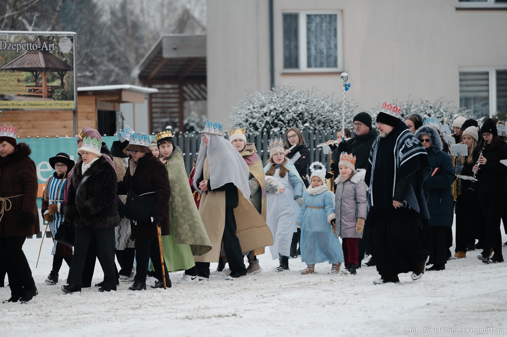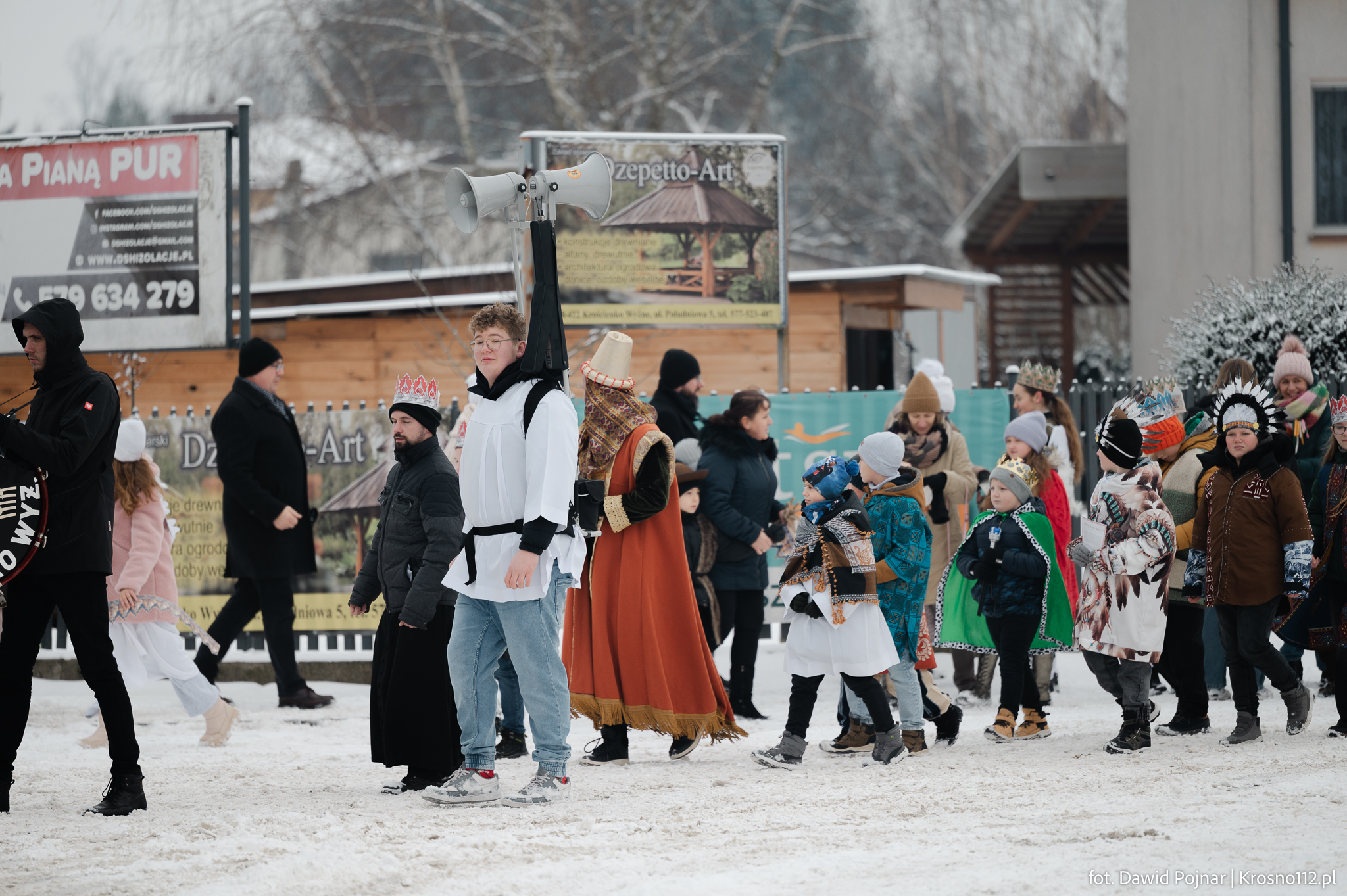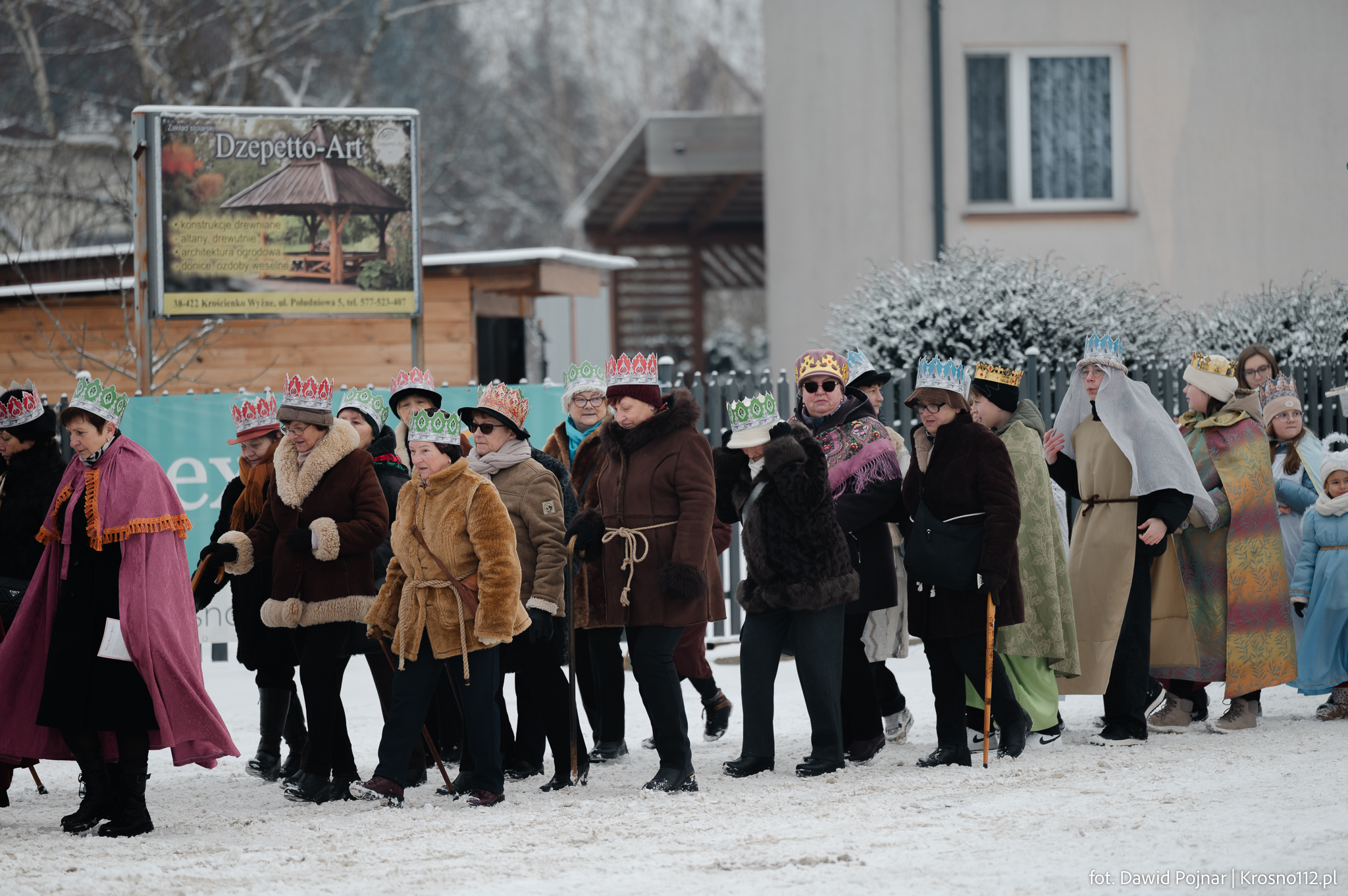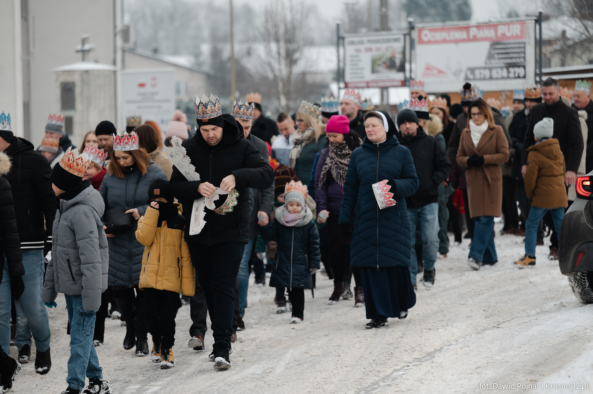 Uczestnicy zgromadzili się przed Domem Ludowym, skąd barwny orszak – z koronami na głowach, śpiewem kolęd i symbolami Trzech Króli – wyruszył do kościoła parafialnego pw. św. Marcina. Wspólny przemarsz był wyrazem wiary, tradycji oraz jedności lokalnej społeczności.