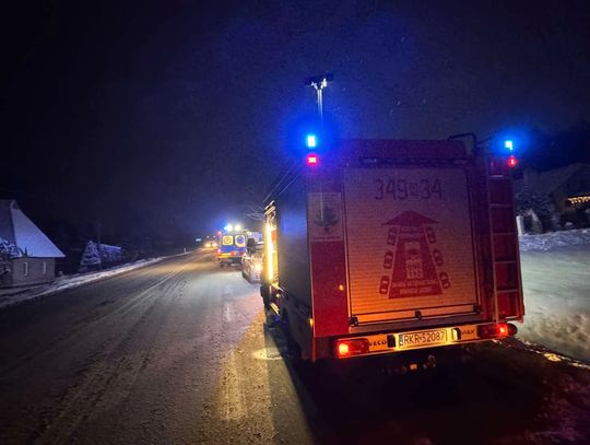 Do zdarzenia doszło w ciągu drogi krajowej nr 28 w Jaszczwi (na pasie w kierunku Krosna). Na miejscu działania prowadzą strażacy z JRG Krosno, OSP KSRG Jaszczew, policjanci WRD KMP Krosno oraz medycy SPPR Krosno.