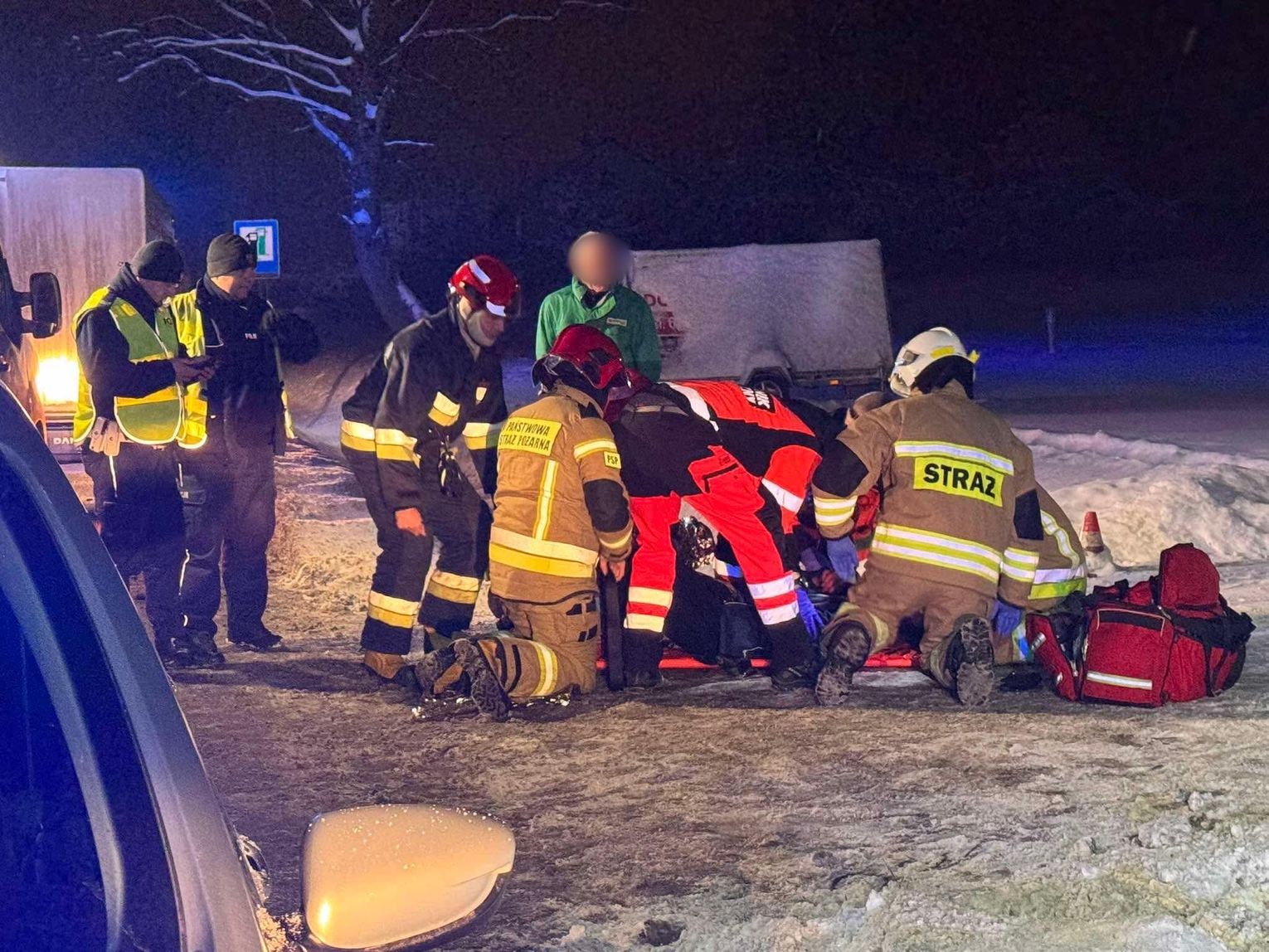 Pierwszej pomocy poszkodowanemu mężczyźnie udzielił strażak JRG Krosno oraz druh OSP KSRG Rogi, który był poza służbą i najechał na to zdarzenie.