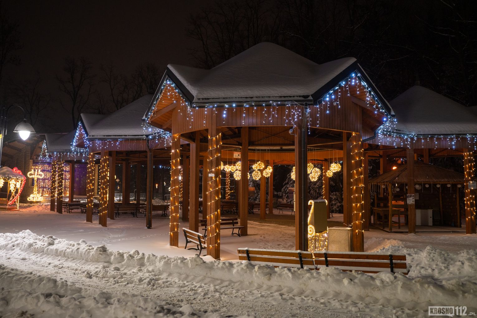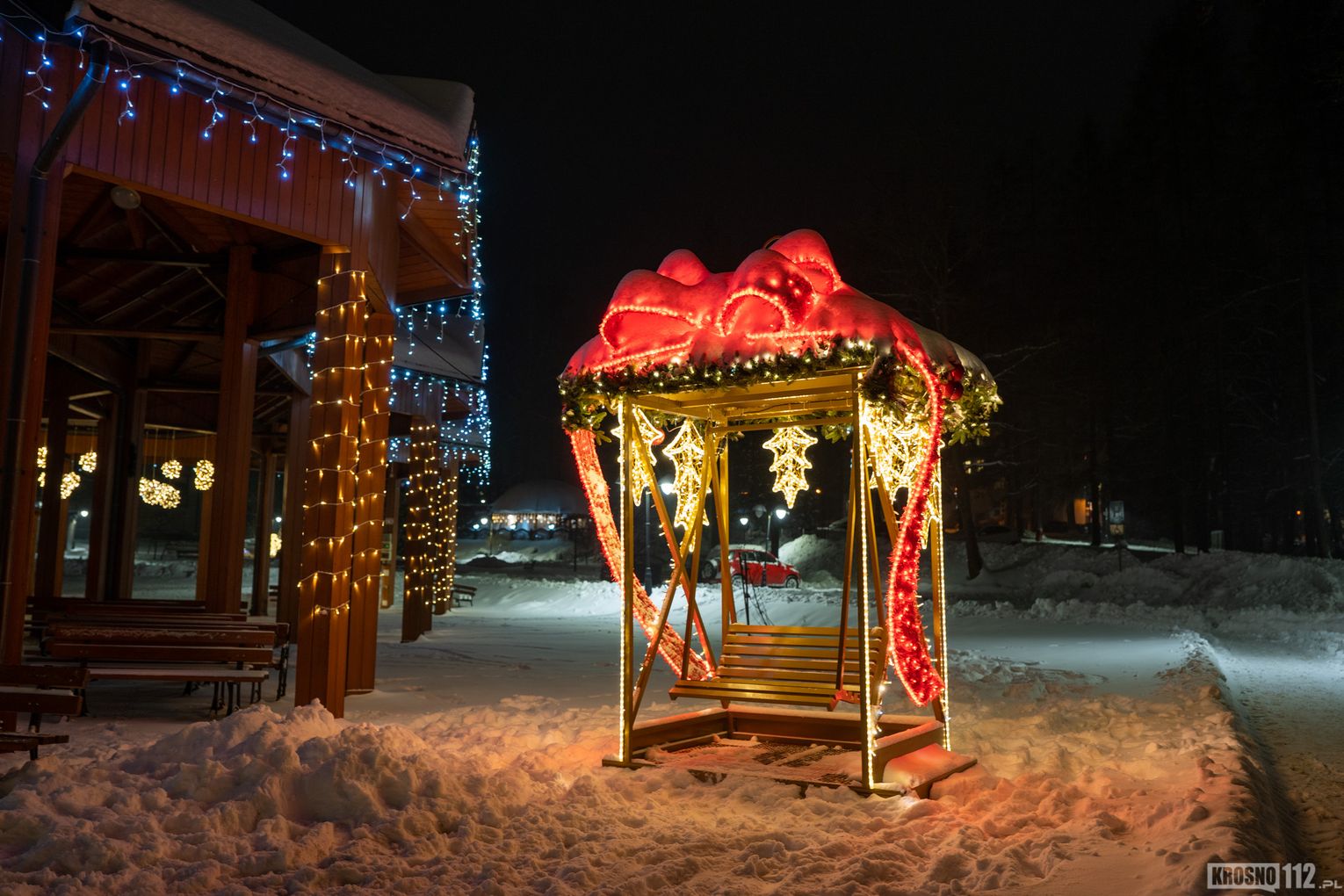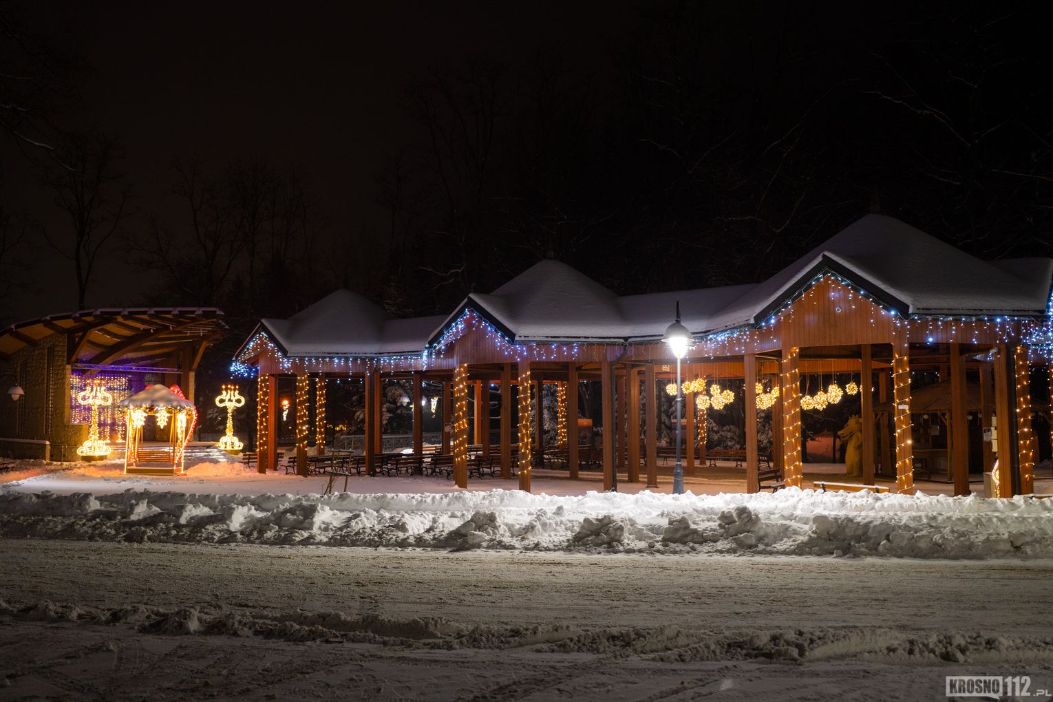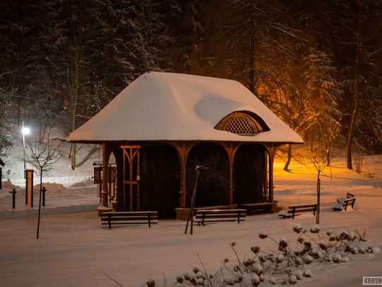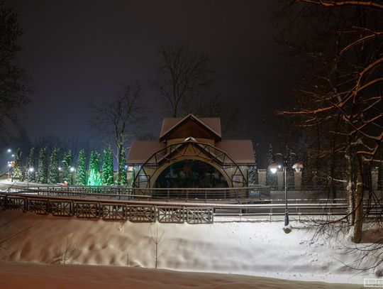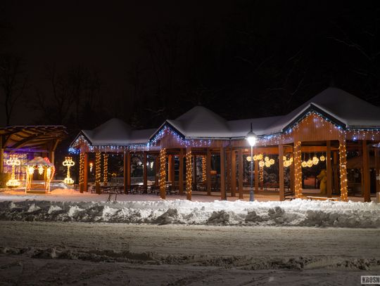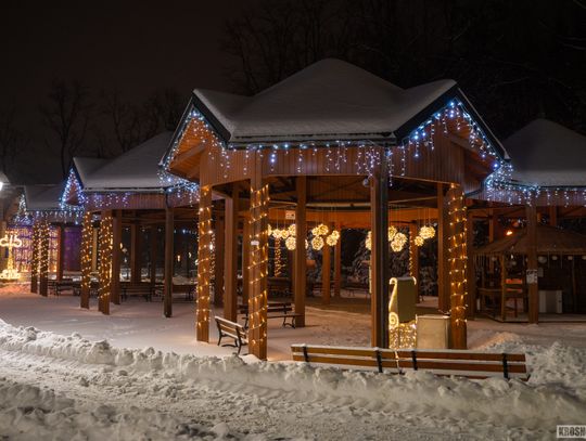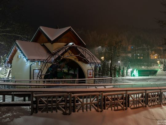 Zima w Rymanowie-Zdroju zachwyca ciszą, świeżym powietrzem i niepowtarzalnym klimatem uzdrowiska. Ośnieżone alejki, park zdrojowy oraz eleganckie budynki nabierają wyjątkowego uroku, gdy pojawiają się świąteczne ozdoby i delikatne iluminacje. Migoczące lampki, udekorowane choinki i świetlne instalacje wprowadzają ciepłą, świąteczną atmosferę, kontrastując z zimowym chłodem. To czas, kiedy Rymanów-Zdrój wygląda szczególnie malowniczo i sprzyja spokojnym spacerom oraz chwili wytchnienia.