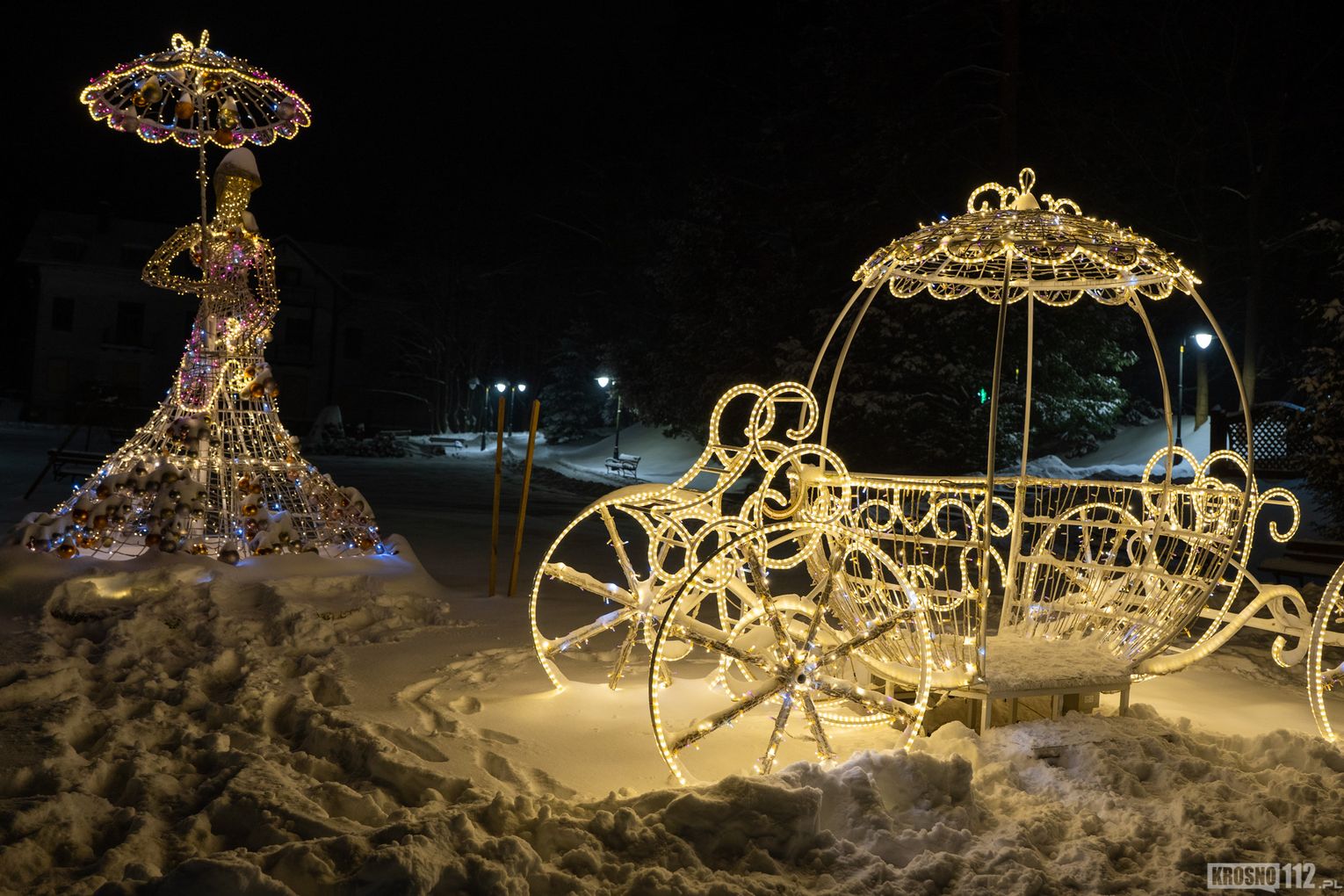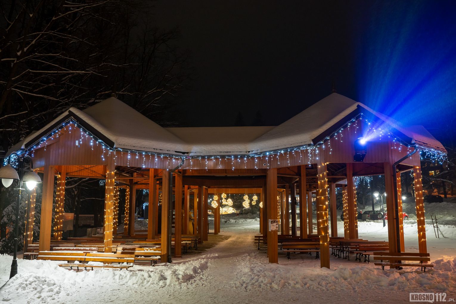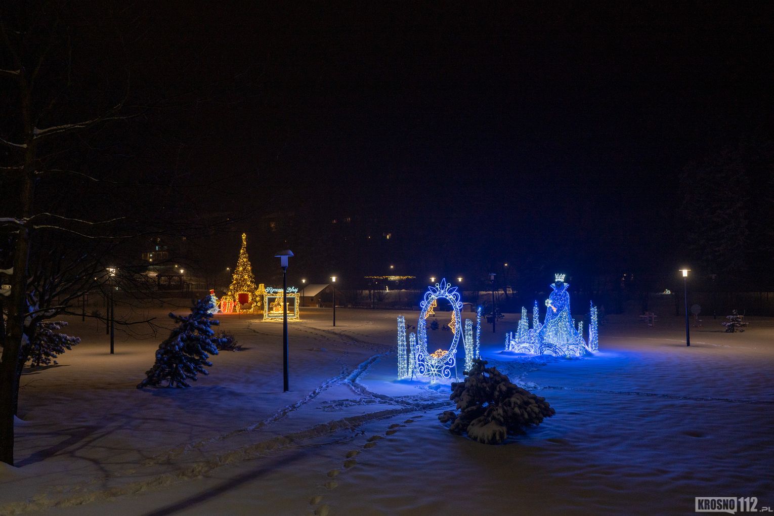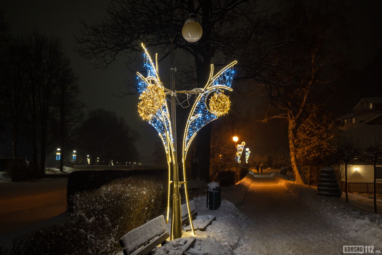 Zima w Rymanowie-Zdroju zachwyca ciszą, świeżym powietrzem i niepowtarzalnym klimatem uzdrowiska. Ośnieżone alejki, park zdrojowy oraz eleganckie budynki nabierają wyjątkowego uroku, gdy pojawiają się świąteczne ozdoby i delikatne iluminacje. Migoczące lampki, udekorowane choinki i świetlne instalacje wprowadzają ciepłą, świąteczną atmosferę, kontrastując z zimowym chłodem. To czas, kiedy Rymanów-Zdrój wygląda szczególnie malowniczo i sprzyja spokojnym spacerom oraz chwili wytchnienia.