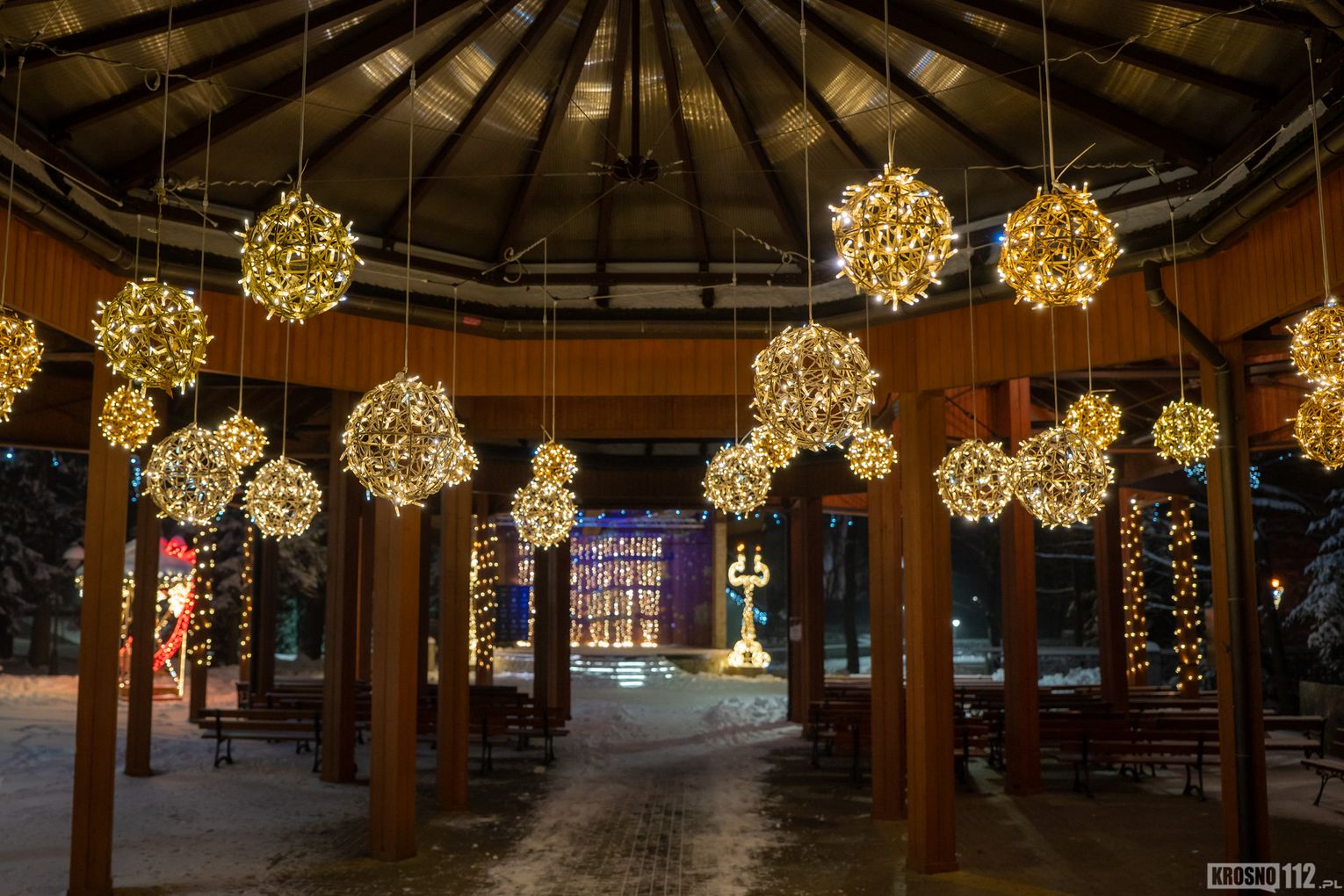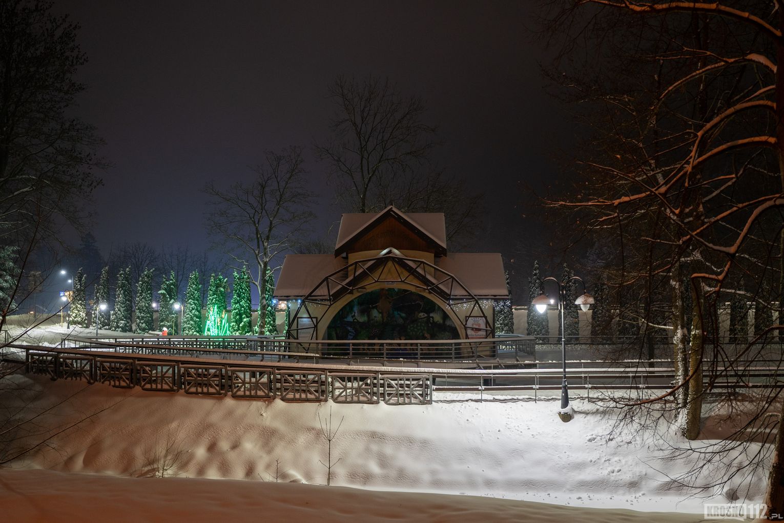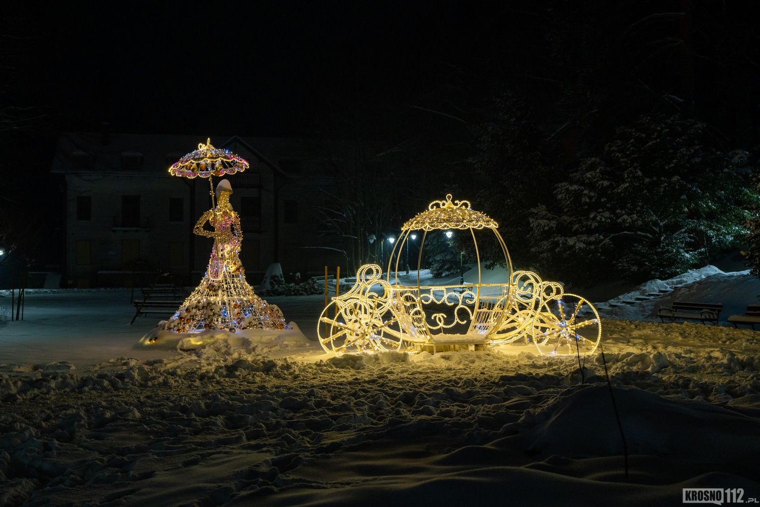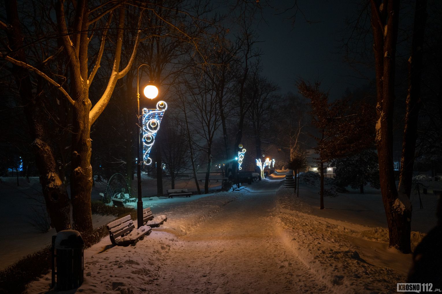 Zima w Rymanowie-Zdroju zachwyca ciszą, świeżym powietrzem i niepowtarzalnym klimatem uzdrowiska. Ośnieżone alejki, park zdrojowy oraz eleganckie budynki nabierają wyjątkowego uroku, gdy pojawiają się świąteczne ozdoby i delikatne iluminacje. Migoczące lampki, udekorowane choinki i świetlne instalacje wprowadzają ciepłą, świąteczną atmosferę, kontrastując z zimowym chłodem. To czas, kiedy Rymanów-Zdrój wygląda szczególnie malowniczo i sprzyja spokojnym spacerom oraz chwili wytchnienia.