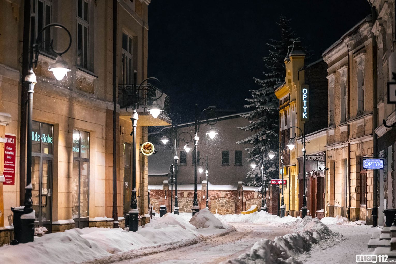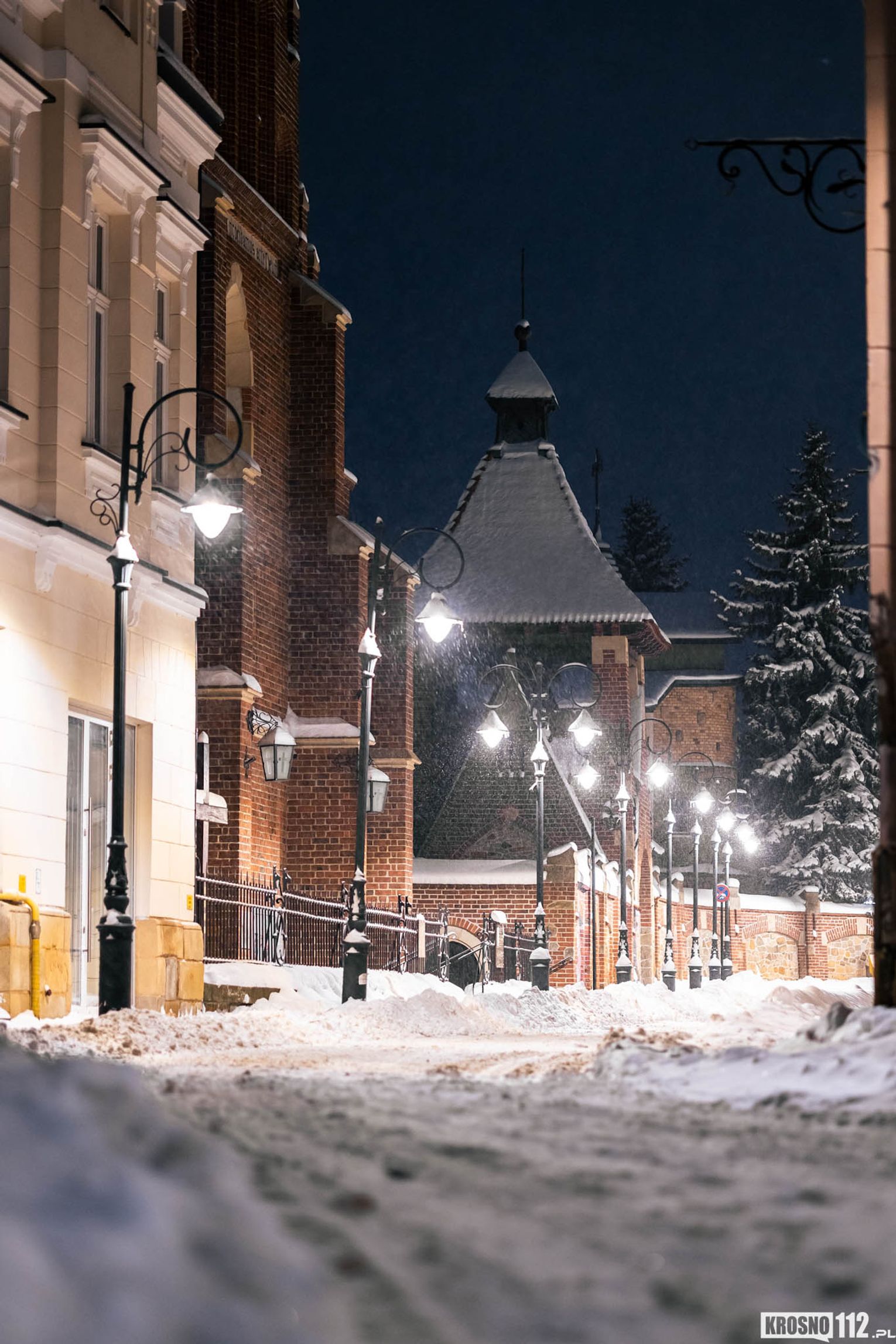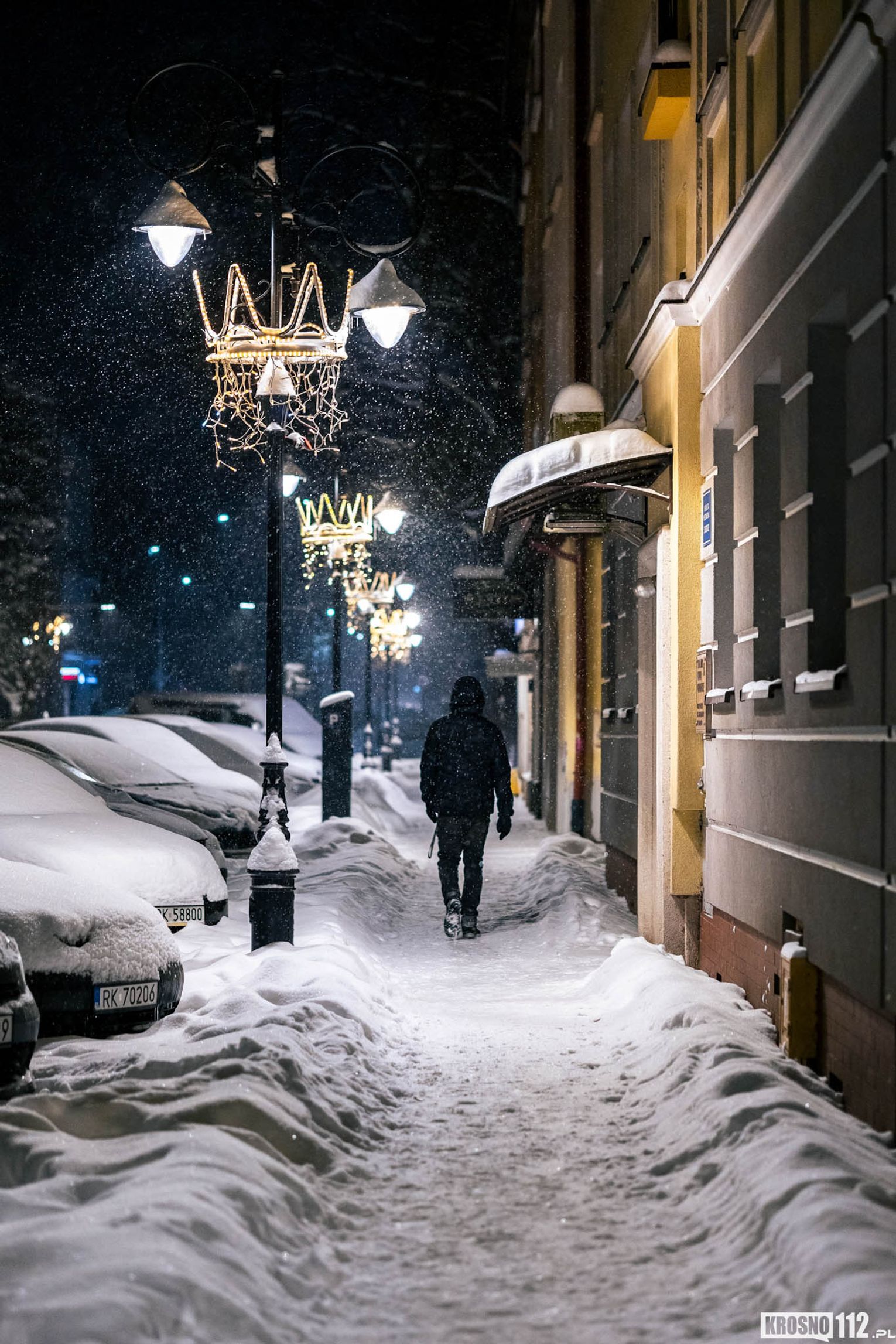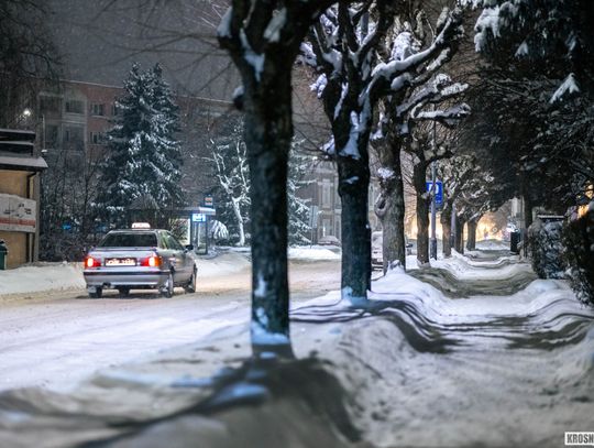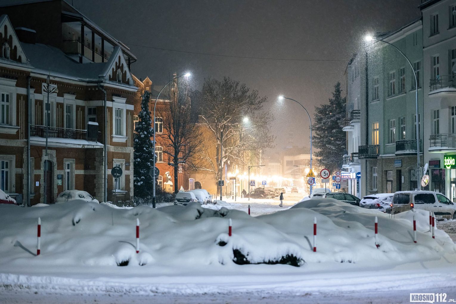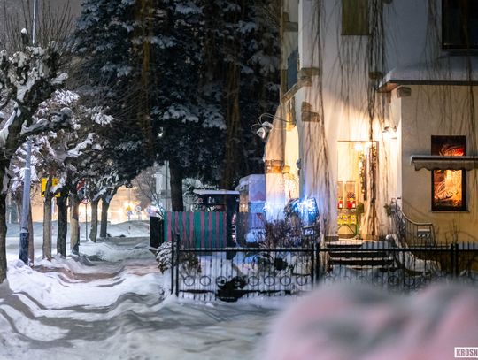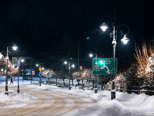 Fotografie pokazują Krosno z zupełnie innej perspektywy – ciche, spokojne ulice przykryte grubą warstwą śniegu, oszronione drzewa w parkach, rynek skąpany w zimowym półmroku oraz panoramy miasta widziane przez zimową mgłę. Kadry oddają zarówno surowość zimowej aury, jak i jej nieoczywiste piękno.