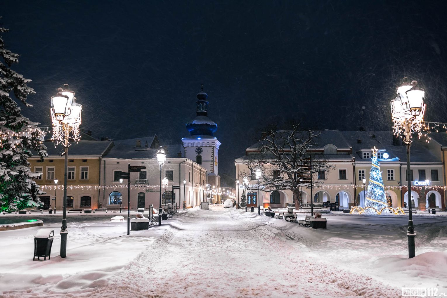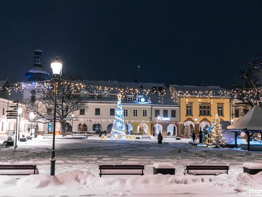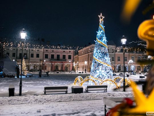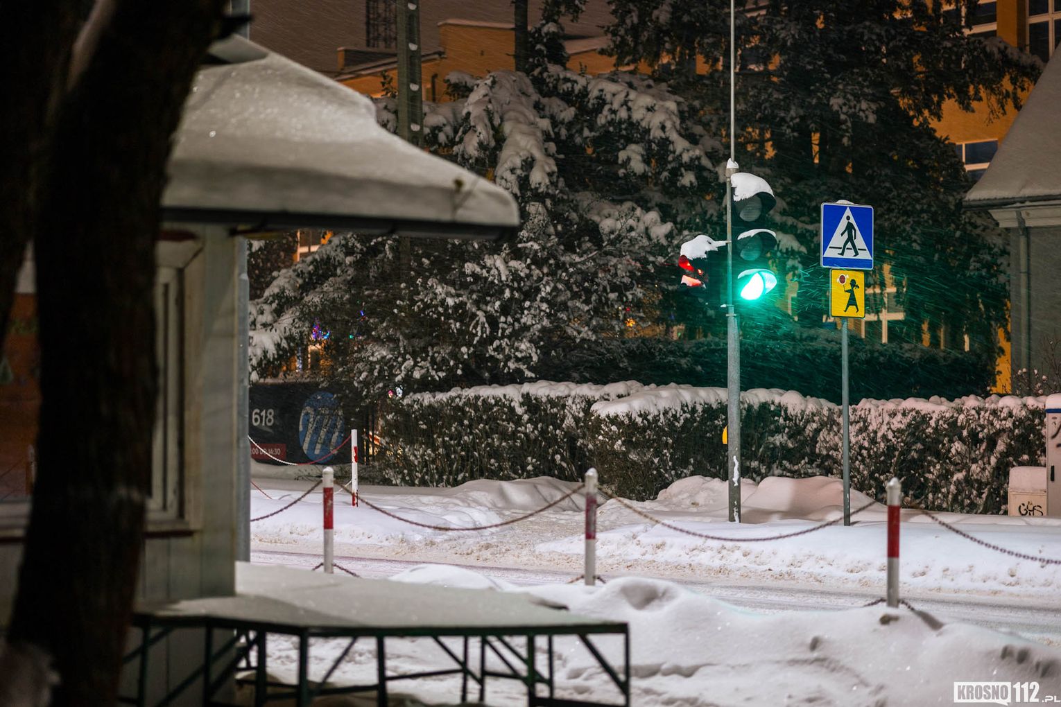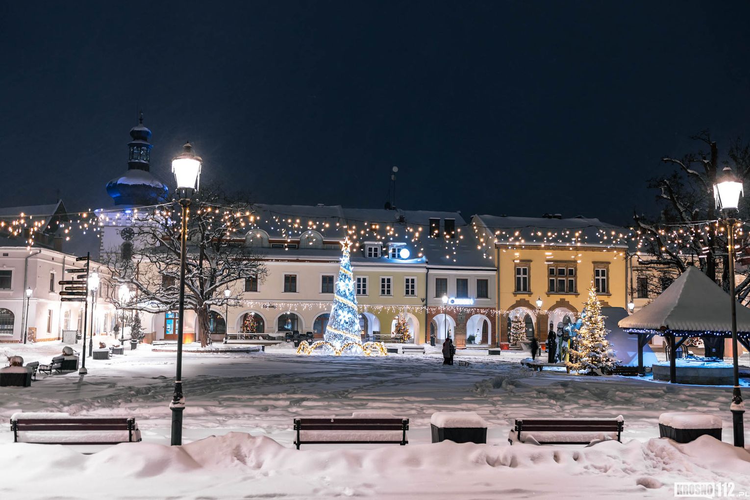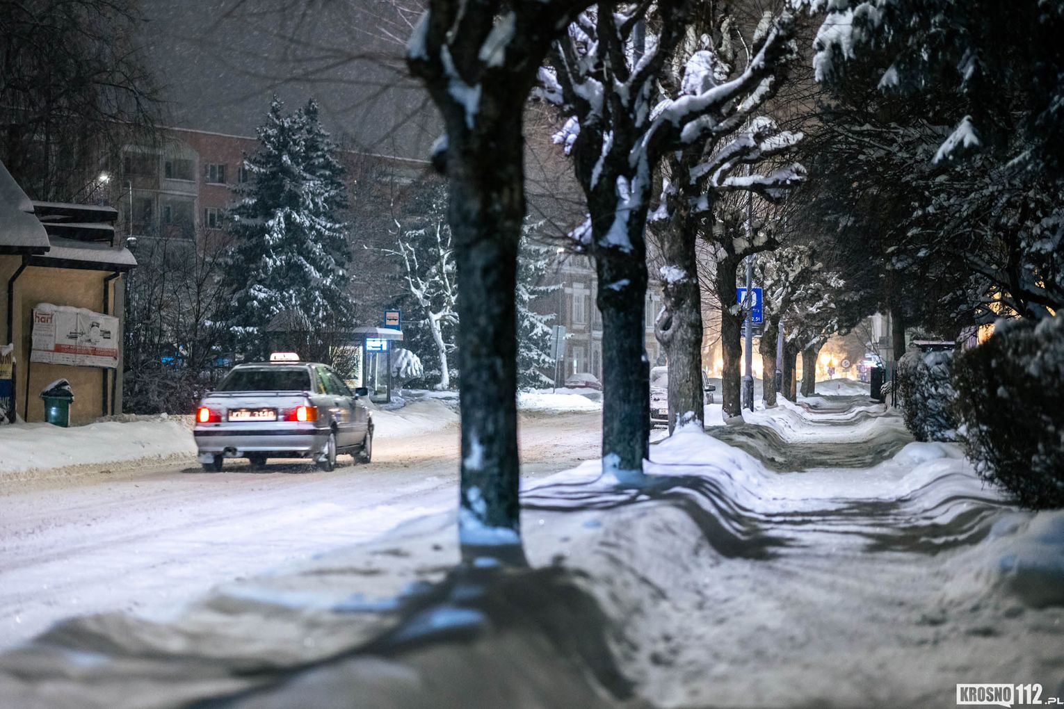 Fotografie pokazują Krosno z zupełnie innej perspektywy – ciche, spokojne ulice przykryte grubą warstwą śniegu, oszronione drzewa w parkach, rynek skąpany w zimowym półmroku oraz panoramy miasta widziane przez zimową mgłę. Kadry oddają zarówno surowość zimowej aury, jak i jej nieoczywiste piękno.