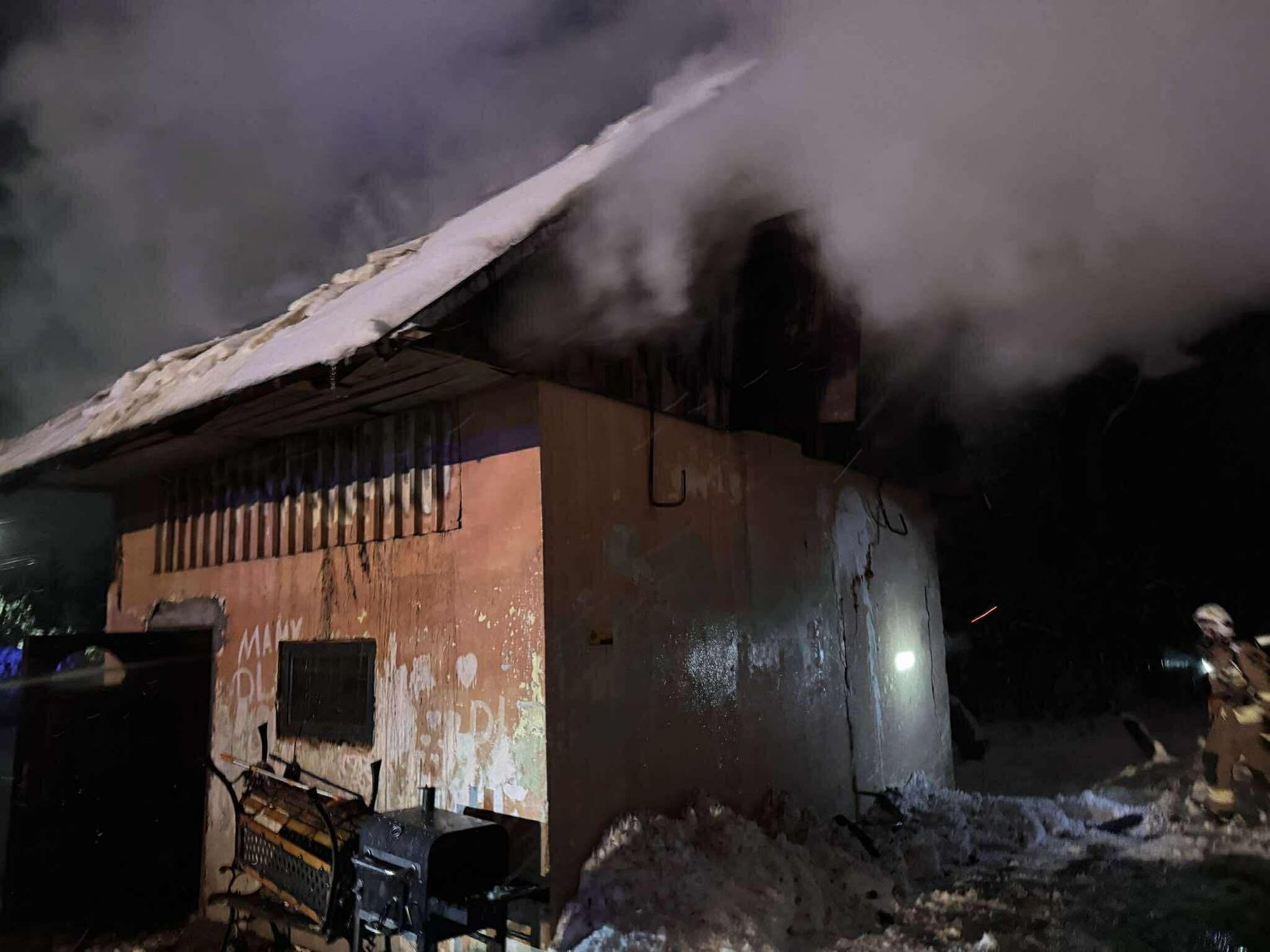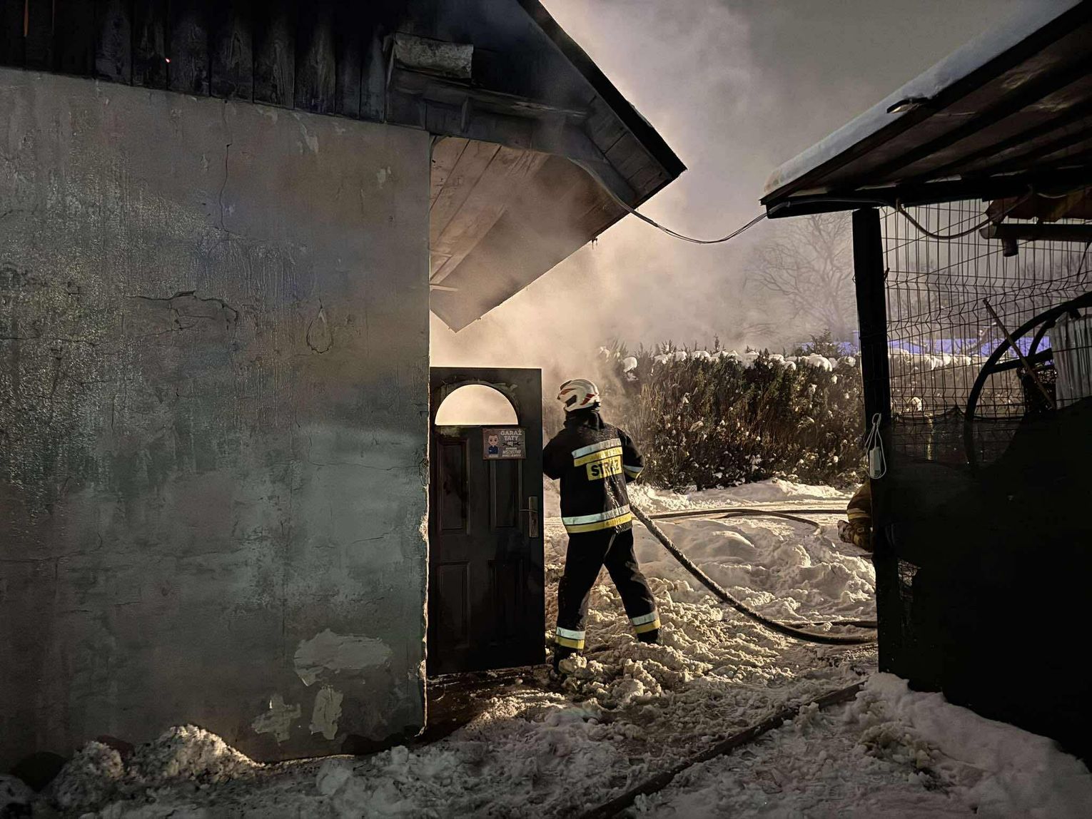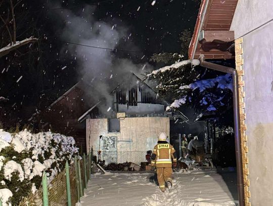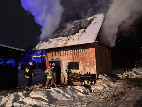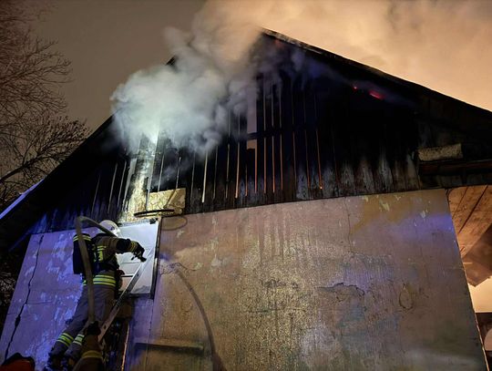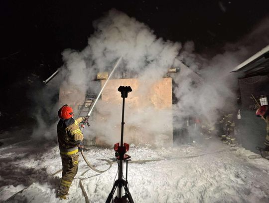 Pożarem objęty jest cały murowany budynek gospodarczy. Trwa akcja gaśnicza.
