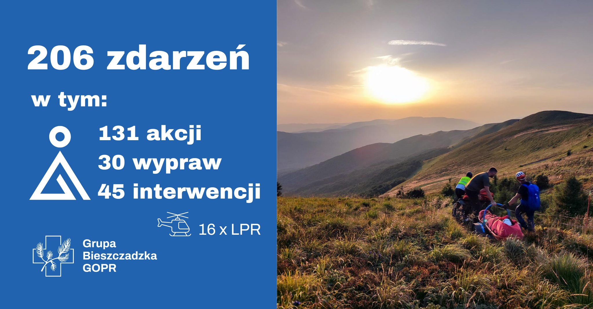 W ciągu ostatnich 12 miesięcy bieszczadzcy ratownicy interweniowali aż 206 razy. Były to zarówno krótkie, lokalne akcje, jak i wielogodzinne wyprawy ratunkowe prowadzone w wysokich partiach gór, w nocy lub przy niesprzyjającej aurze. W 16 przypadkach kluczową rolę odegrało Lotnicze Pogotowie Ratunkowe, którego śmigłowce umożliwiały szybki transport poszkodowanych i sprawne dotarcie do miejsc trudno dostępnych.
