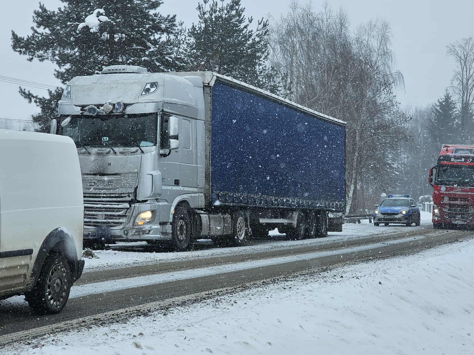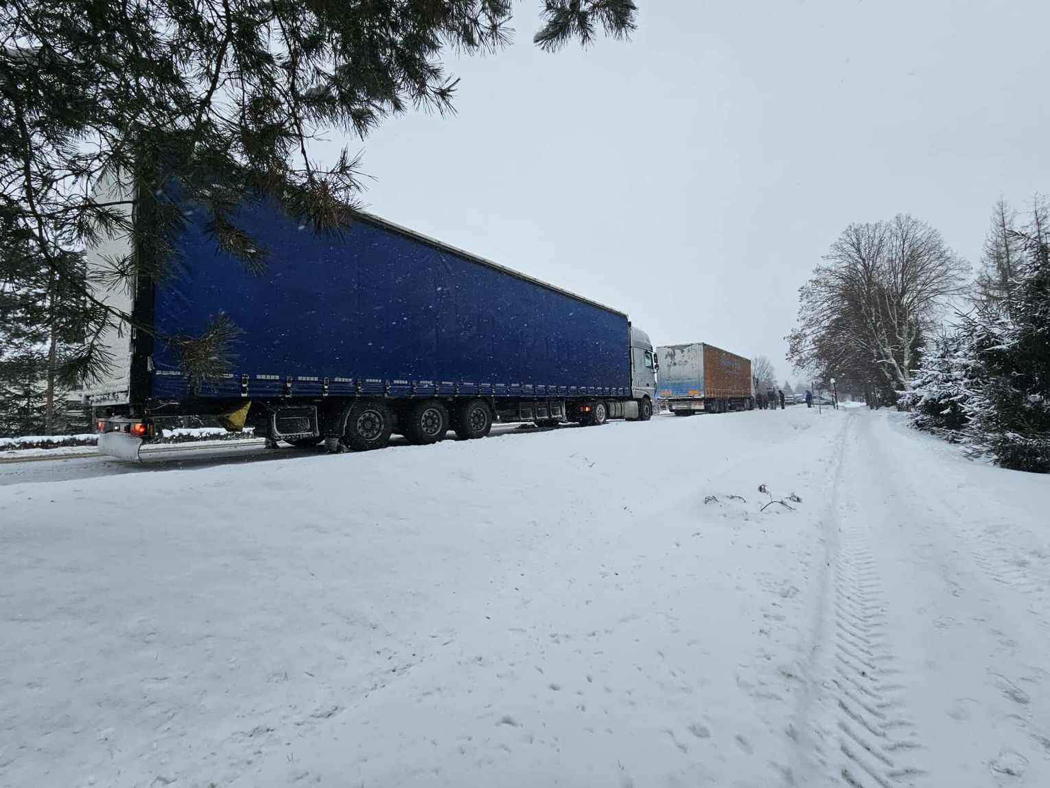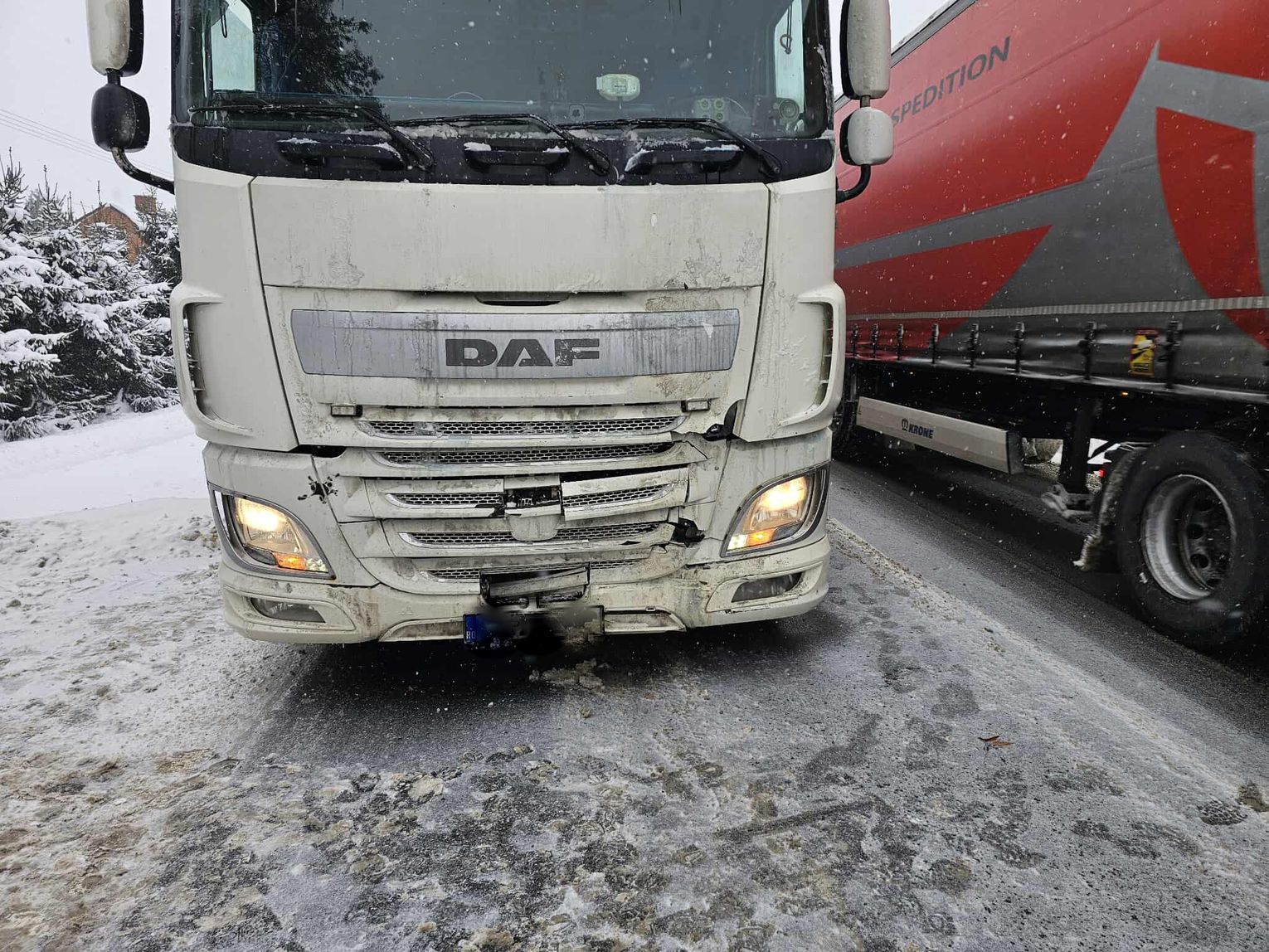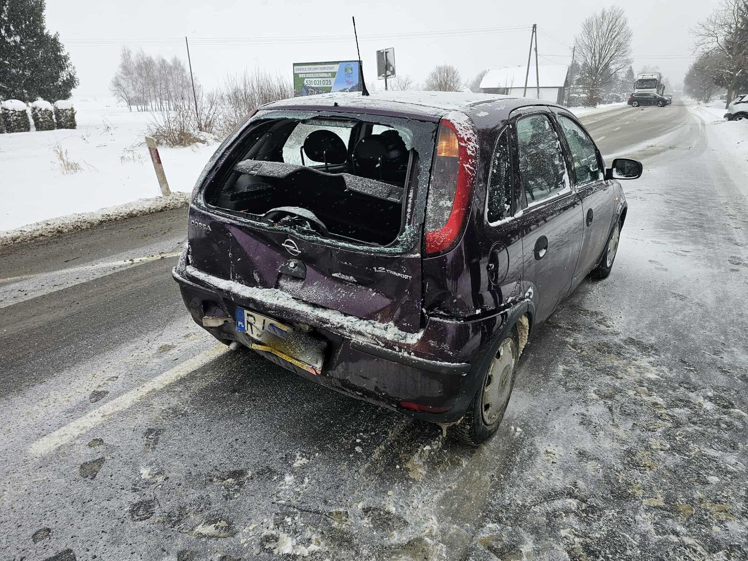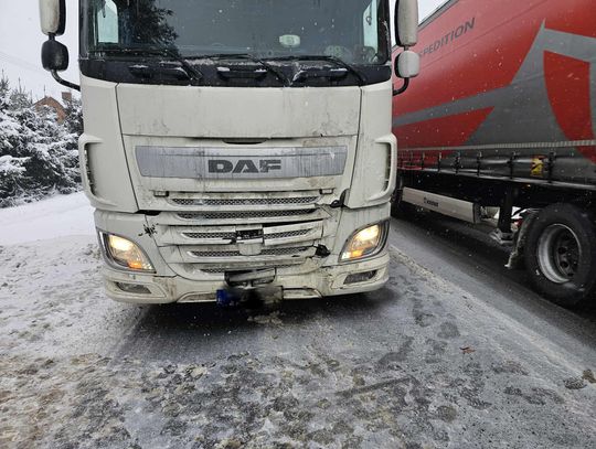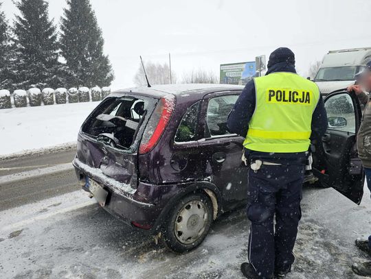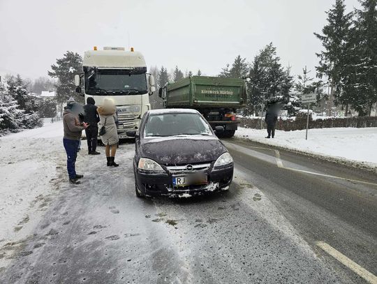 Kierująca Oplem skręcała na prywatną posesję, gdy na jej tył najechała ciężarówka. W zdarzeniu brała udział również inna ciężarówka.