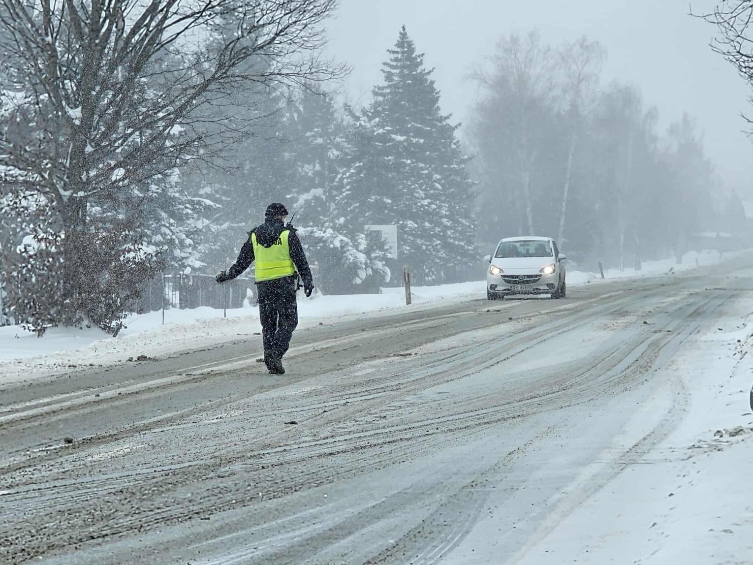 Lekko poszkodowana jest kobieta kierująca Oplem. Na odcinku DK28 ruch odbywa się wahadłowo.