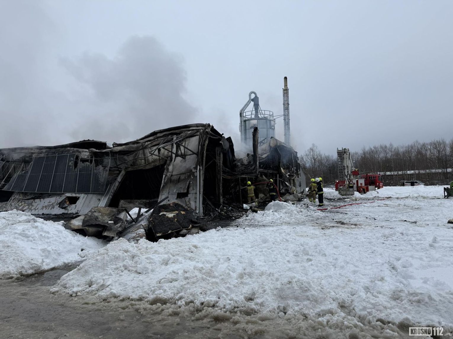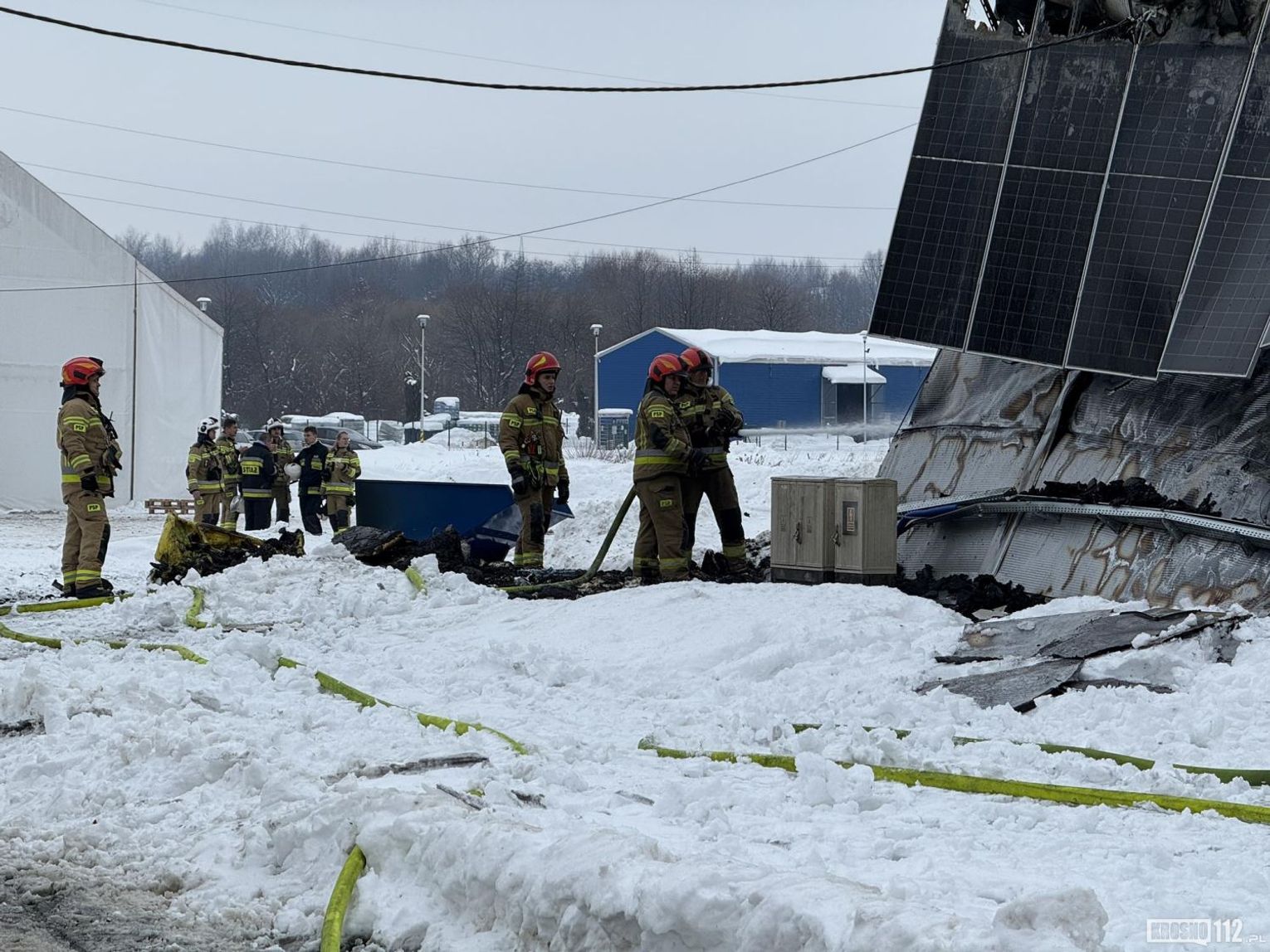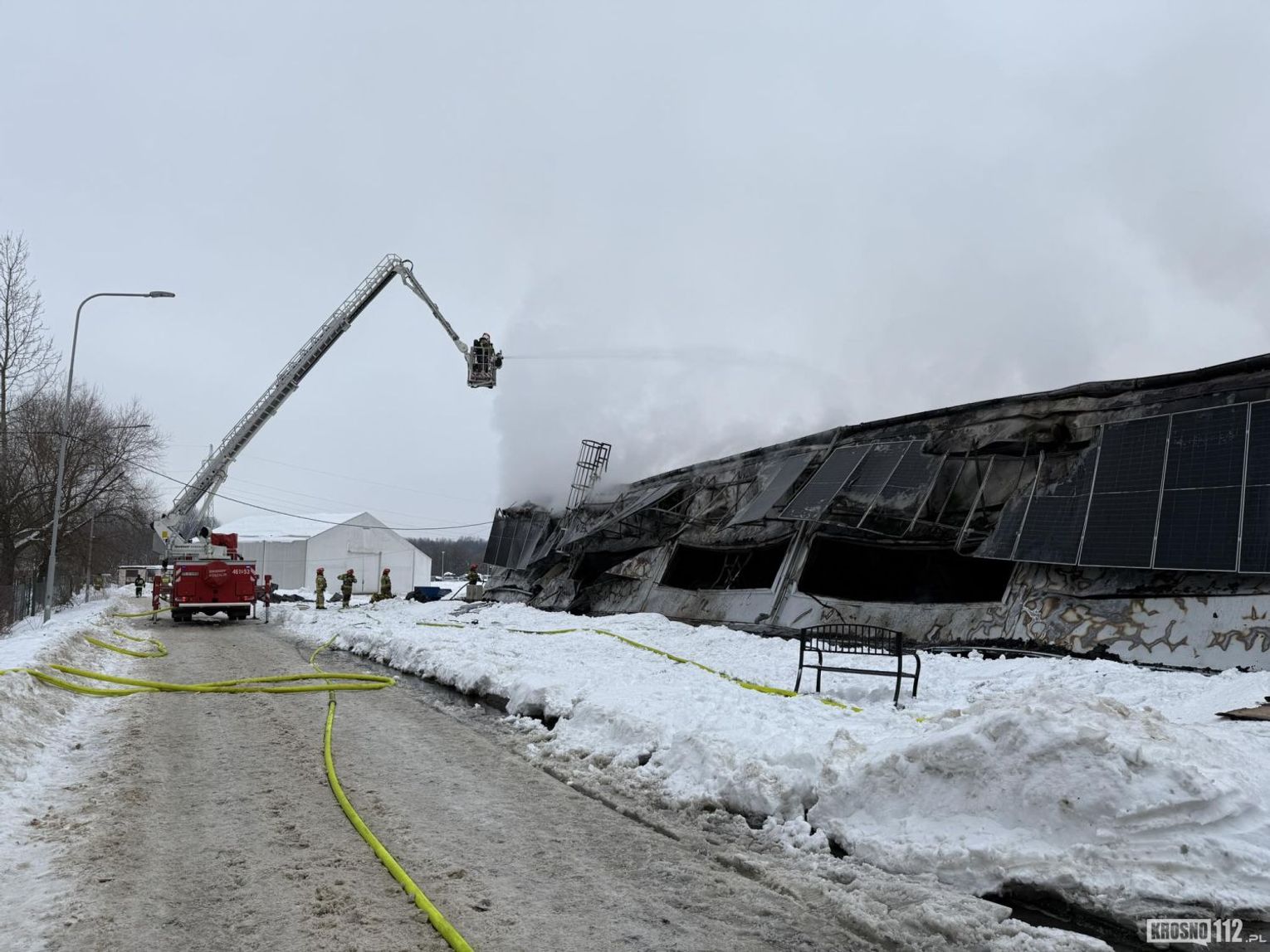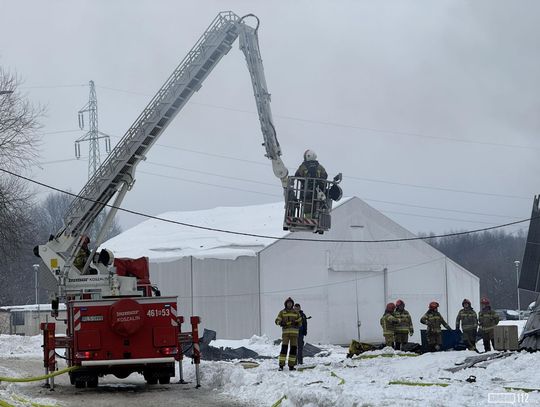 Już dziesięć minut później, po przybyciu pierwszych zastępów na miejsce, strażacy zastali obiekt o wymiarach około 40 na 25 metrów całkowicie objęty ogniem. Skala pożaru była bardzo duża – płomienie obejmowały całą konstrukcję hali, co stwarzało poważne zagrożenie zawaleniem.