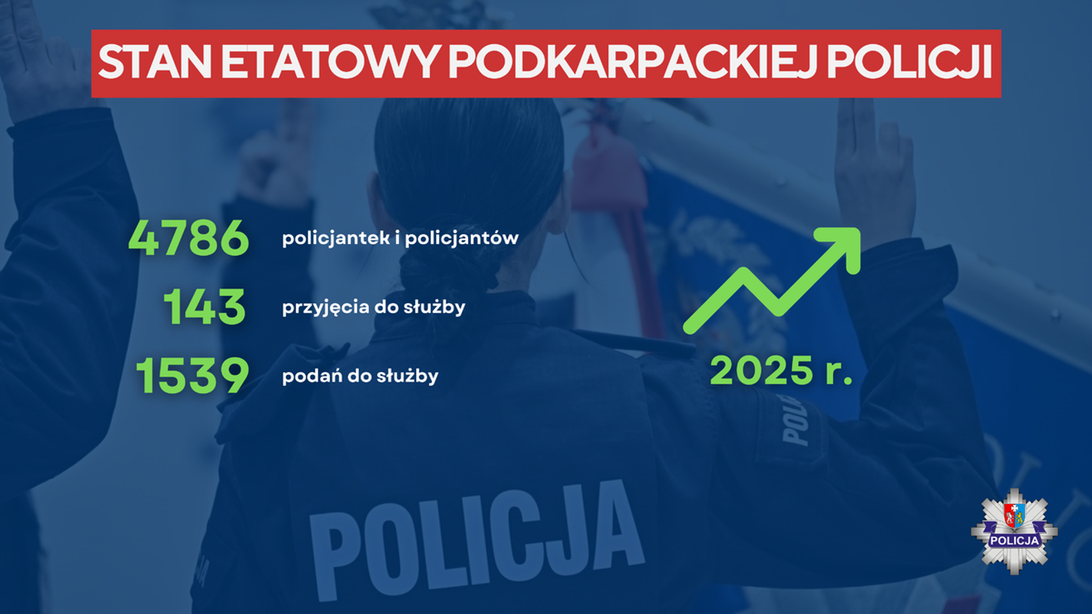 Obecnie w garnizonie podkarpackim służbę pełni 4786 funkcjonariuszy, w tym 862 kobiety. Każde nowe przyjęcie wzmacnia potencjał kadrowy jednostek i całej formacji, co przekłada się na skuteczniejszą realizację ustawowych zadań Policji.