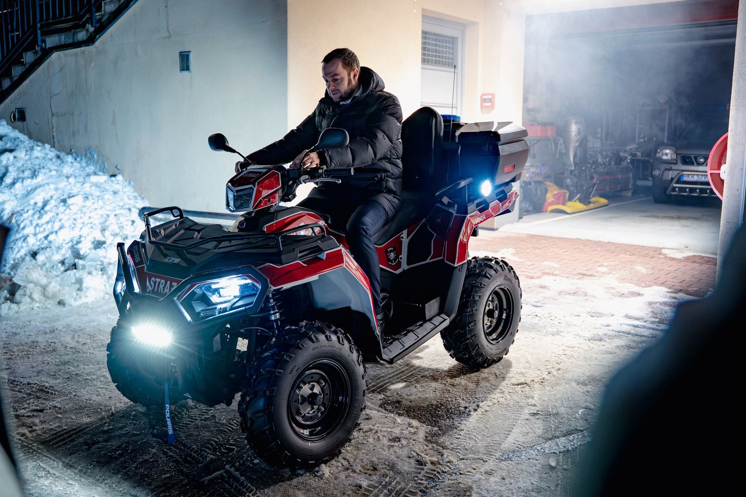 Zakupiony quad wyposażony jest w szereg rozwiązań ułatwiających prowadzenie działań ratowniczych: