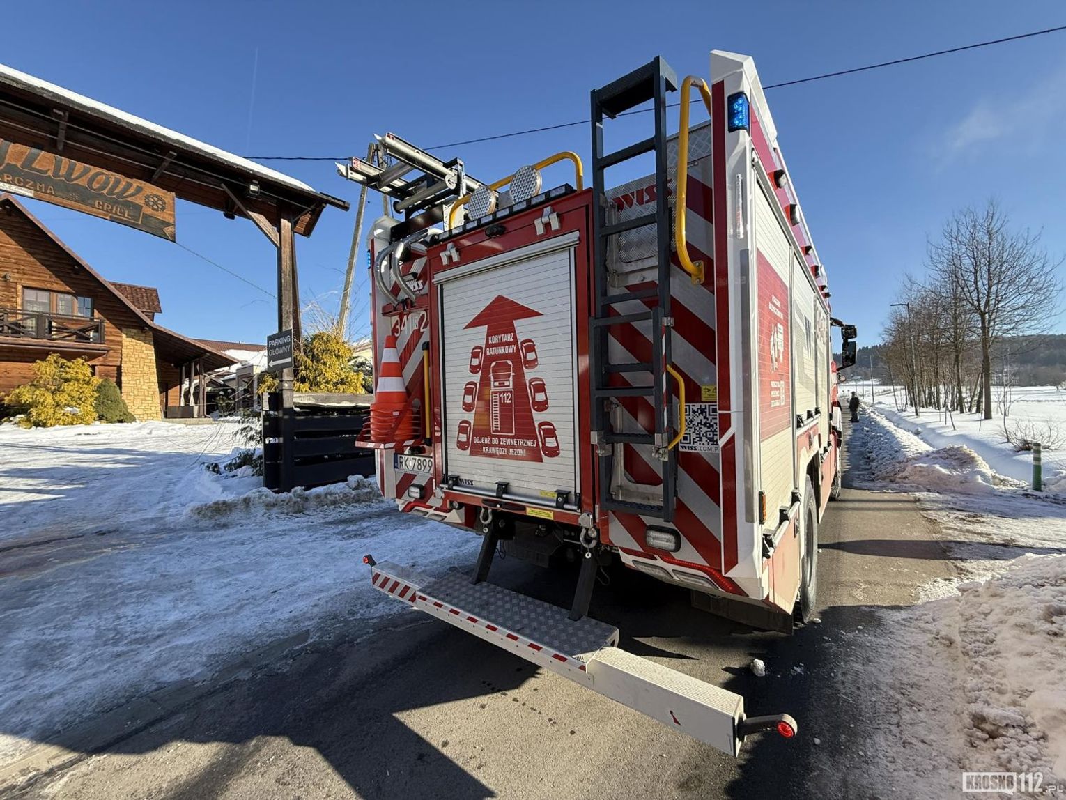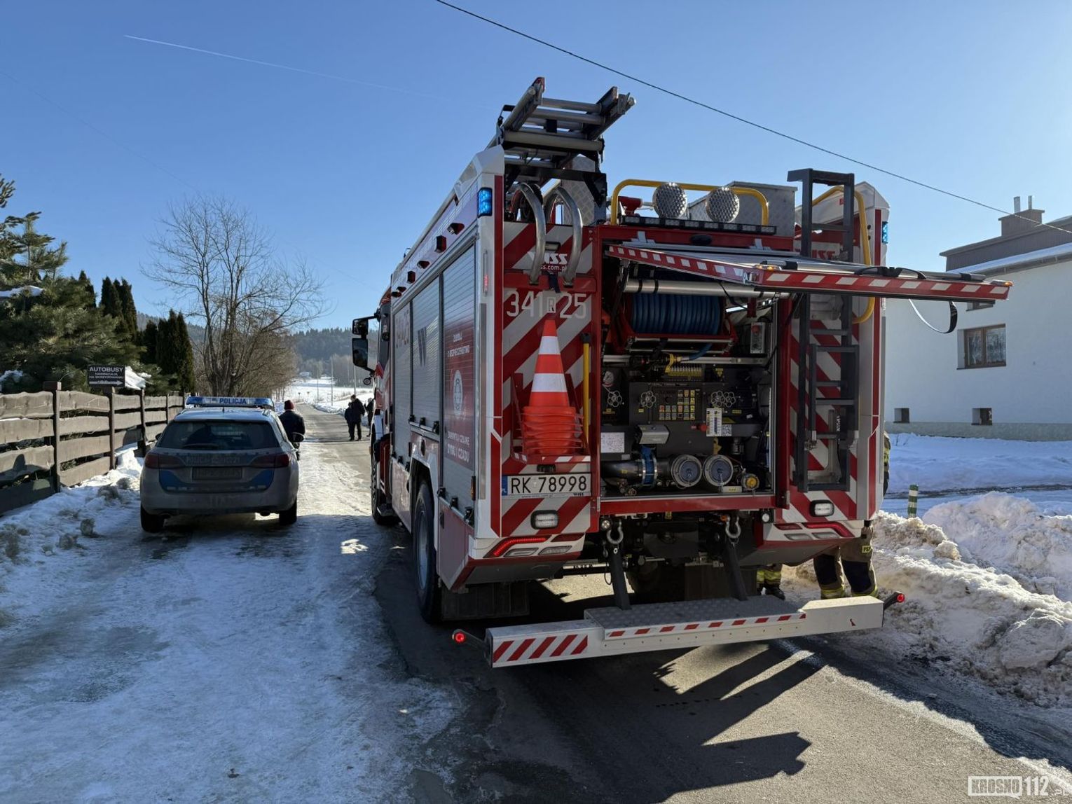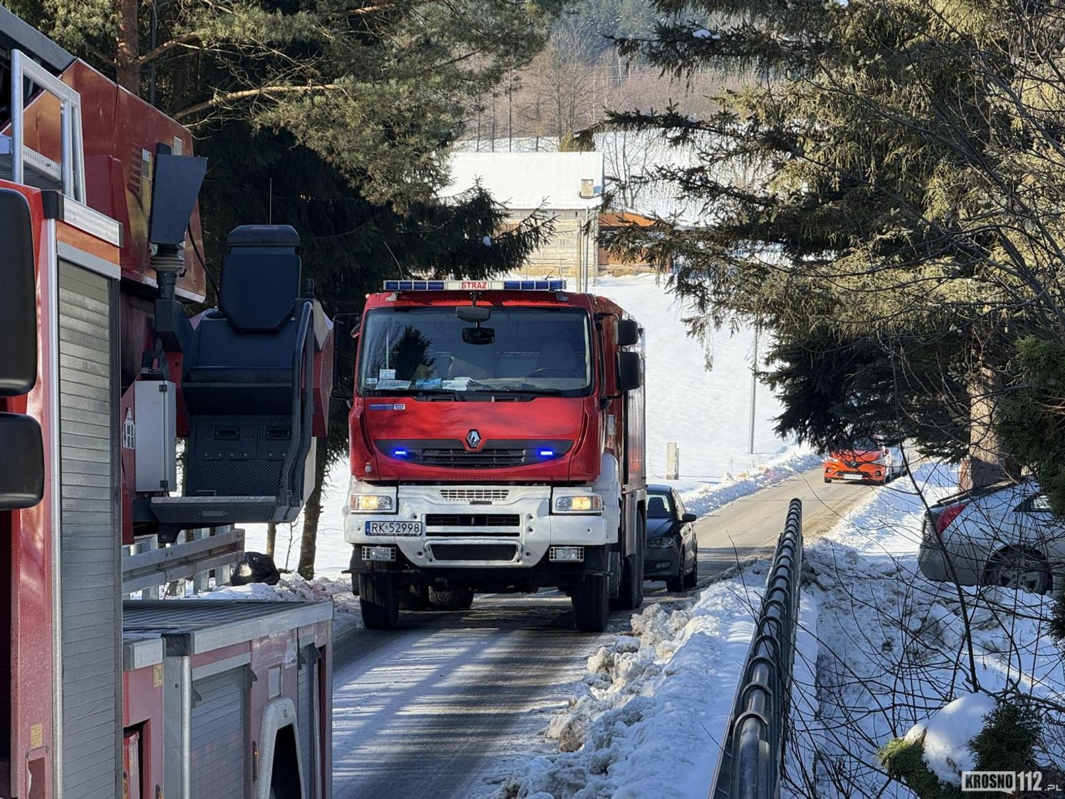 Na miejsce natychmiast zadysponowano pluton gaśniczy z JRG w Krośnie w sile (GCBARt Scania, GCBA Renault, SD39 MAN) oraz zastępy OSP z Korczyny, Krasnej i Węglówki.