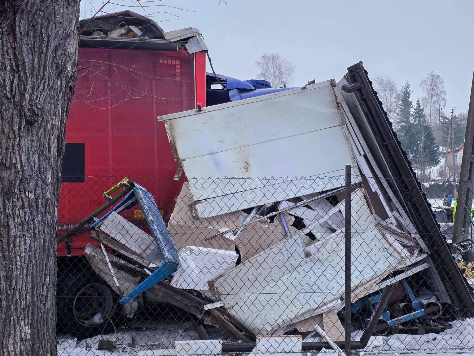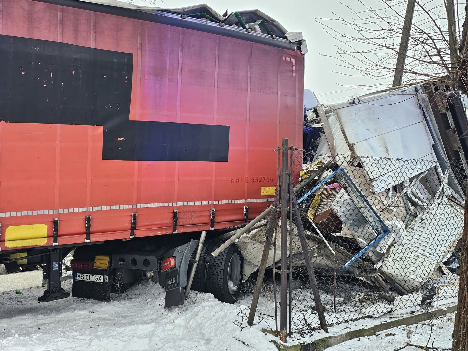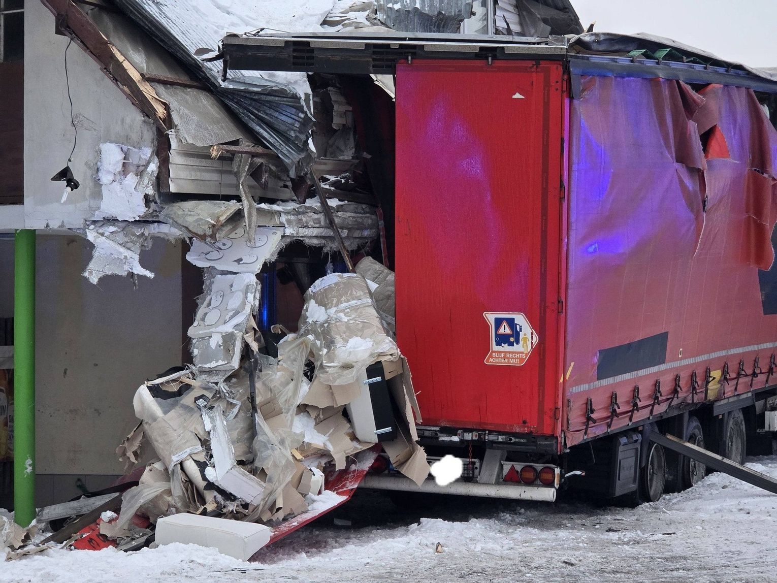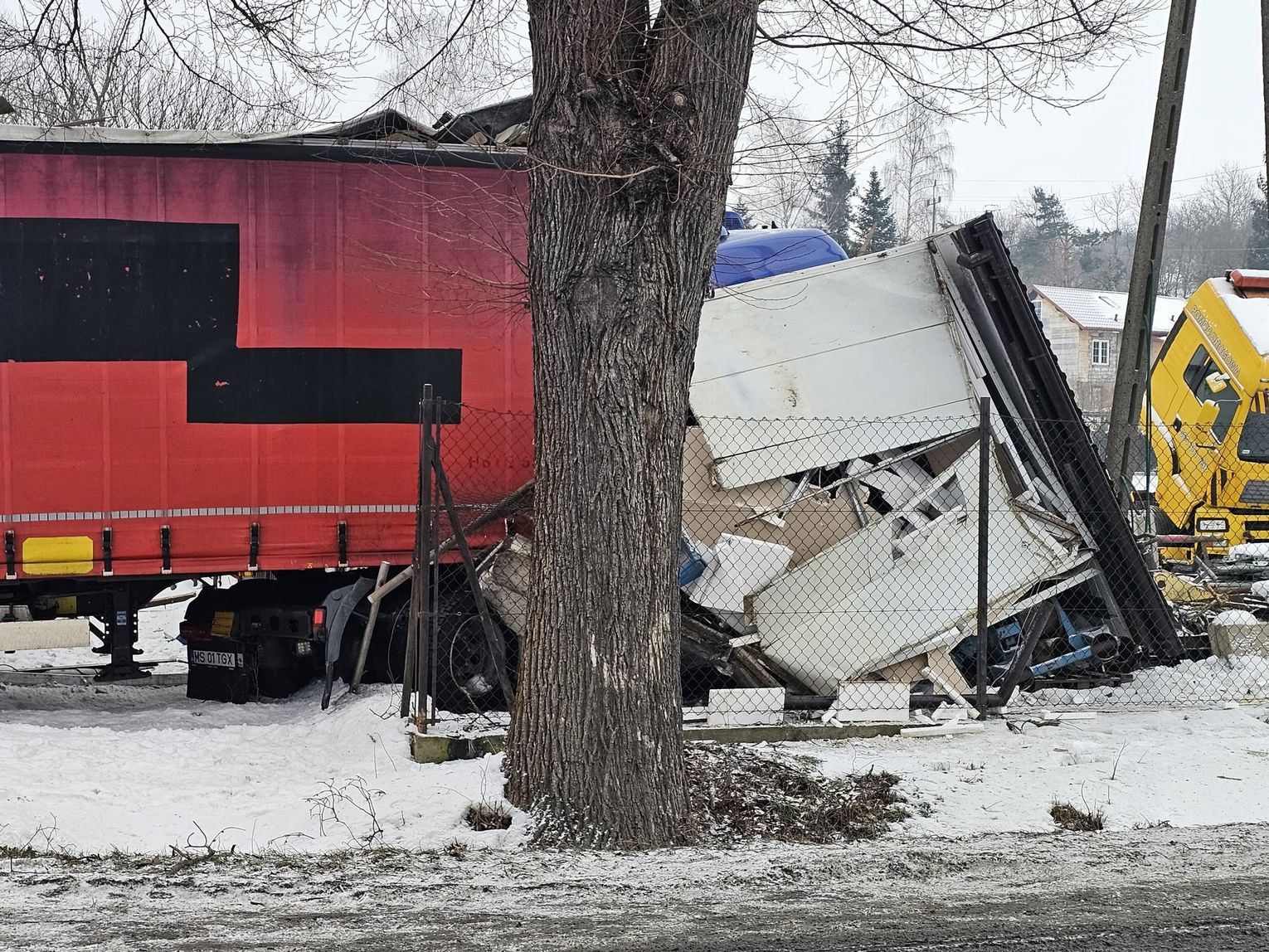 - Około godziny 7 na drodze krajowej nr 73 (ul. 17-stycznia w Jaśle) doszło do zderzenia trzech pojazdów. Z dotychczasowych ustaleń wynika, że kierujący ciężarowym Manem, obywatel Rumunii poruszając się w kierunku centrum Jasła, wyprzedzał na skrzyżowaniu inny pojazd ciężarowy marki Volvo, kierowanym przez obywatela Bułgarii. Podczas wykonywania tego manewru uderzył w stojącego na drodze podporządkowanej Opla, którym kierowała 61-latka, która oczekiwała na włączenie się do ruchu. Siła uderzenia była tak duża, że kierujący Manem stracił panowanie nad pojazdem, który ostatecznie wbił się w budynek sklepu. Na szczęście w środku nikogo nie było. Kierująca oplem została przewieziona do szpitala, natomiast kierujący Manem doznał tylko powierzchownych obrażeń i po przebadaniu przez medyków, pozostał na miejscu zdarzenia. Wszyscy uczestnicy byli trzeźwi. Policjanci prowadzą czynności wyjaśniające okoliczności zdarzenia, w związku z tym utrudnienia mogą potrwać do około godziny 10:30 - mówi podkom. Daniel Lelko z KPP w Jaśle.