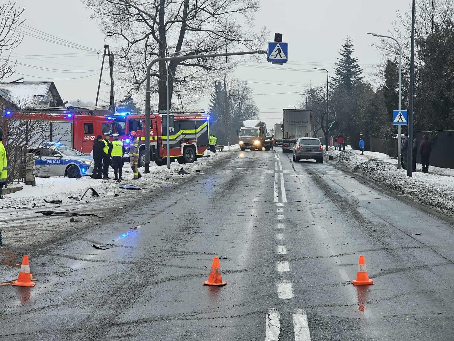 Droga krajowa nr 73 jest całkowicie zablokowana. Na ten moment nie ma informacji, jak długo potrwają utrudnienia. Służby apelują do kierowców o omijanie tego odcinka i korzystanie z wyznaczonych objazdów.