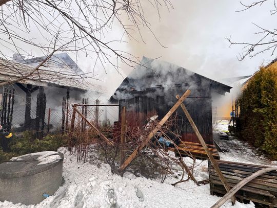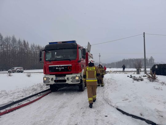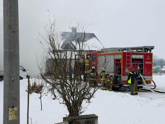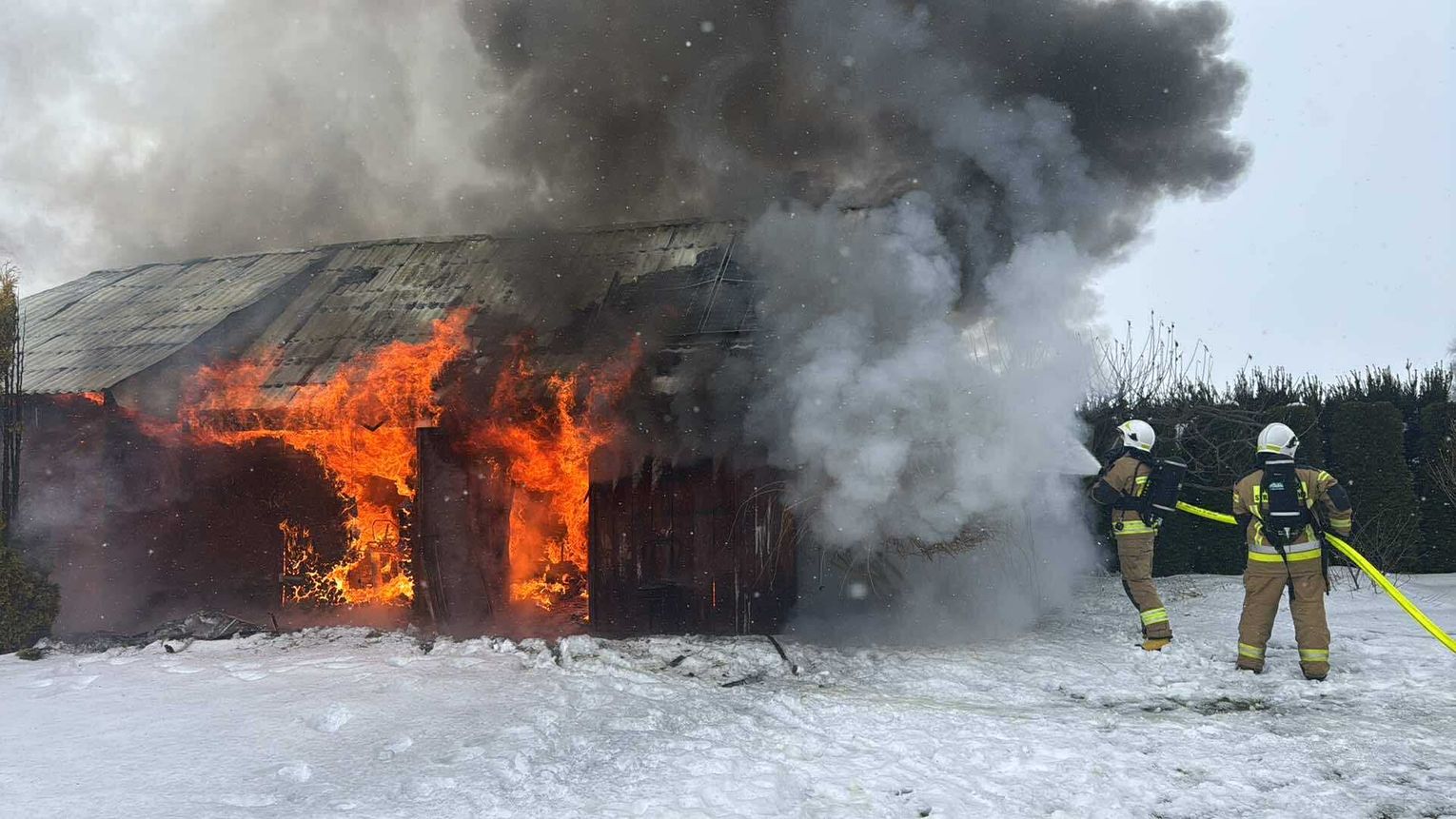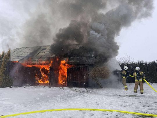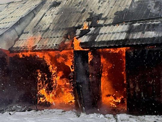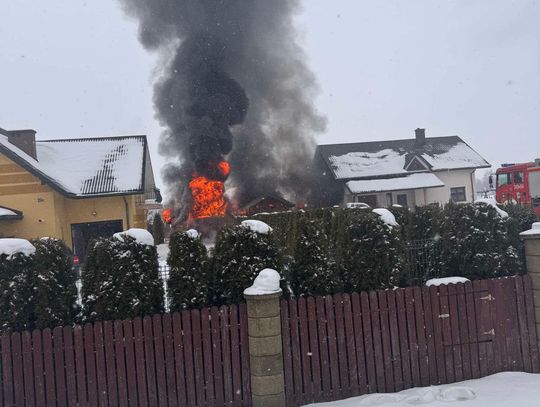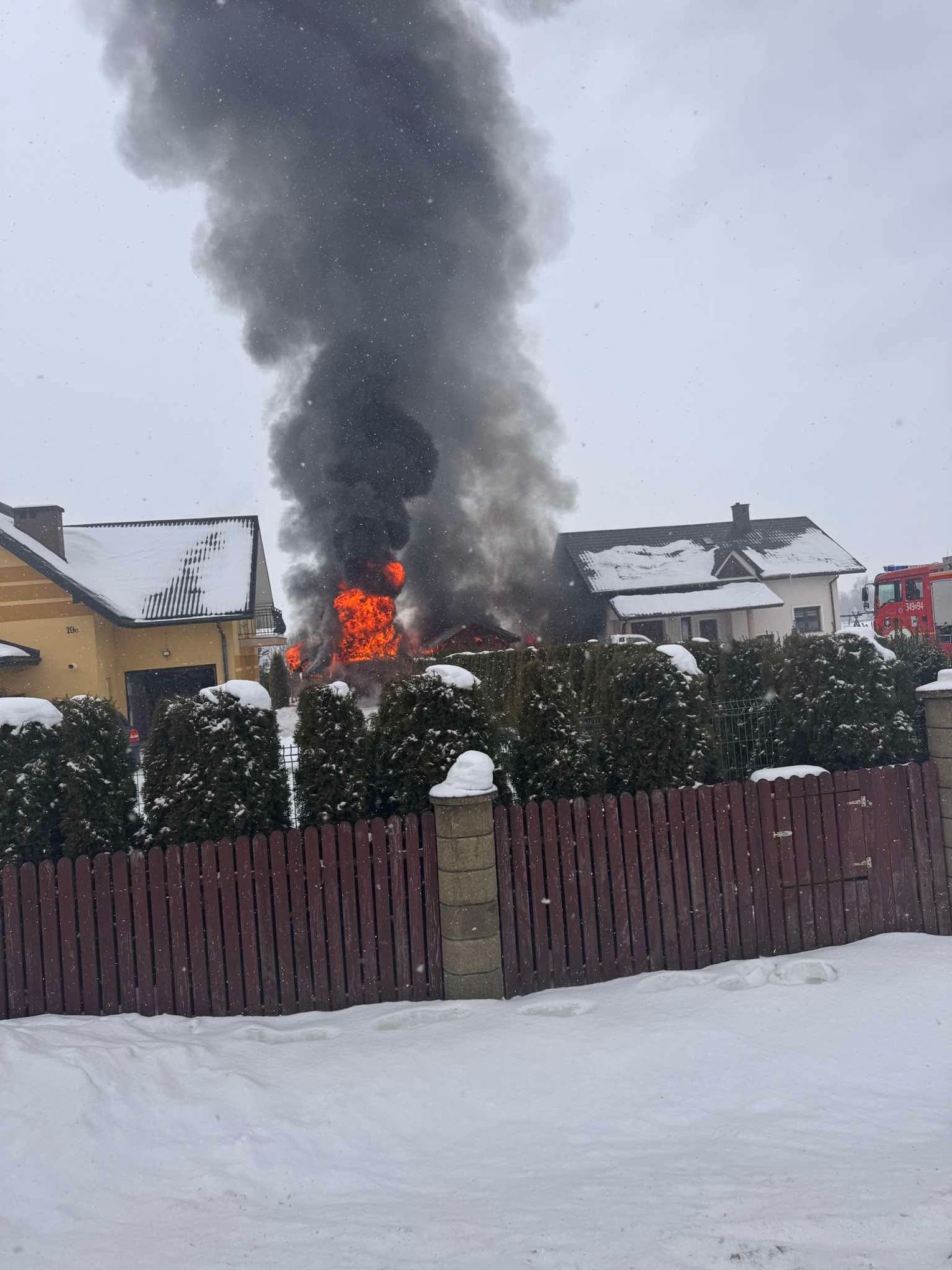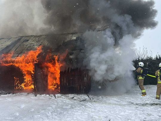 AKTUALIZACJA: Pożarem objęte zostały dwa budynki gospodarcze. Nadpalony został również budynek mieszkalny, doszczętnie spłonął samochód osobowy. Sytuacja jest opanowana, pożar został zlokalizowany. Trwa dogaszanie. Nikt nie odnosił obrażeń.