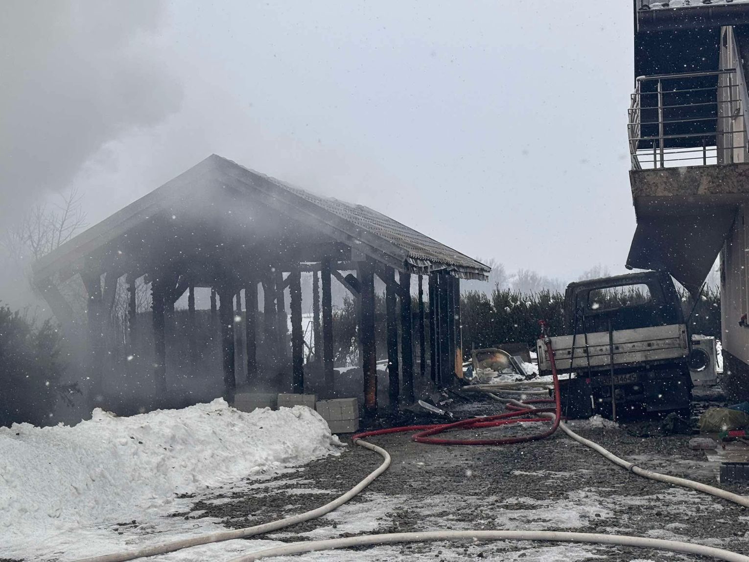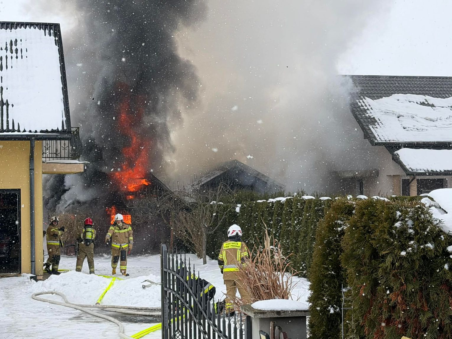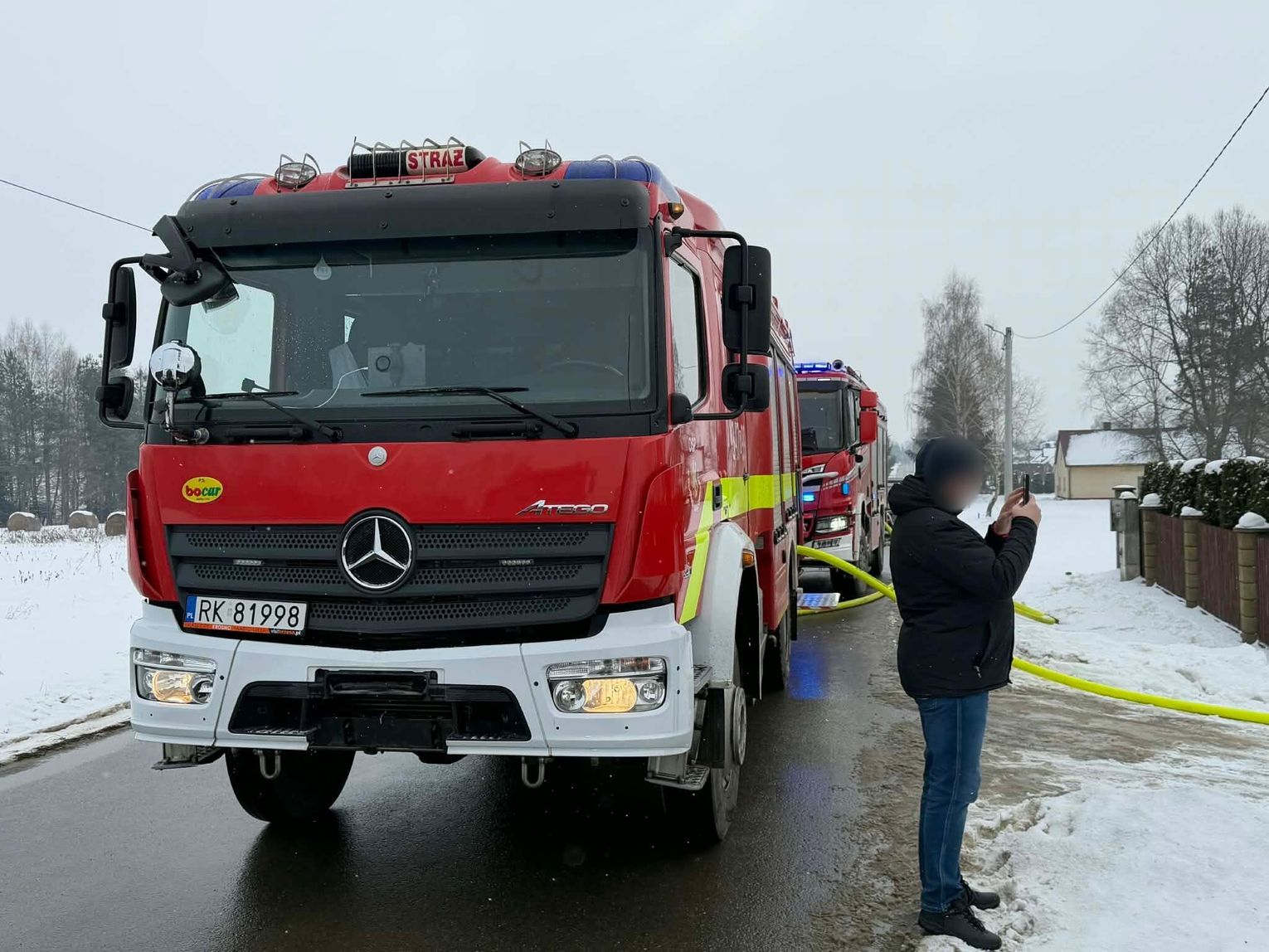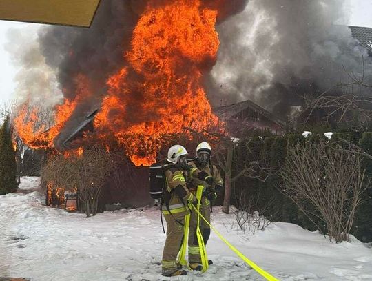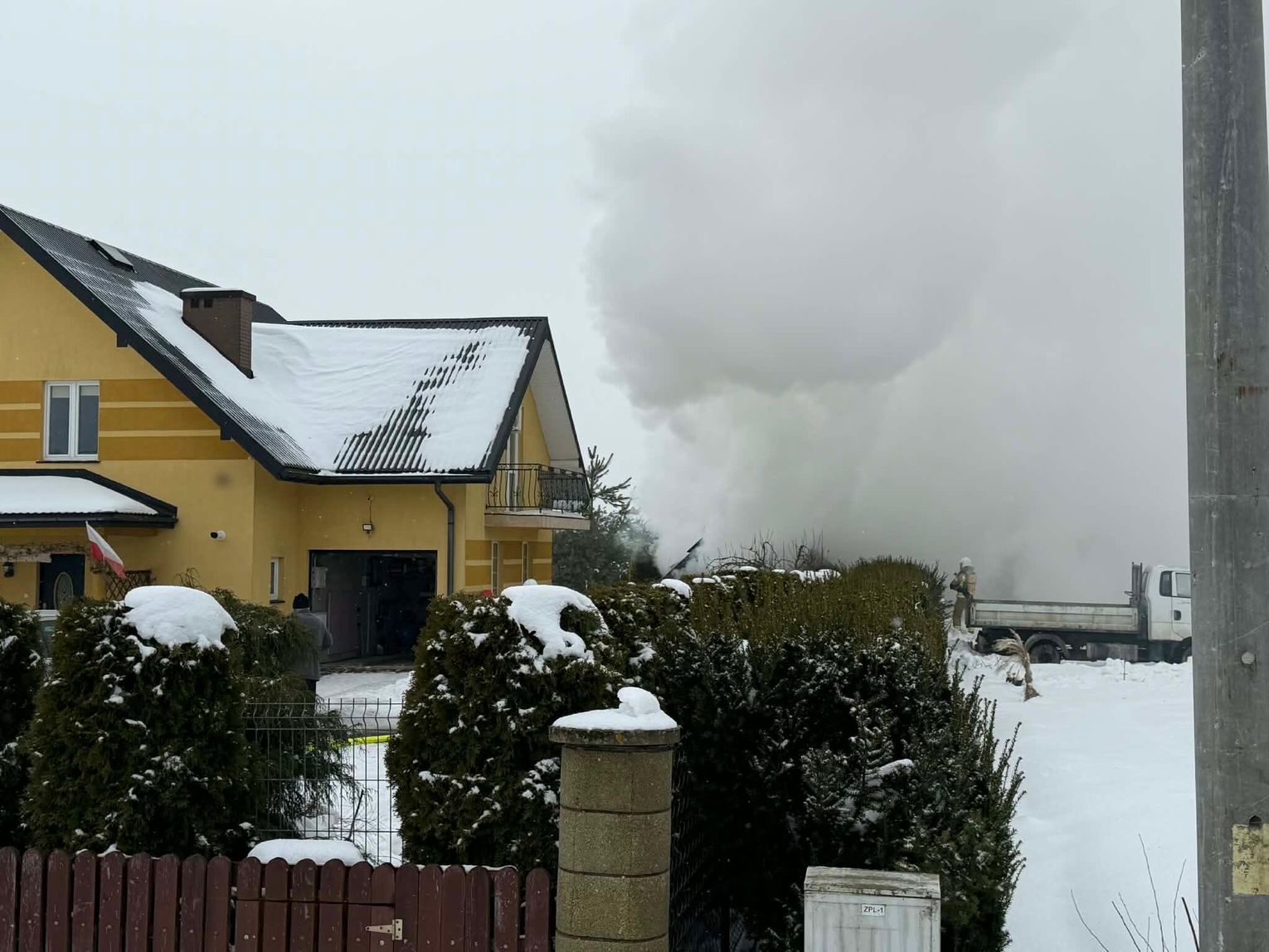 AKTUALIZACJA: Pożarem objęte zostały dwa budynki gospodarcze. Nadpalony został również budynek mieszkalny, doszczętnie spłonął samochód osobowy. Sytuacja jest opanowana, pożar został zlokalizowany. Trwa dogaszanie. Nikt nie odnosił obrażeń.