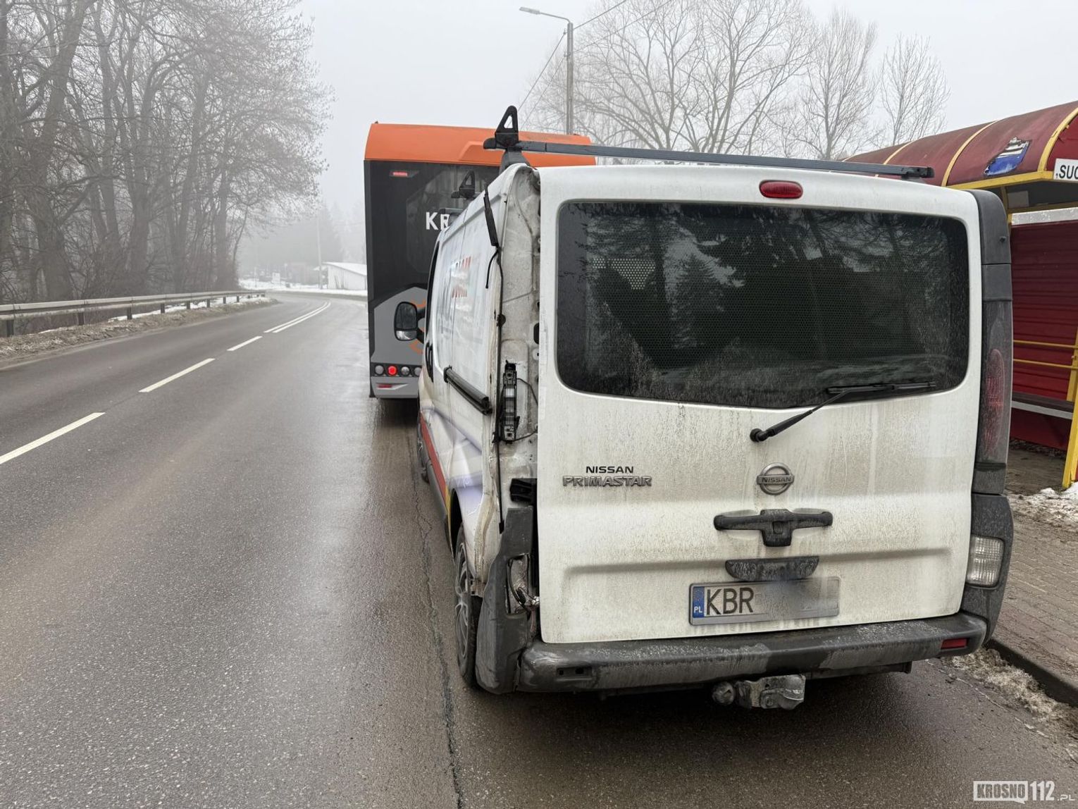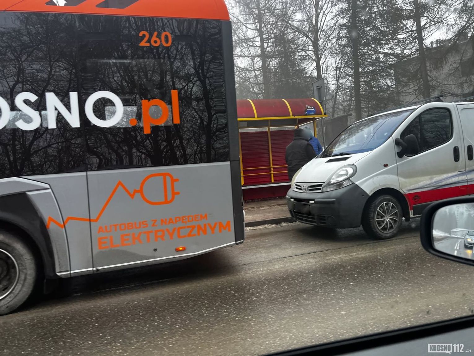 Pojazdy zaparkowały na zatoczce autobusowej - nie ma już utrudnień. Policjanci wyjaśniają okoliczności zdarzenia - wstępnie wiadomo, że sprawcą jest kierowca Nissana.