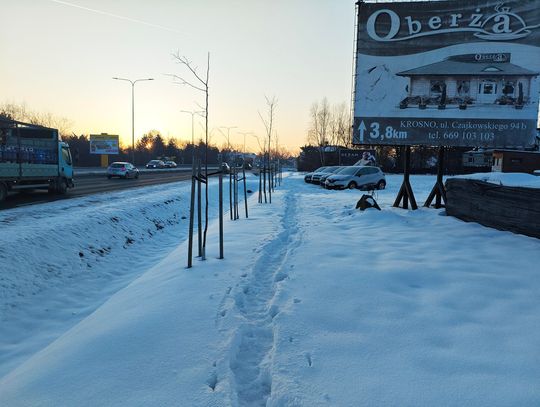- Tam, gdzie latem pieszy brodził w trawie, zimą musi brodzić w głębokim śniegu. Ten fragment nie jest odśnieżany w ogóle. Efekt? Ludzie brną w śniegu, śnieg wsypuje się do butów, przemacza nogawki. Nie mówimy o bocznej uliczce czy zapomnianej ścieżce gruntowej, ale o sąsiedztwie jednej z najbardziej obciążonych ruchem dróg w Krośnie - dodaje - Nikt o zdrowych zmysłach nie odważy się wyjść na jezdnię – to dwupasmowa arteria, gdzie auta jeżdżą z dużą prędkością, a margines błędu dla pieszego wynosi zero. To nie jest kwestia „trudnych warunków pogodowych” – to kwestia systemowego zaniedbania.