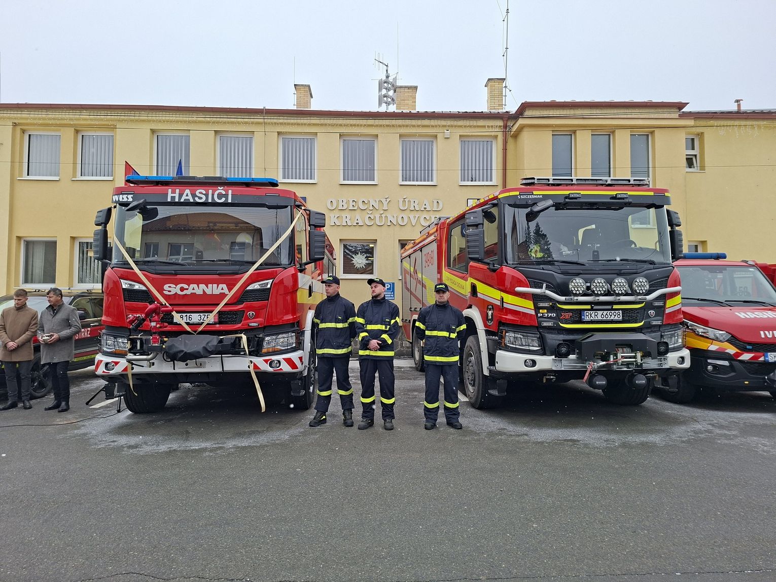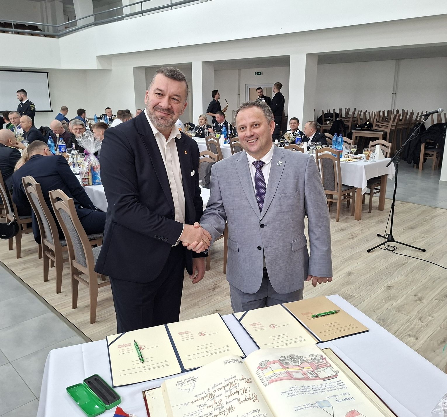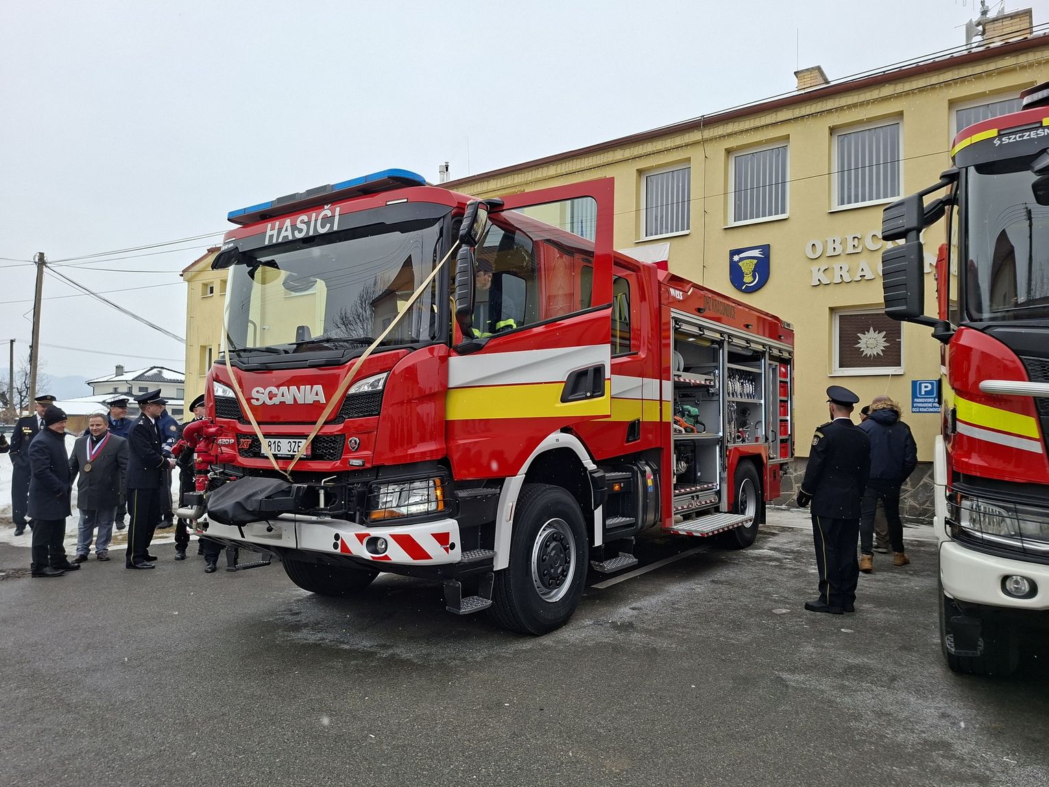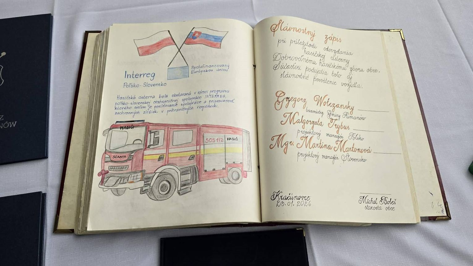 Istotnym punktem wizyty było poświęcenie i oficjalne przekazanie nowego ciężkiego samochodu ratowniczo-gaśniczego dla strażaków z Kracunoviec, zakupionego w ramach projektu. Symbolicznego przecięcia wstęgi dokonali Michał Boleš – Starosta Kracunoviec oraz Grzegorz Wołczański – Burmistrz Gminy Rymanów.