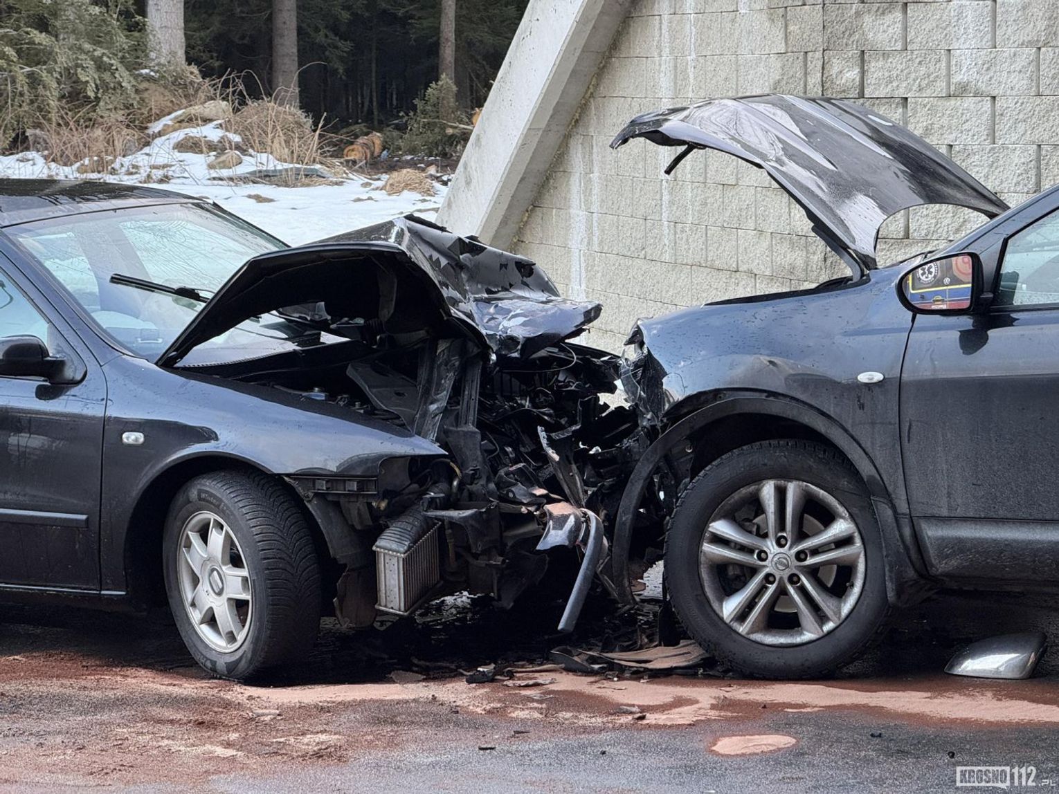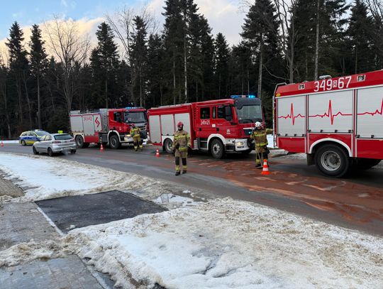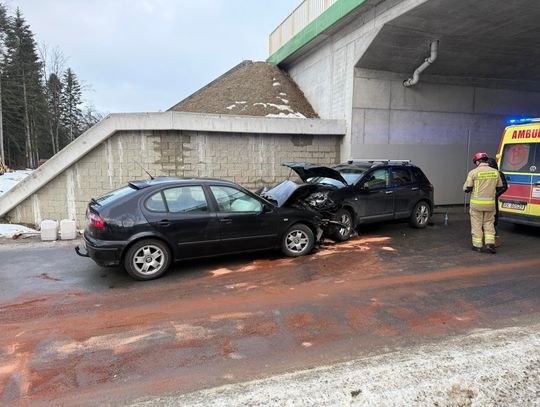 Policjanci wyjaśniają okoliczności czołowego zderzenia pojazdów.