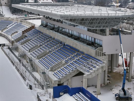 Równolegle wymieniono krzesełka na przeciwległej prostej – dzięki temu cały obiekt zyskuje spójny, nowoczesny wygląd. Trwają jeszcze prace wykończeniowe przy ogrodzeniu wokół stadionu – to jeden z ostatnich elementów, który ma domknąć całość inwestycji.