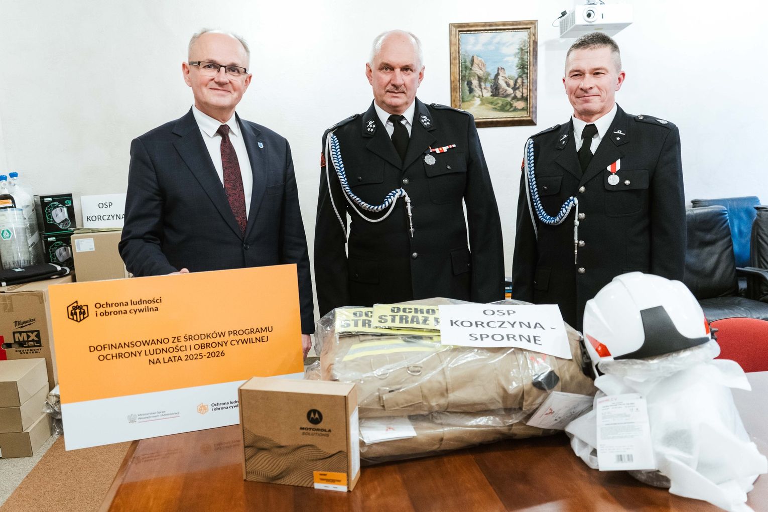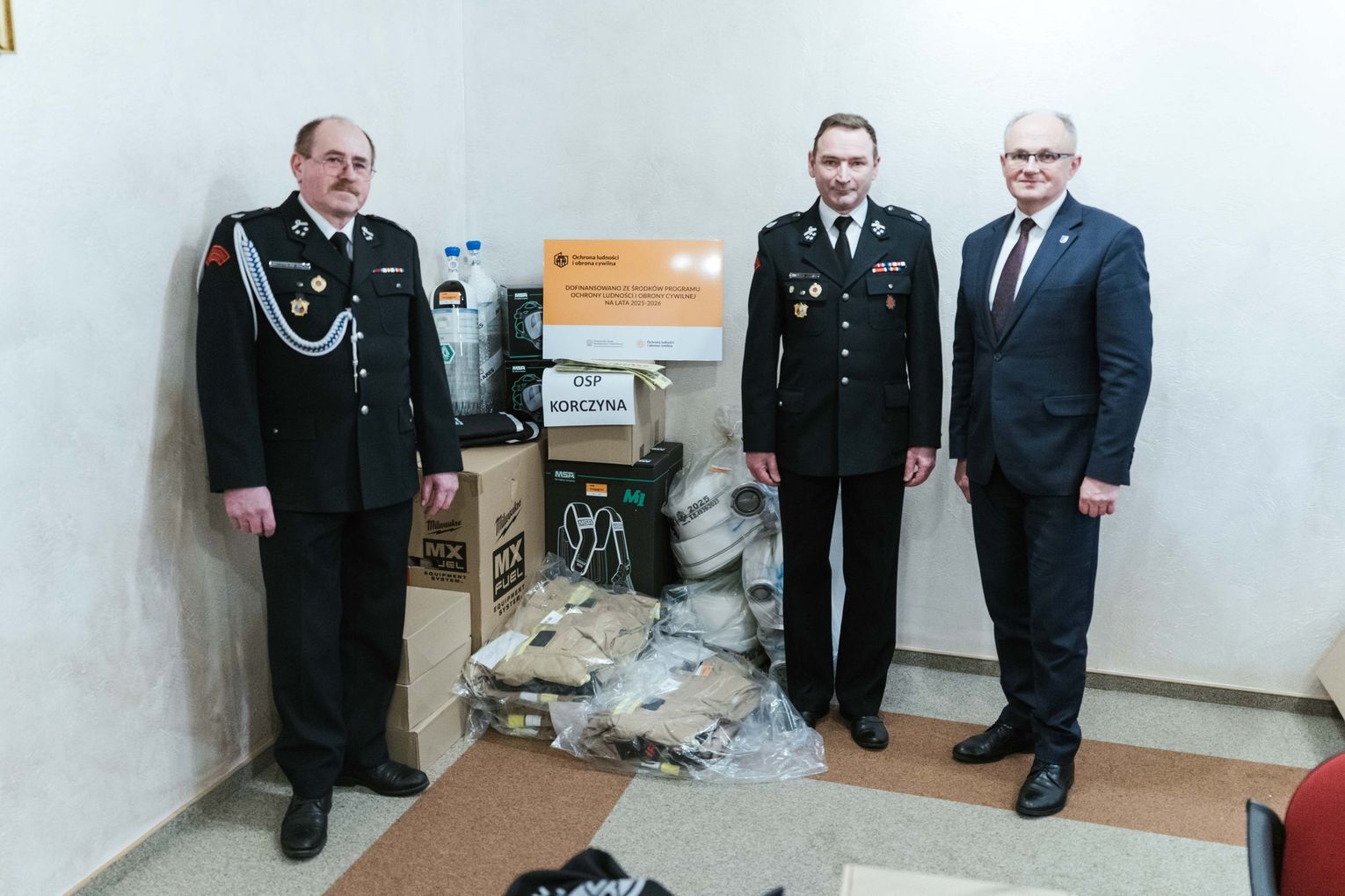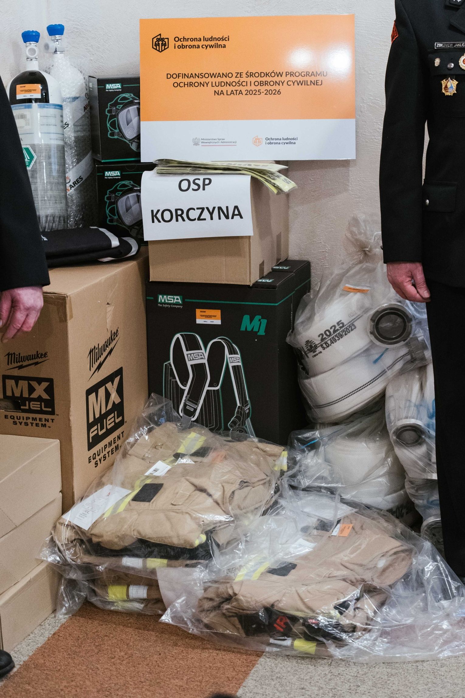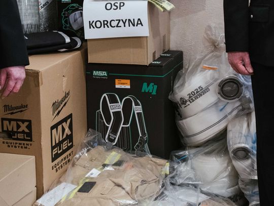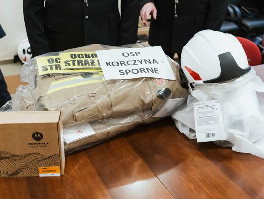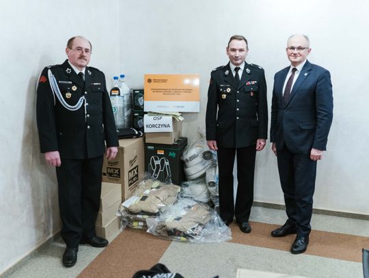 - OSP Korczyna otrzymała m.in. aparaty ochrony dróg oddechowych, mobilny maszt oświetleniowy, ubrania i obuwie ochronne, radiotelefony samochodowe oraz węże tłoczne.