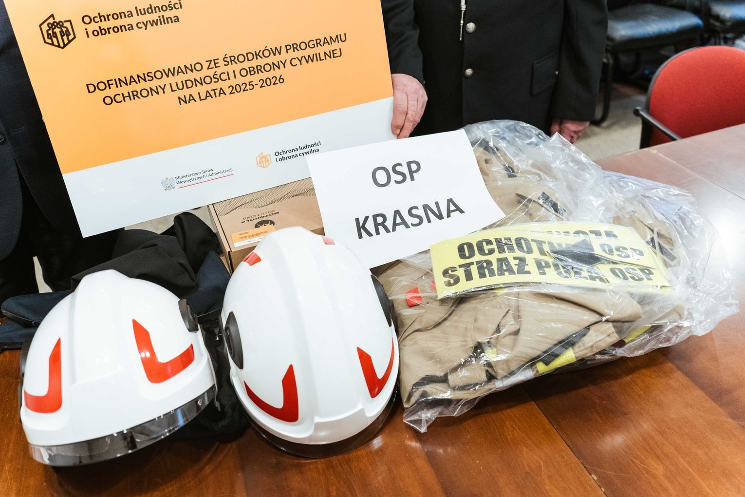 - OSP Krasna otrzymała lekkie ubrania ochronne, hełmy strażackie oraz radiotelefon.