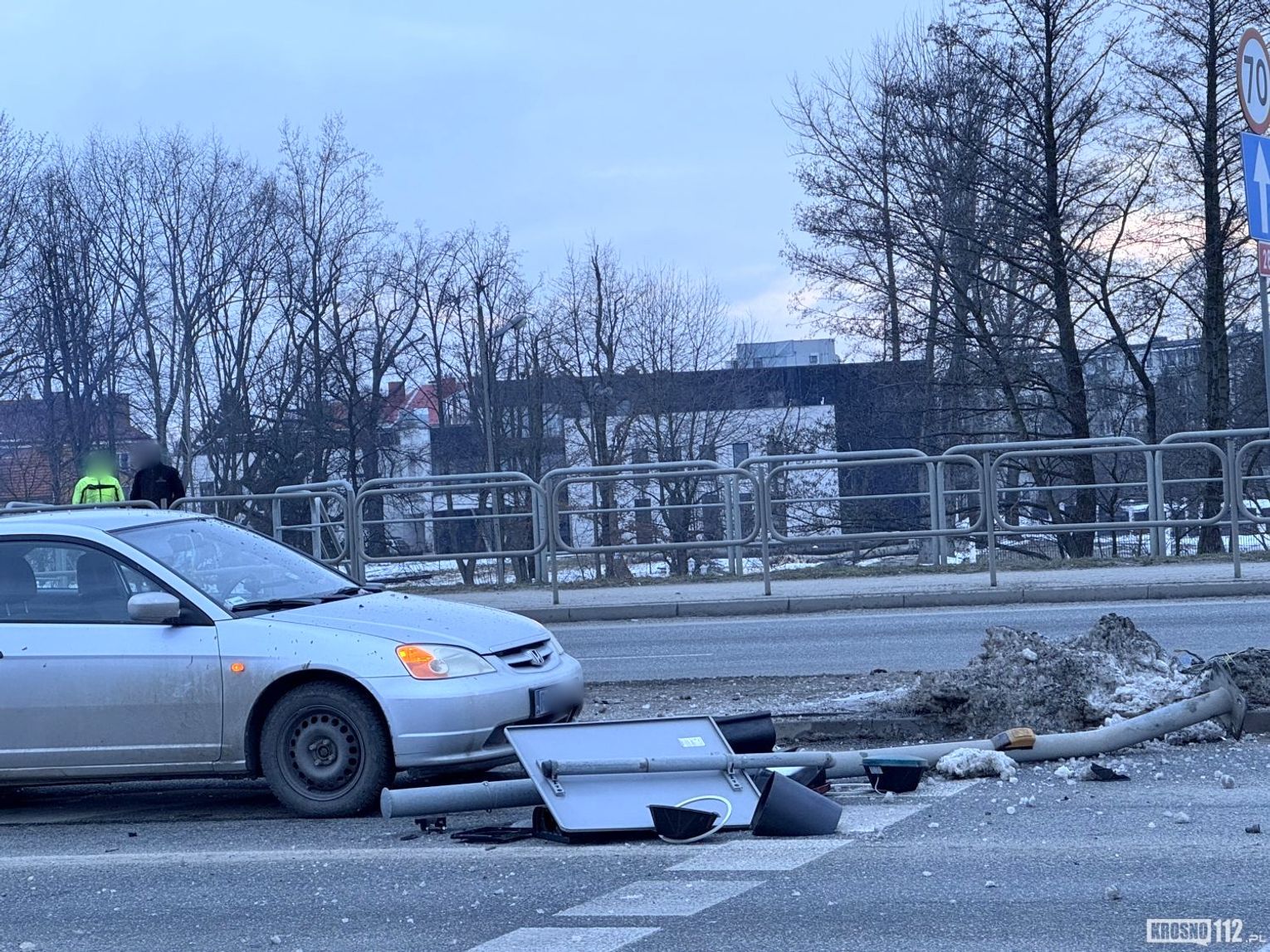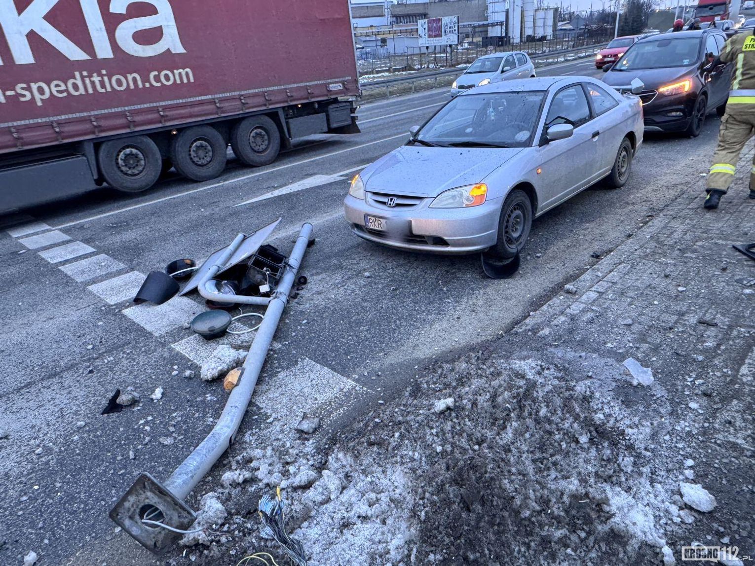 Wstępnie ustalono, że kierujący BMW, jadąc od strony Jasła, zderzył się z Seatem wyjeżdżającym z ul. Tysiąclecia w kierunku wiaduktu. Po zderzeniu BMW uderzyło w sygnalizator oraz dwa auta oczekujące na światłach. Przewracający się sygnalizator uszkodził także Hondę.