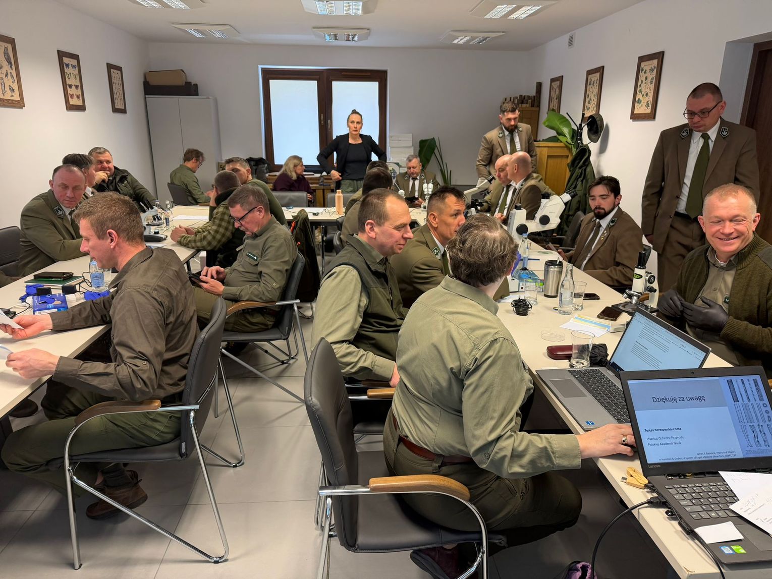 Uczestnicy zajęć, leśnicy będący członkami zespołu ds. zapobiegania sytuacjom konfliktowym na poziomie niedźwiedź brunatny–człowiek oraz zespołu ds. ustalania użytkowania jako gawr drzew wypróchniałych w części odziomkowej, doskonalili techniki zbioru prób przydatnych między innymi do monitoringu genetycznego.