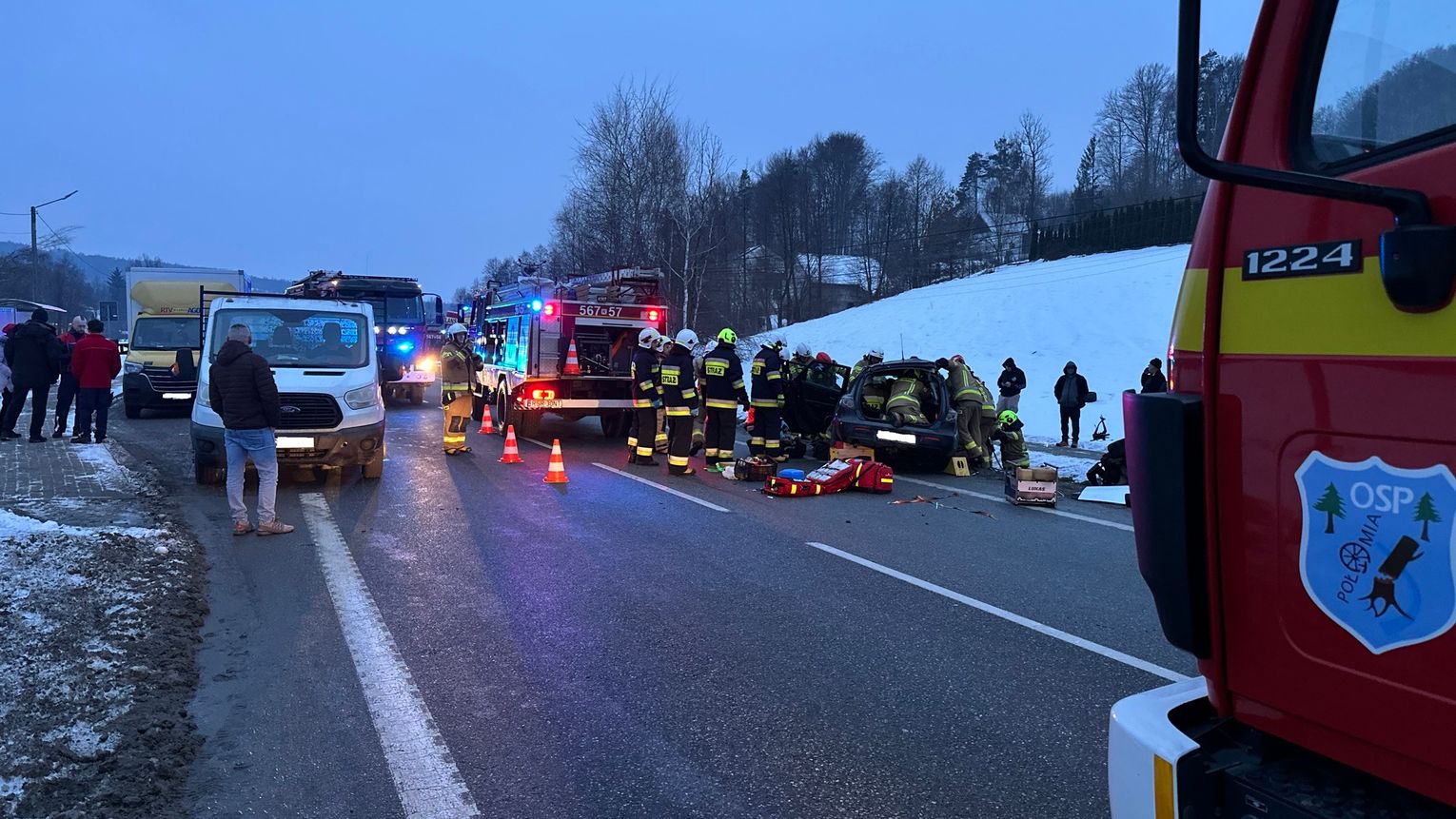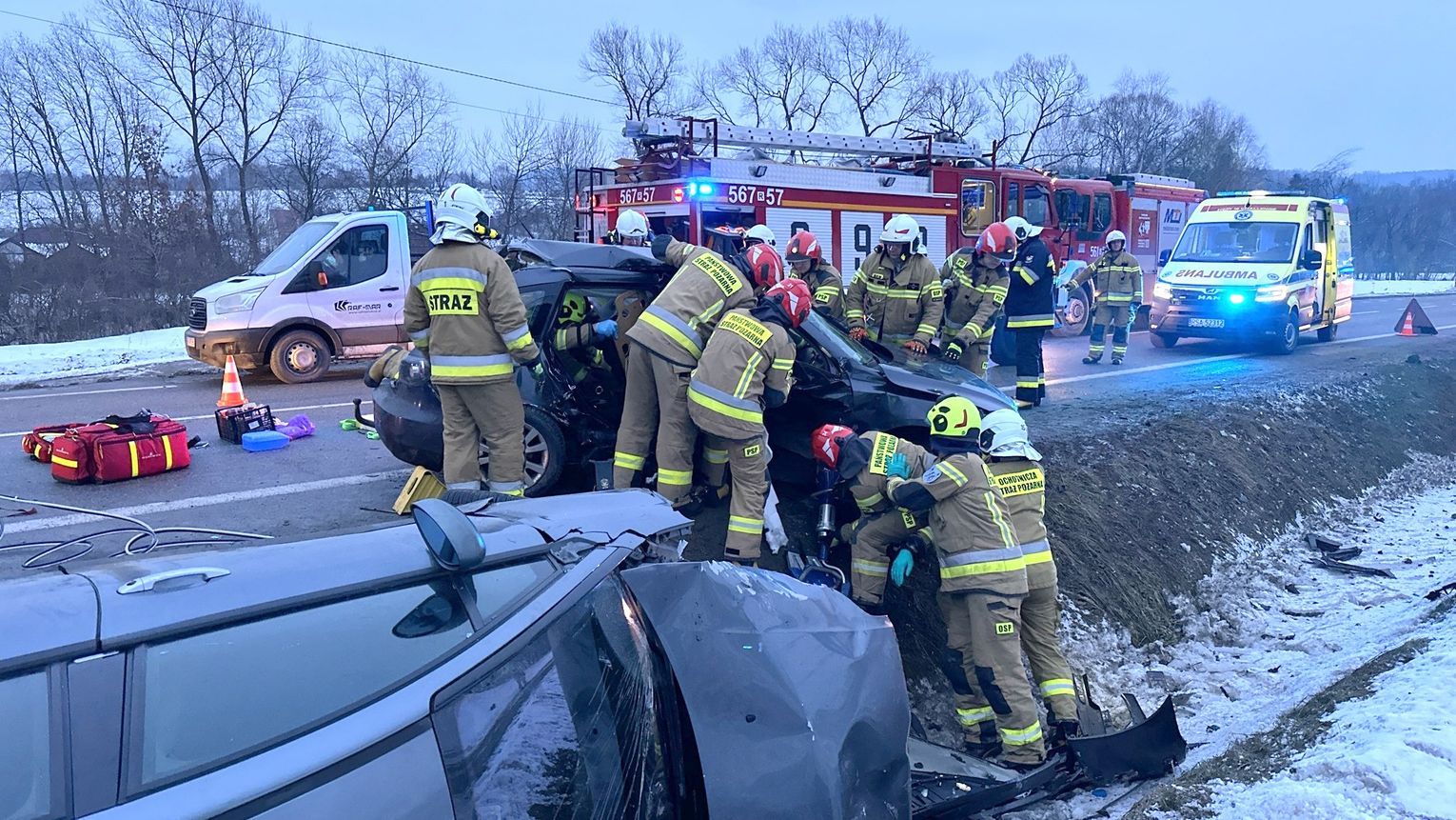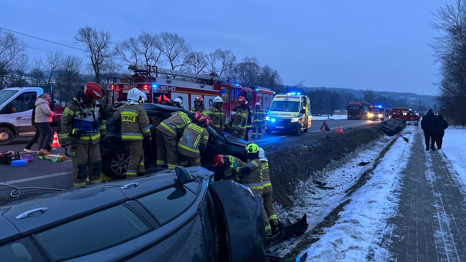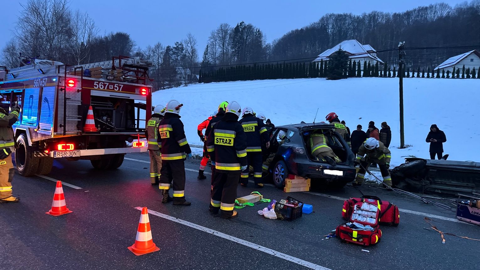 Jak informują służby, ostatecznie w wypadku poszkodowana została jedna osoba. Pozostali uczestnicy kolizji nie wymagali hospitalizacji. Na miejscu działały zastępy OSP Baryczka, OSP KSRG Połomia, Jednostki Ratowniczo-Gaśniczej w Strzyżowie, Policja oraz dwa zespoły ZRM. Do zdarzenia zadysponowano również Lotnicze Pogotowie Ratunkowe, jednak śmigłowiec został zawrócony.
