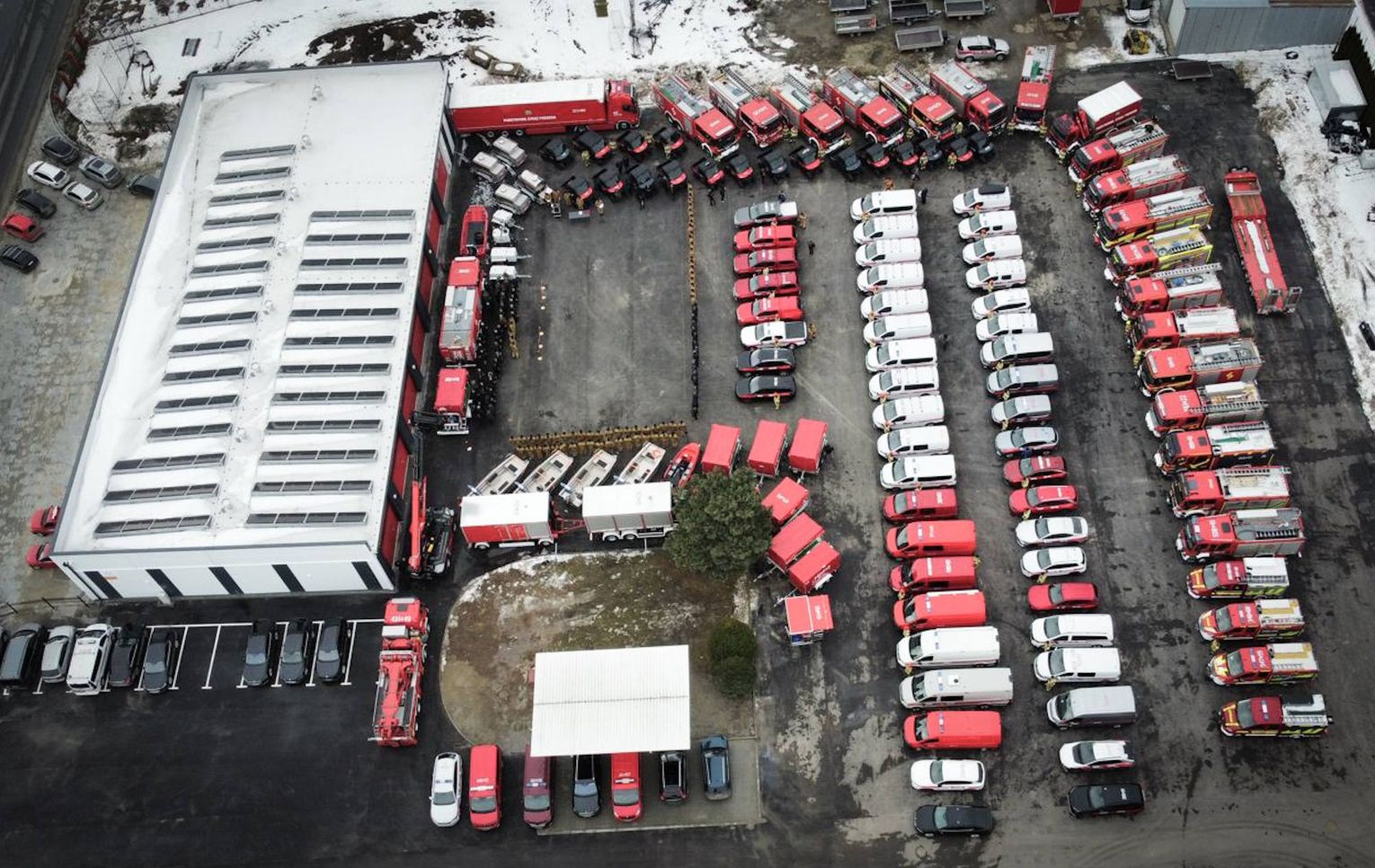 - 2 średnie i 5 ciężkich samochodów ratowniczo-gaśniczych,