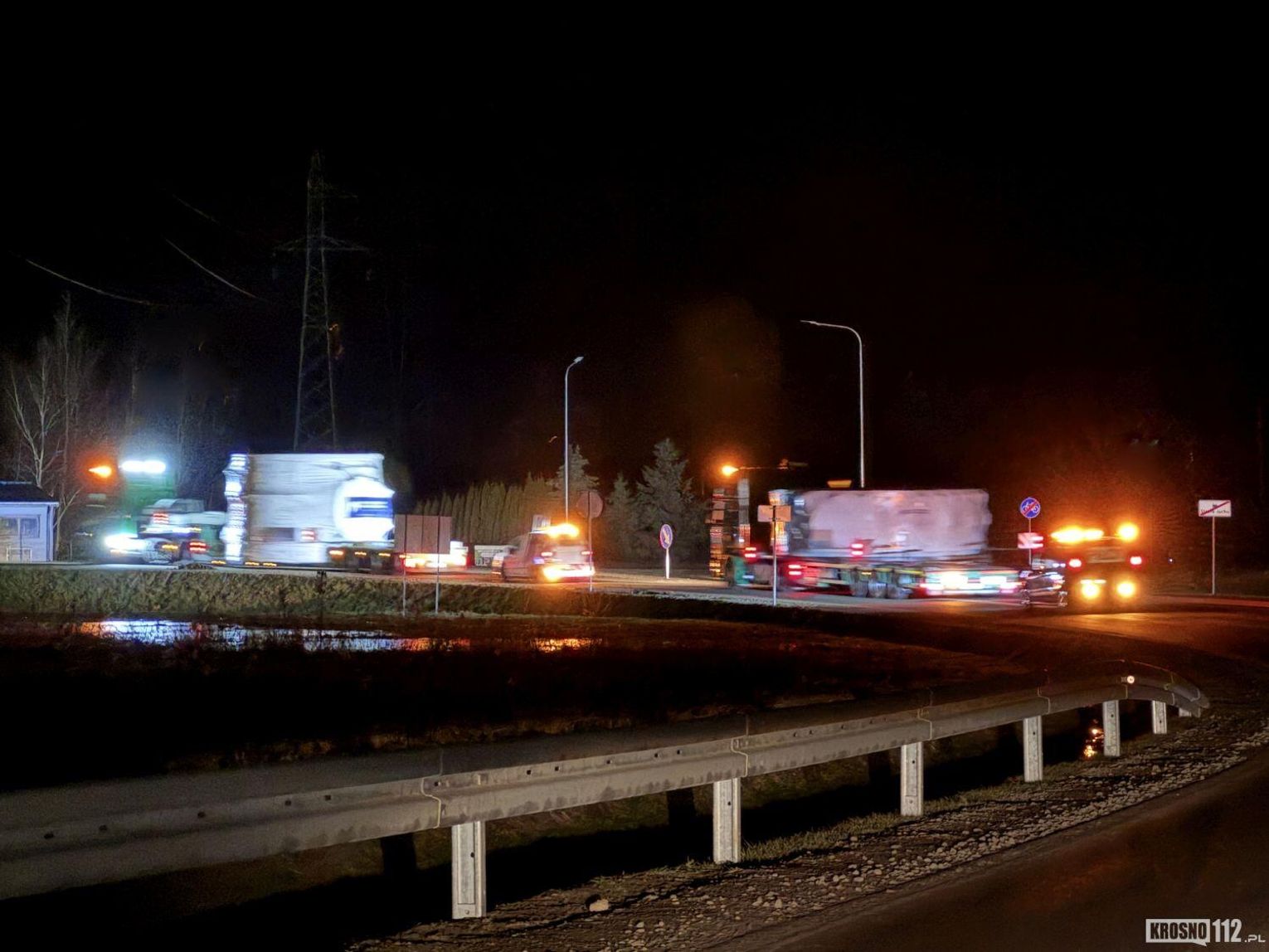 Moment wyjazdu z Jedlicza był szczególnie spektakularny. Manewrowanie wielkogabarytowym zestawem na lokalnych drogach wymagało niezwykłej dokładności i koordynacji pilotów. Cała operacja przebiegła sprawnie i bezpiecznie. Konwój nie musiał długo manewrować pomiędzy jedlickimi, wąskimi ulicami, ponieważ przejechał przez nową drogę powiatową, łączącą się z DK28 w Potoku.
