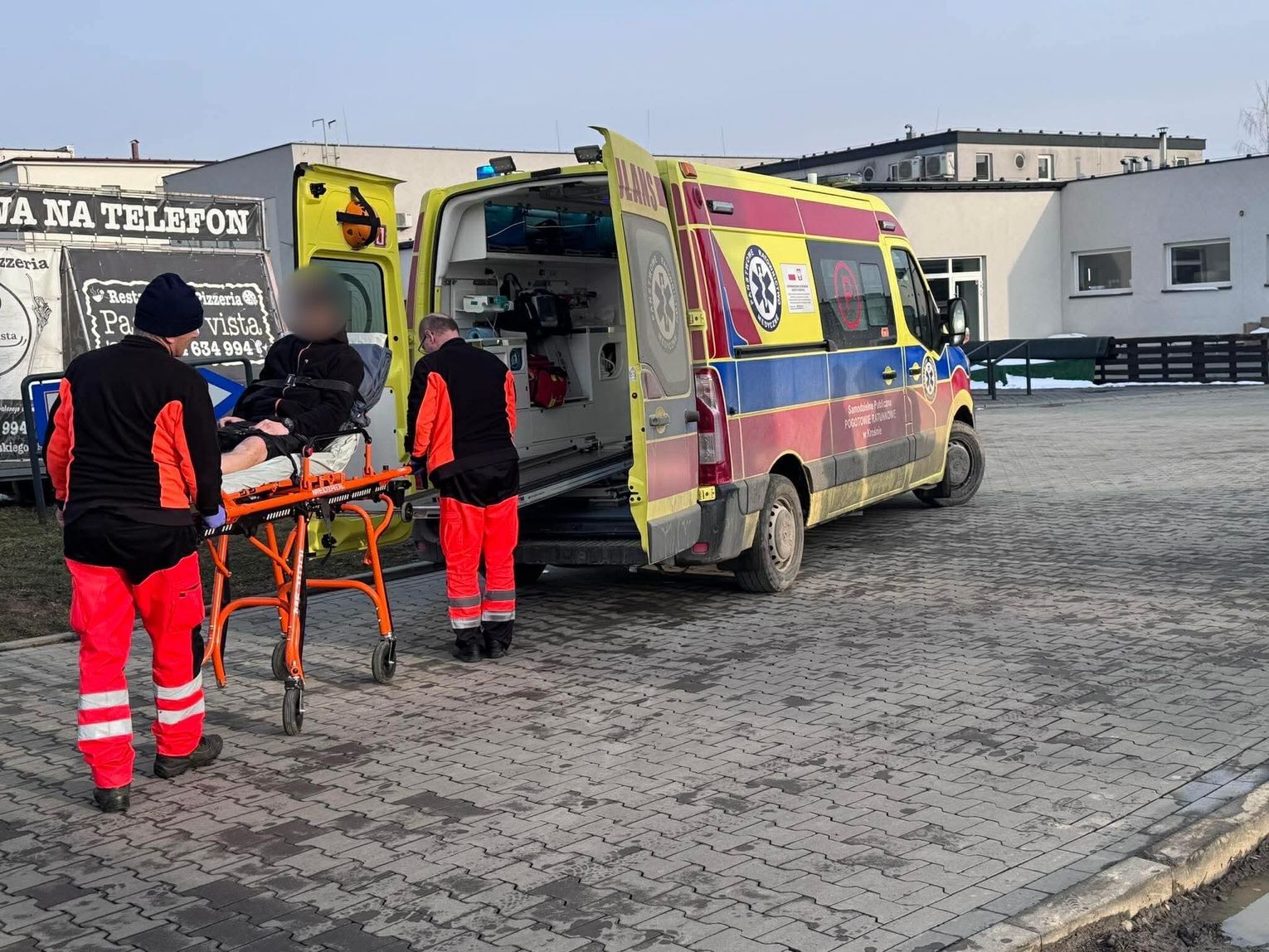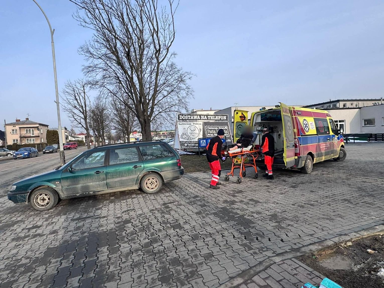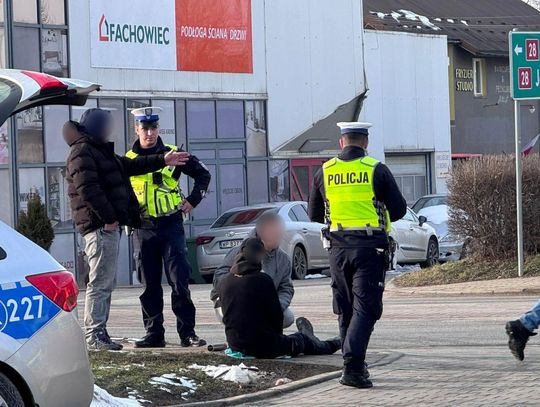 Do zdarzenia doszło, gdy młody mężczyzna przechodził w miejscu wjazdu samochodów na teren sklepu. Poszkodowany z urazem nogi został przewieziony do szpitala. Na miejscu nie ma utrudnień w ruchu.