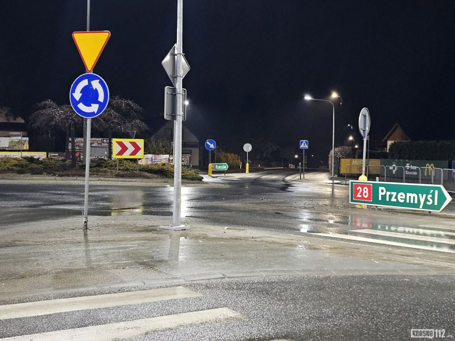 Kierujący Fiatem Punto wjeżdżając na rondo od strony Rogów (DW864) nie ustąpił pierwszeństwa przejazdu kierowcy Fiata Seicento jadącego DK28 od strony Krosna.